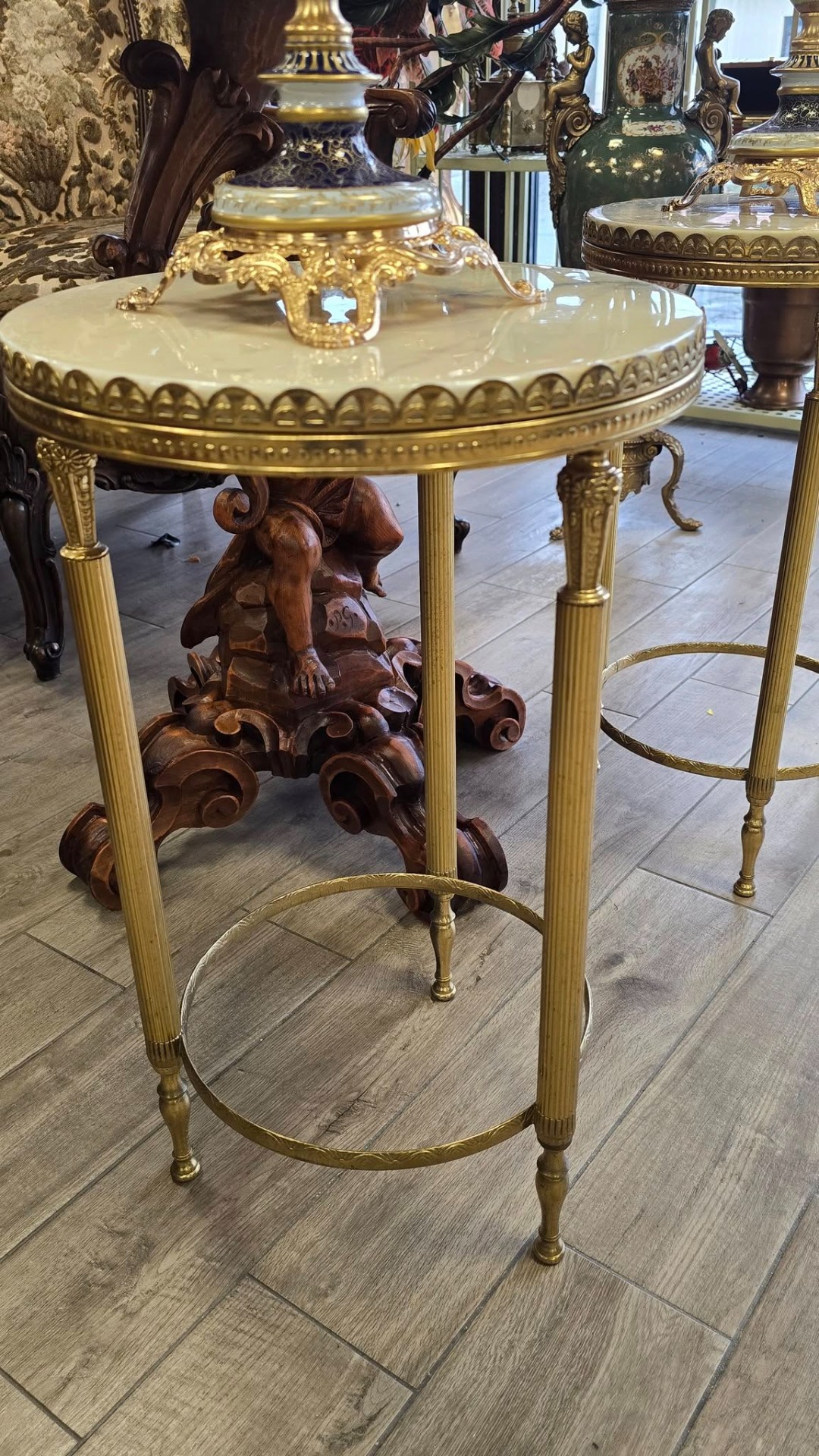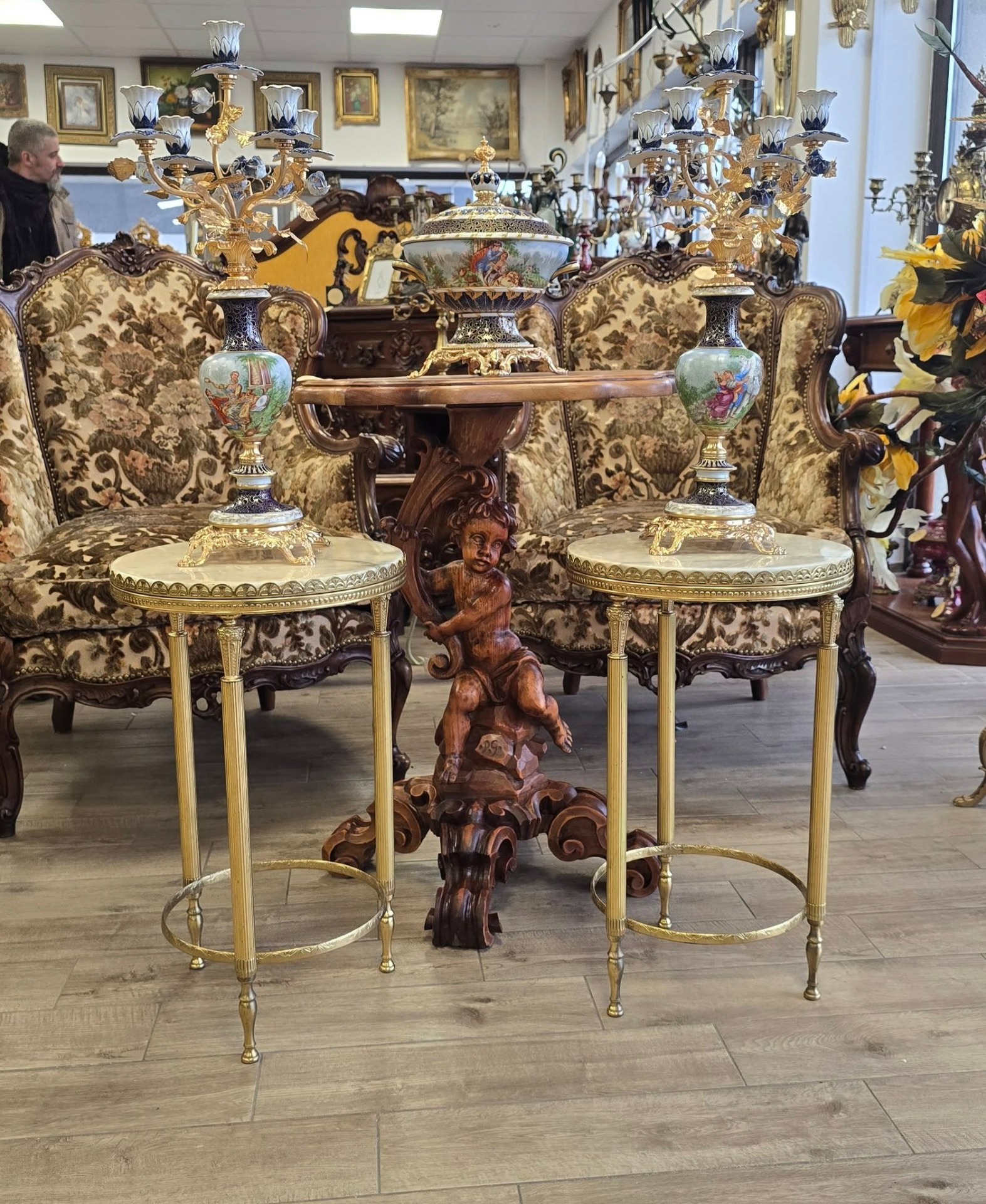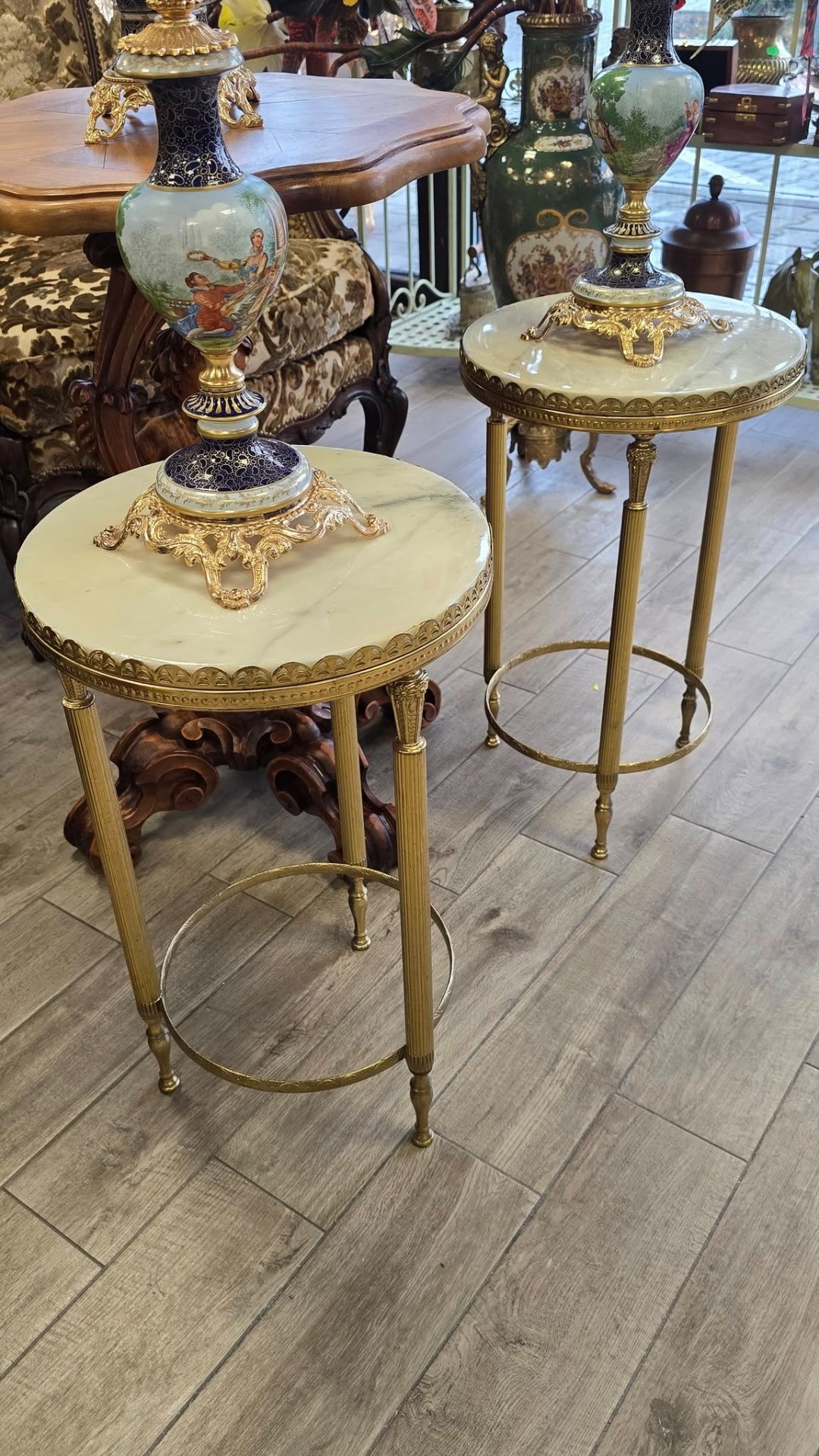 Pereche de suporți, măsuțe din bronz cu blat din marmură.