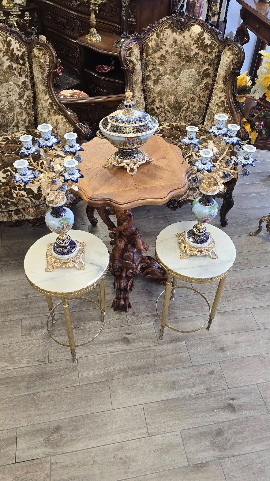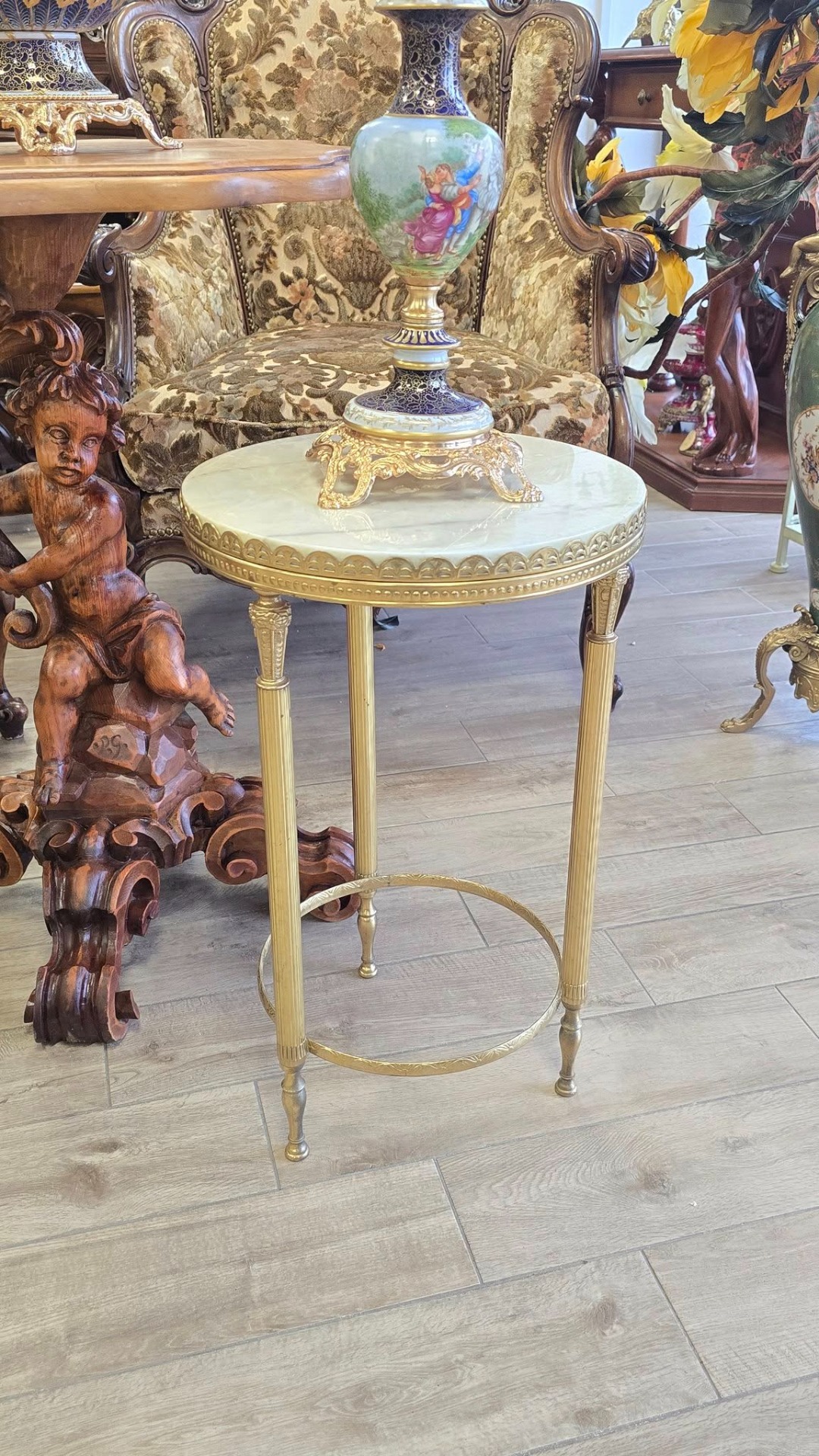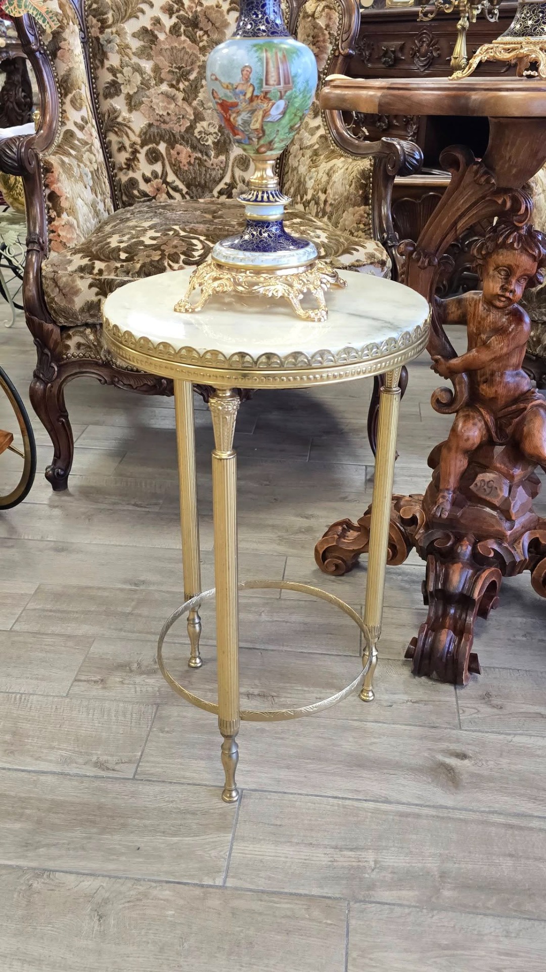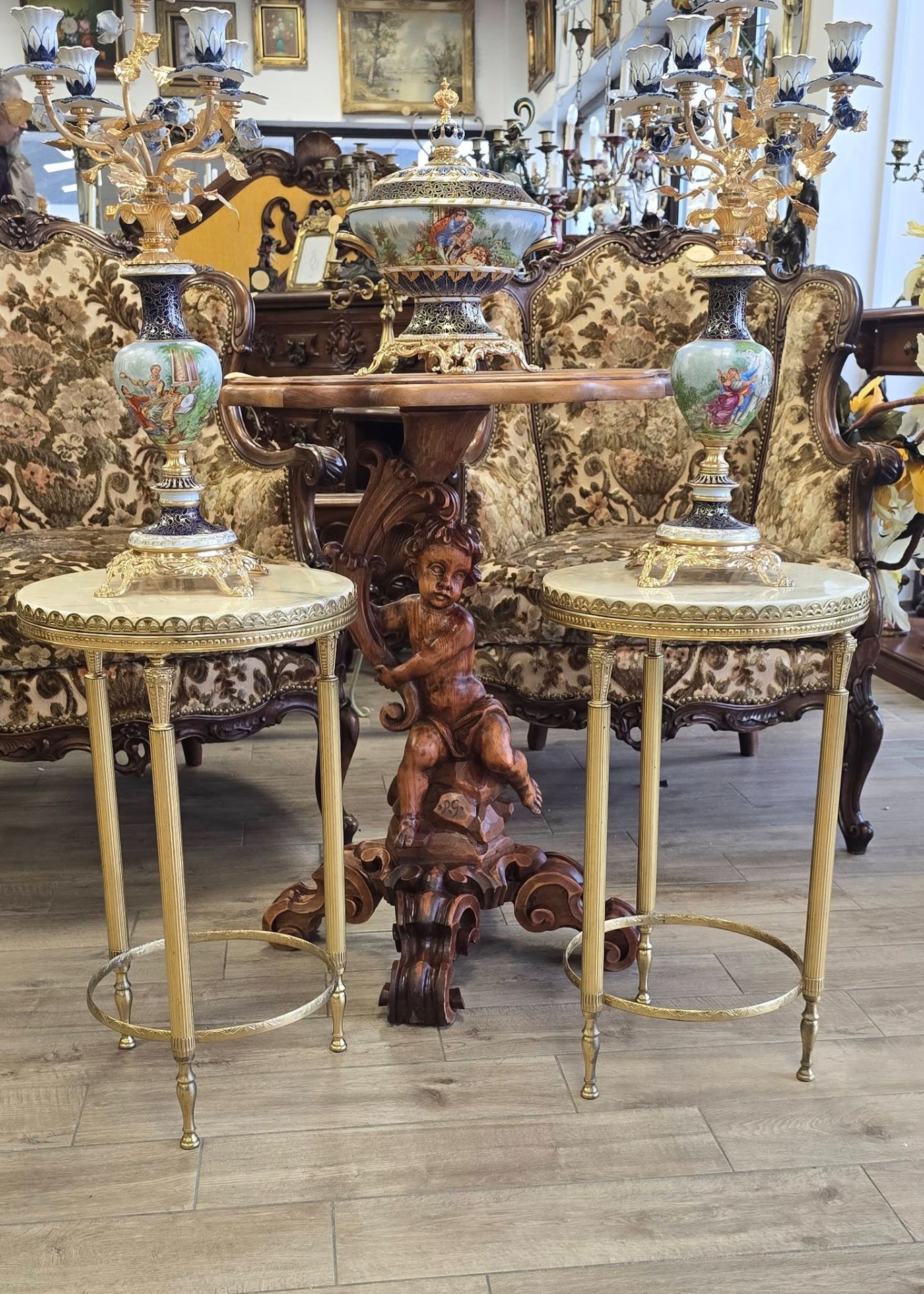 Pereche de suporți, măsuțe din bronz cu blat din marmură.