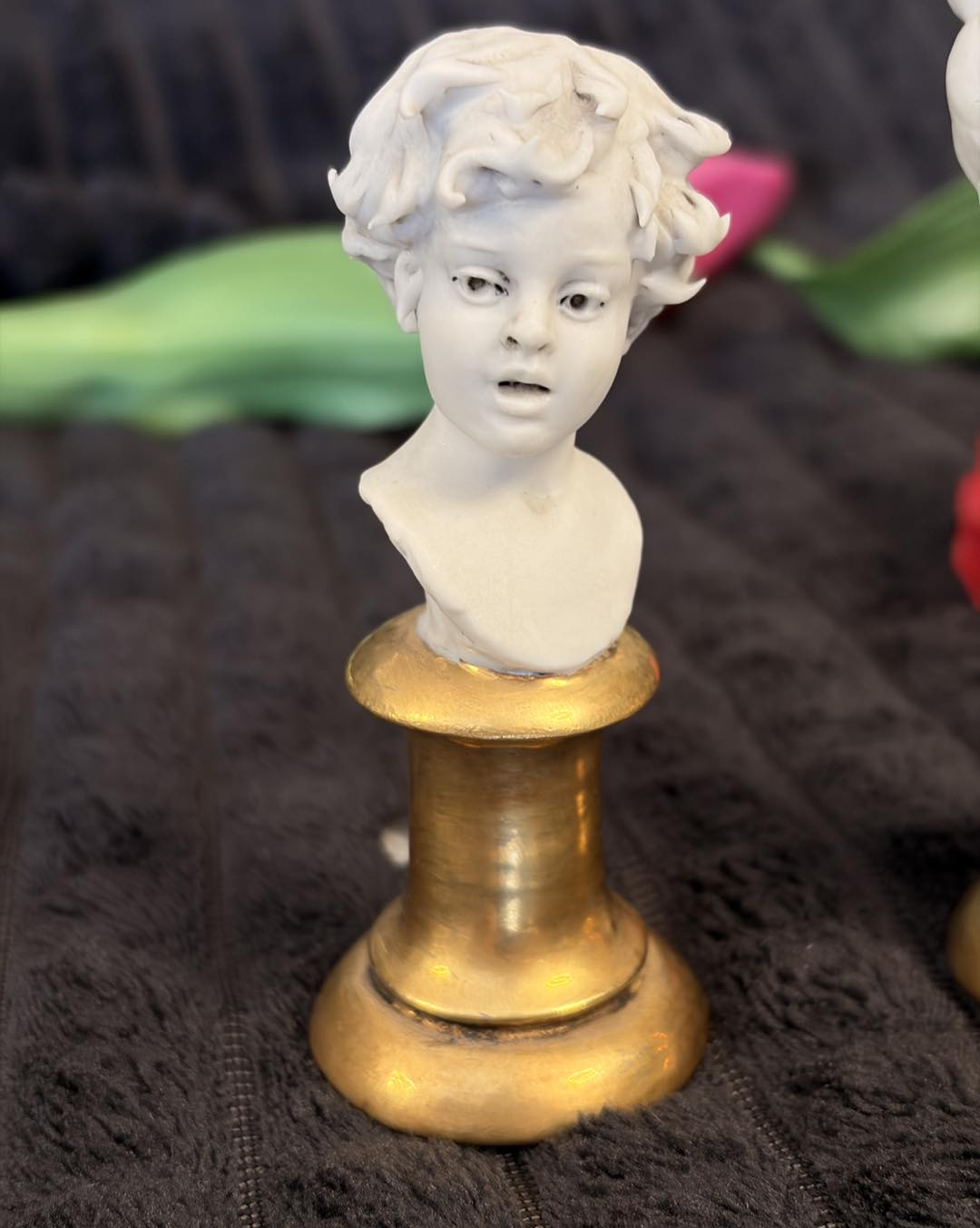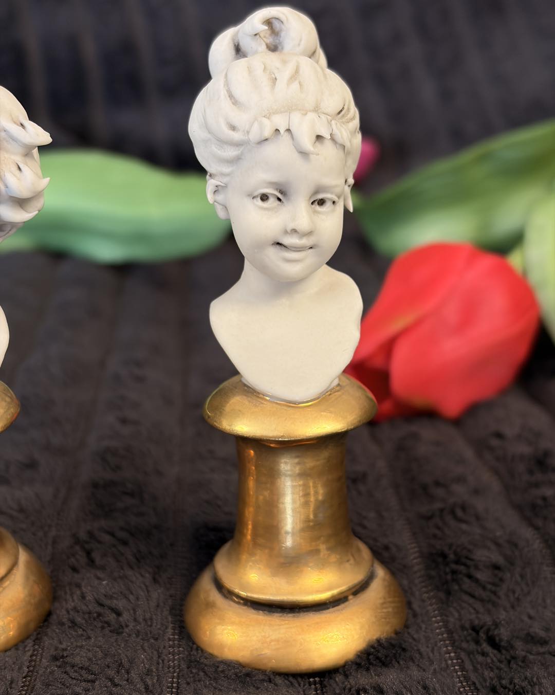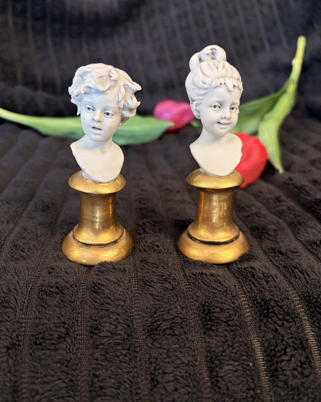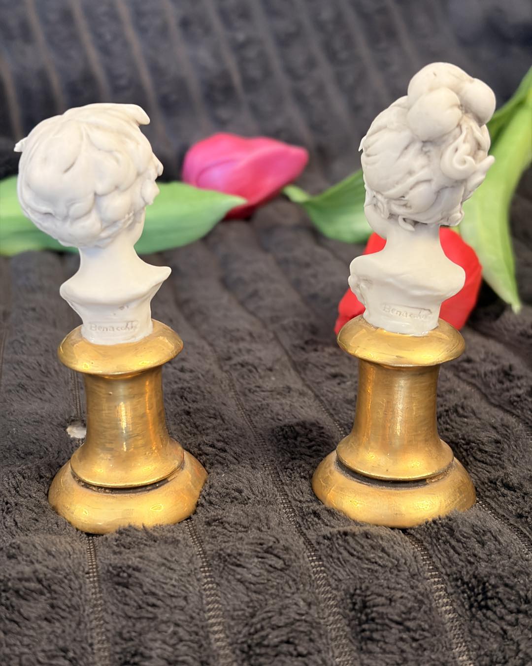 pereche deosebită de miniaturi din porțelan biscuit, reprezentând un băiat și o fată, realizate în renumitul atelier italian Triade. Piesele poartă semnătura maestrului sculptor Luigi Giorgio Benacchio, un nume de referință pentru calitatea și finețea porțelanului italian de la mijlocul secolului XX.