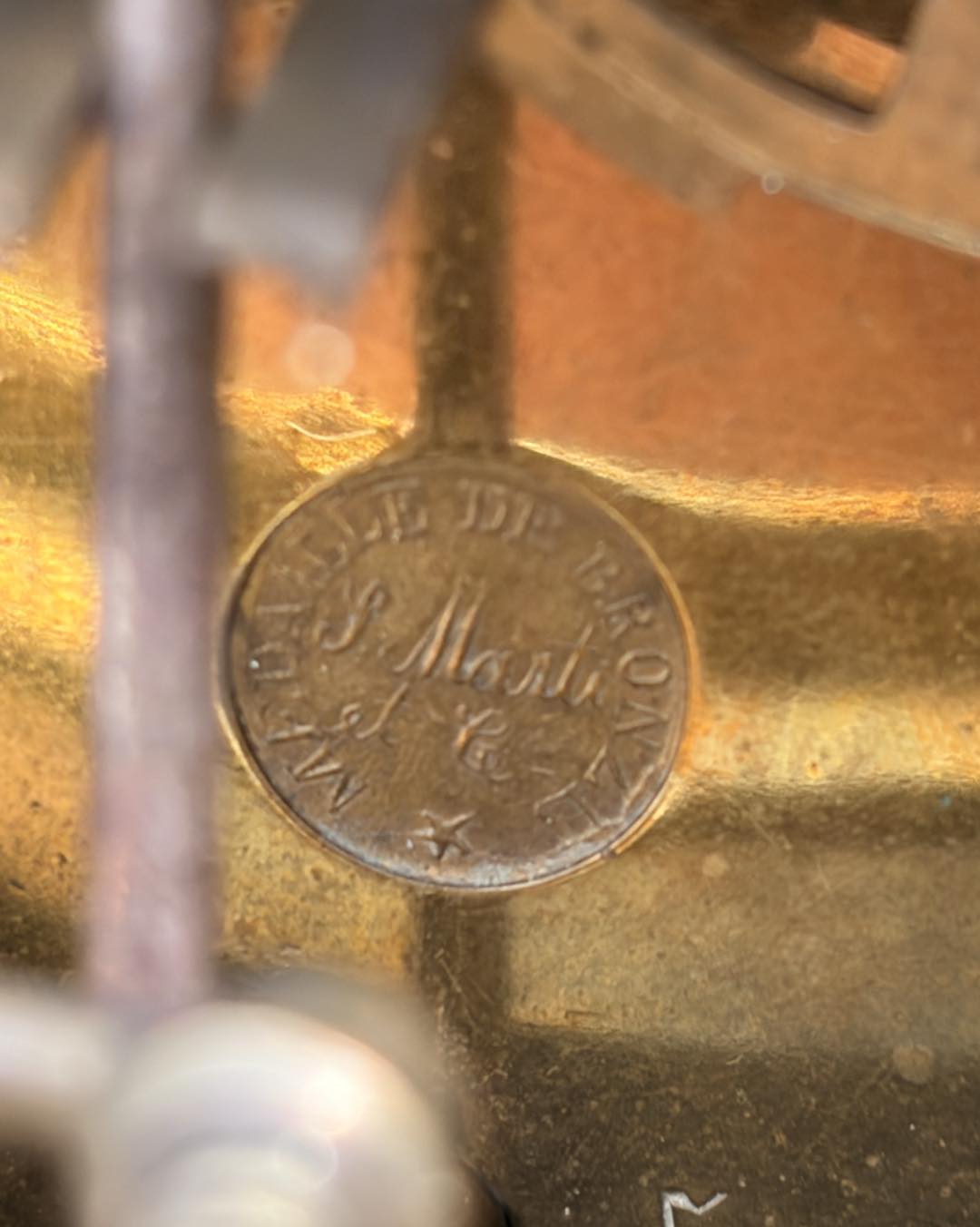 Mecanismul poartă celebra ștampilă "Médaille de Bronze S. Marti & Cie", marcă de prestigiu premiată la marea Expoziție din Paris (1860). Este garanția calității și a preciziei mecanice franceze.