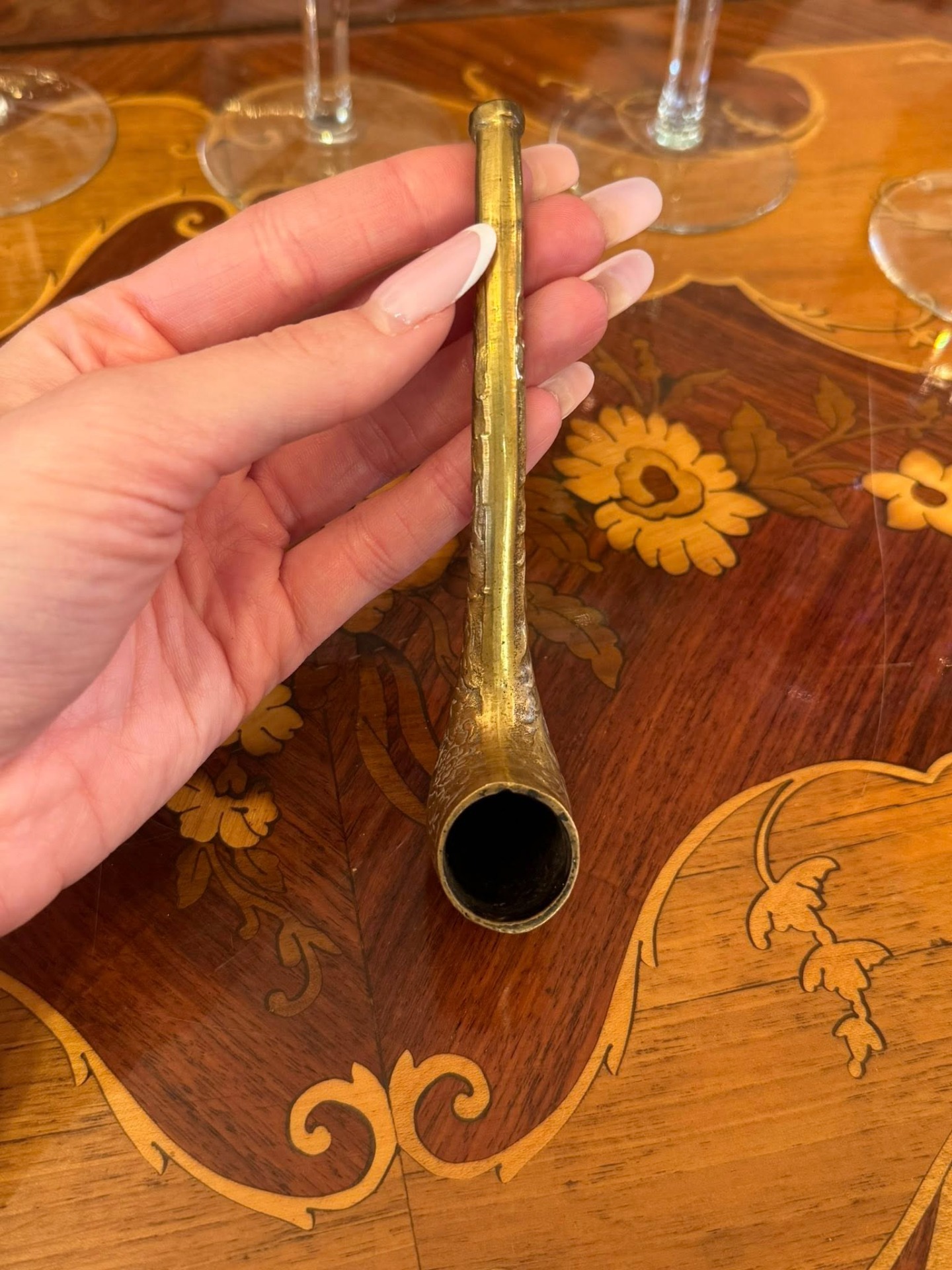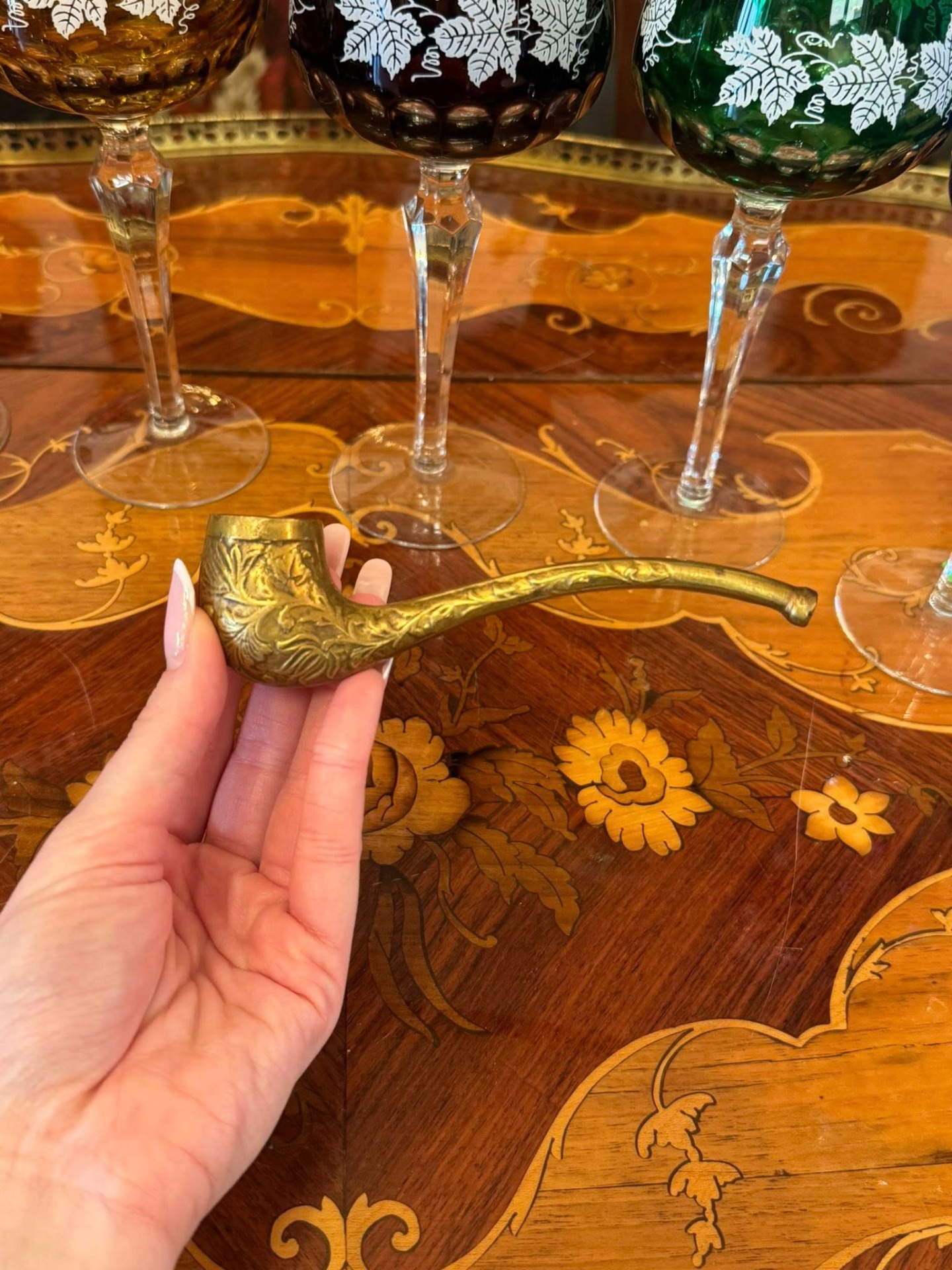 Pipă decorativă deosebită din bronz, realizată într-un stil clasic,