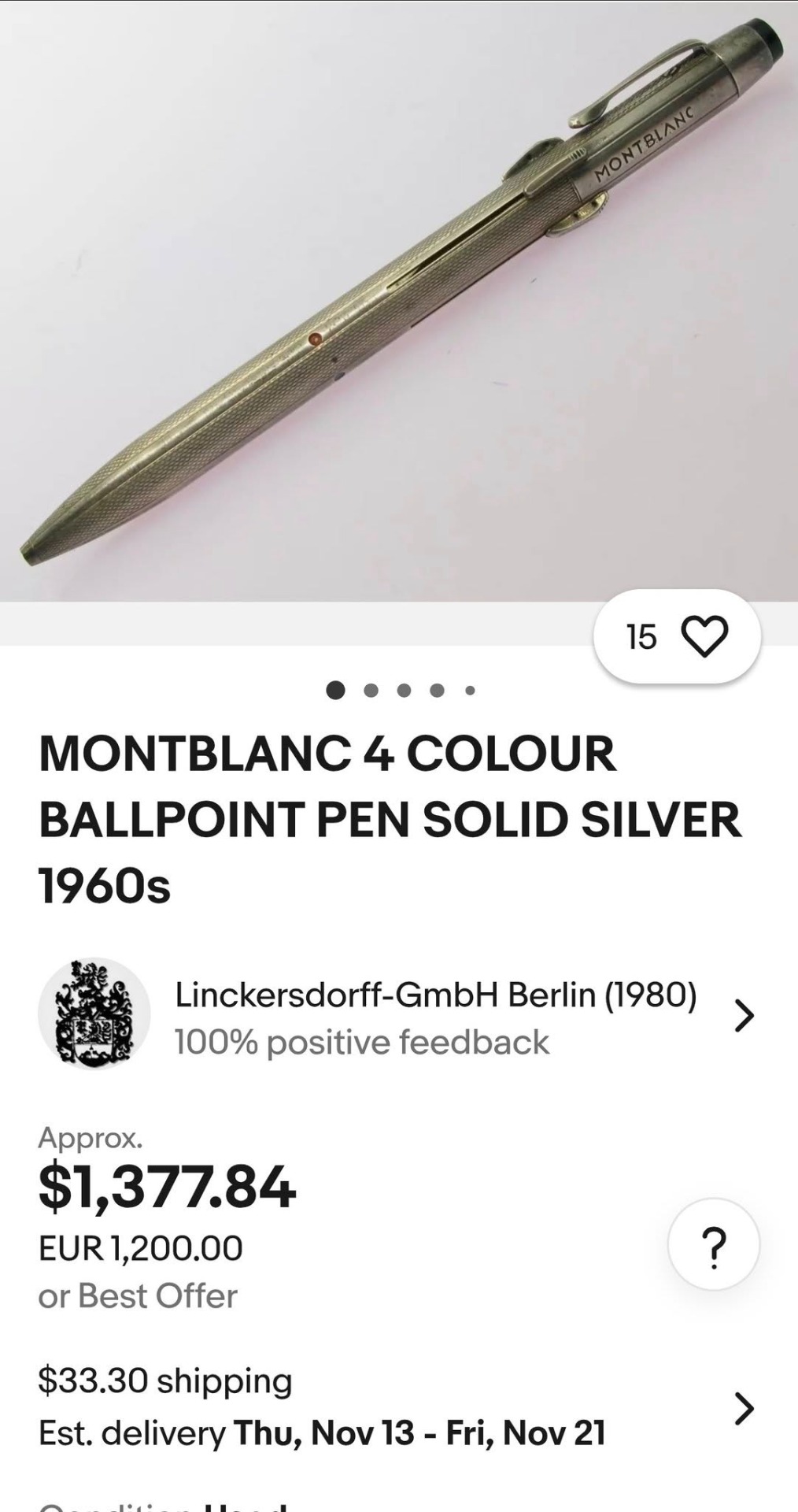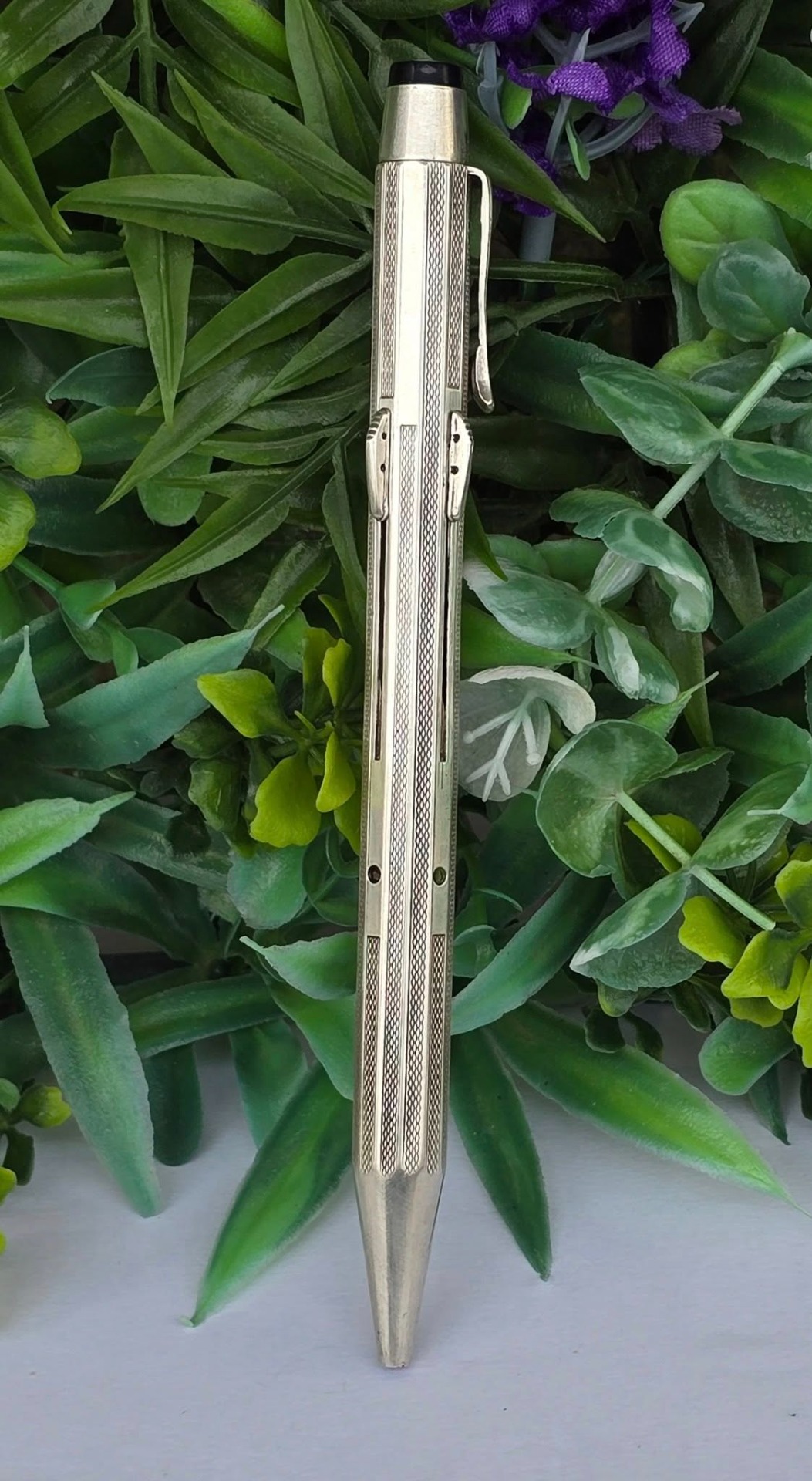 Pix vintage Montblanc "PIX-O-MAT 4 Color Ballpoint Pen", din argint, foarte rar (chiar și cele placate cu argint se găsesc destul de greu, dar modelele din