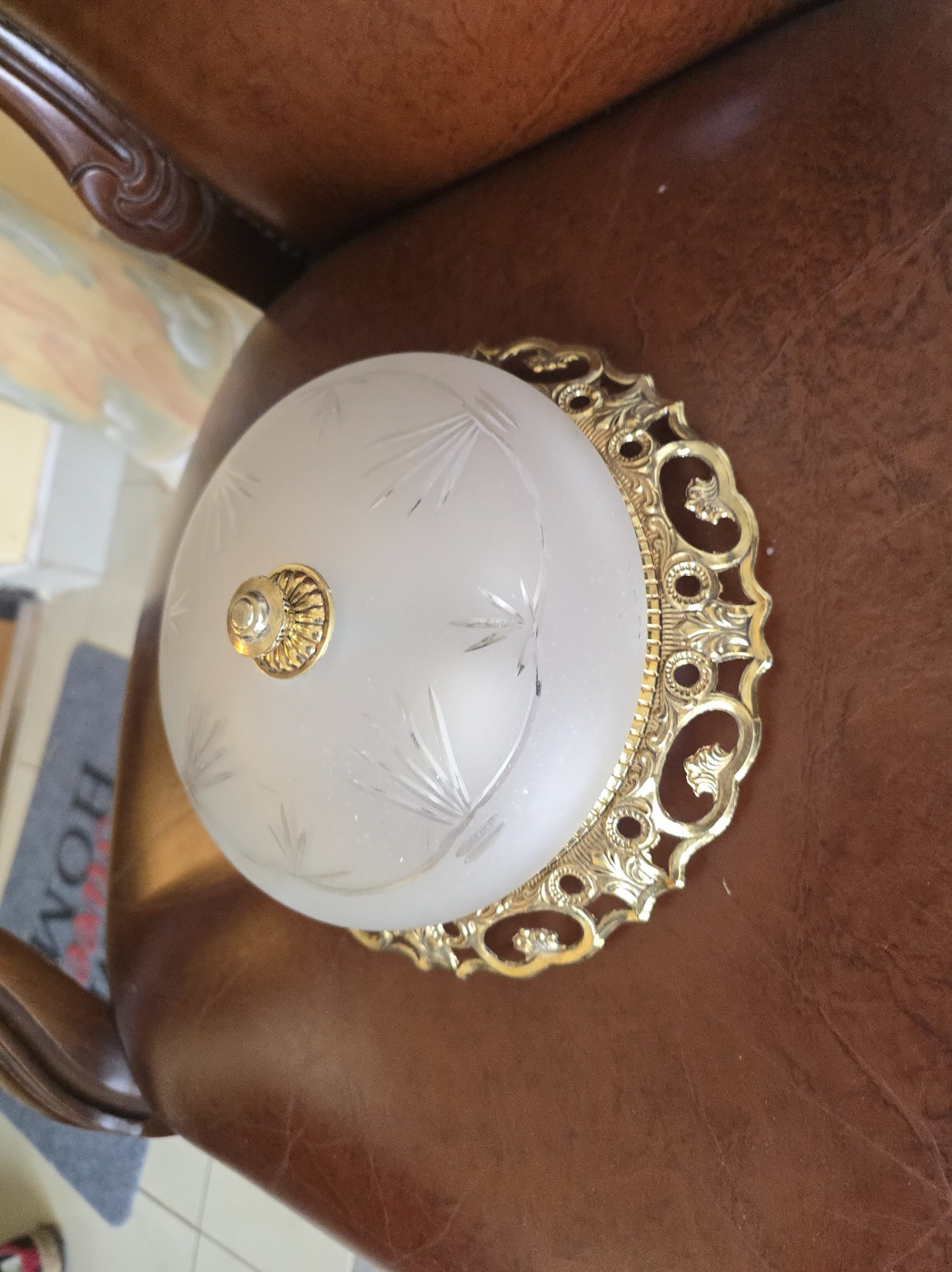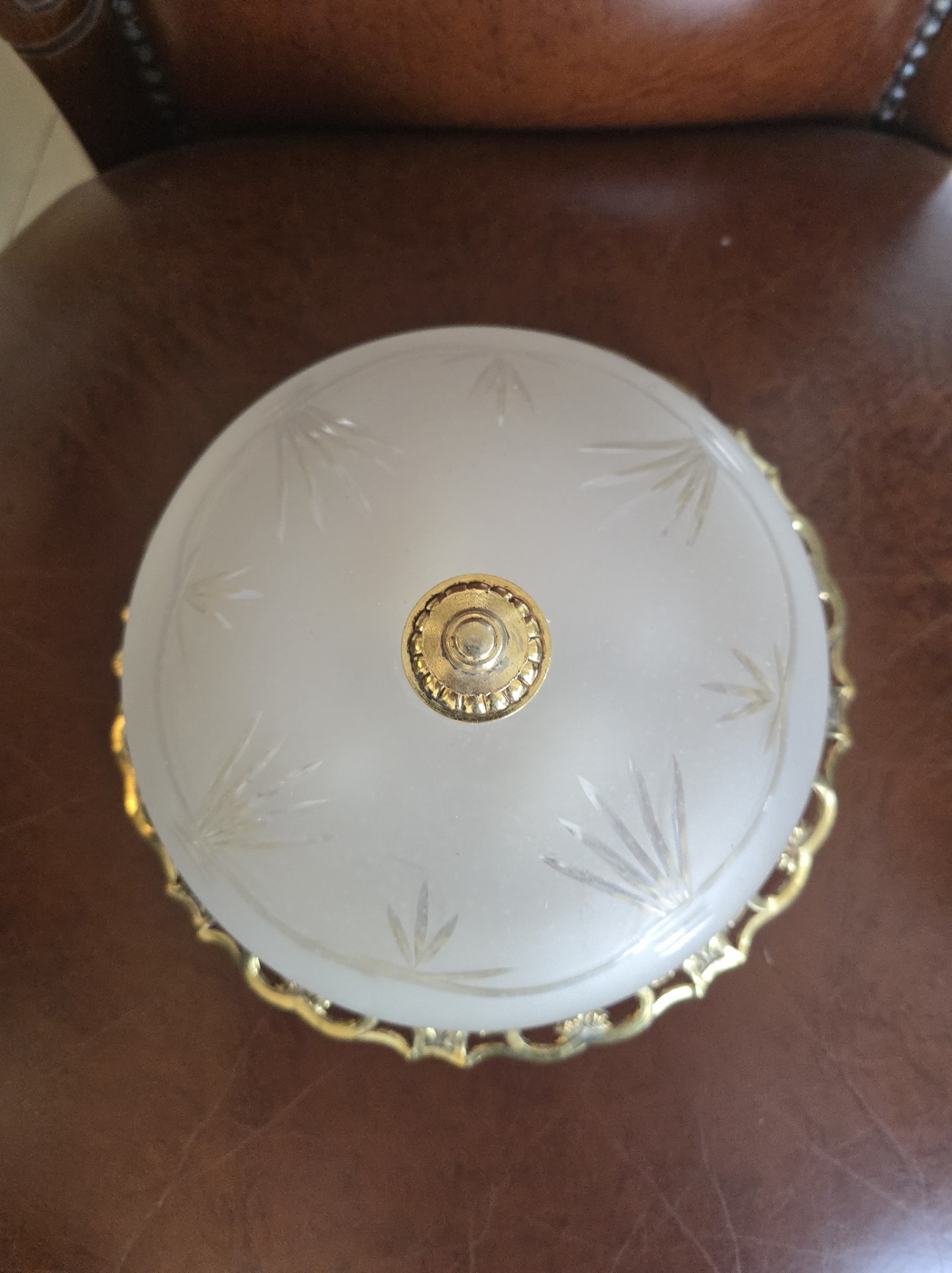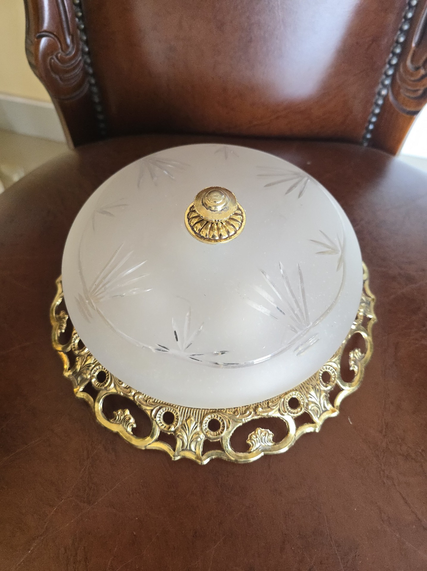 Plafonieră Vintage cu Sticlă Sablată și Bordură de Bronz.