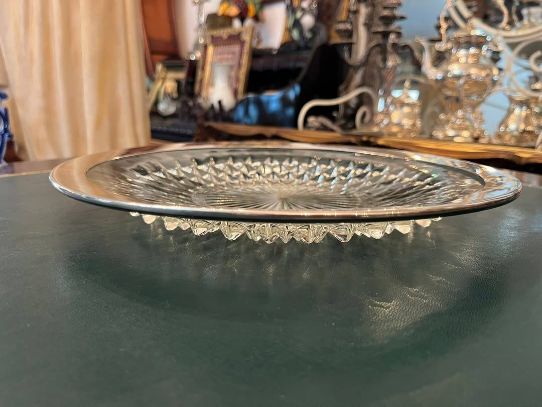 Platou din cristal cu bordură din alama argintata