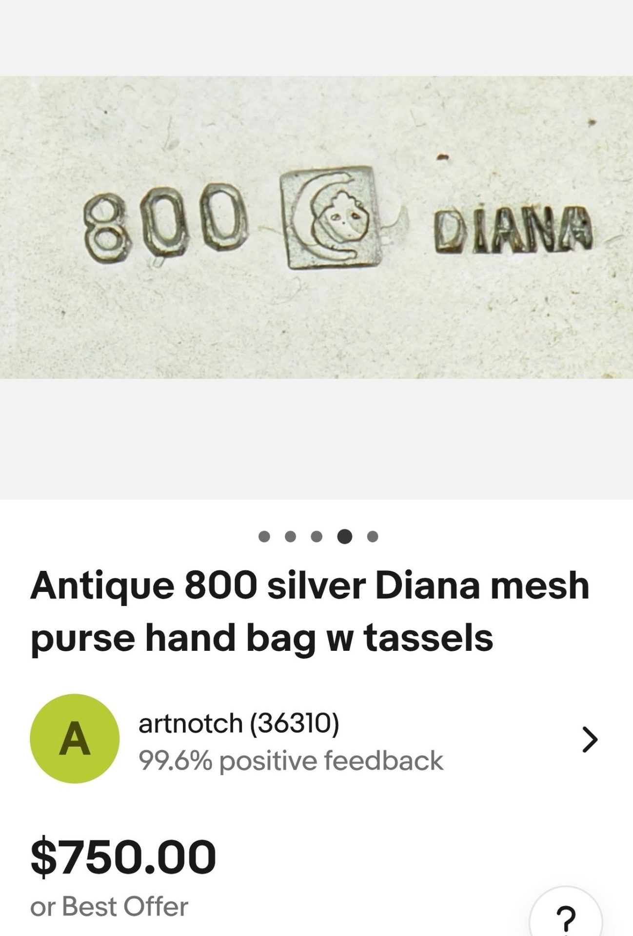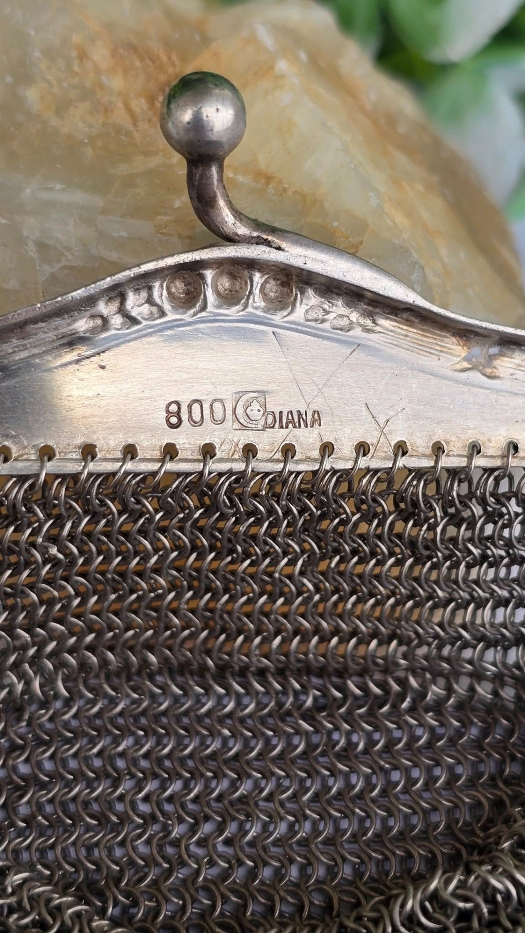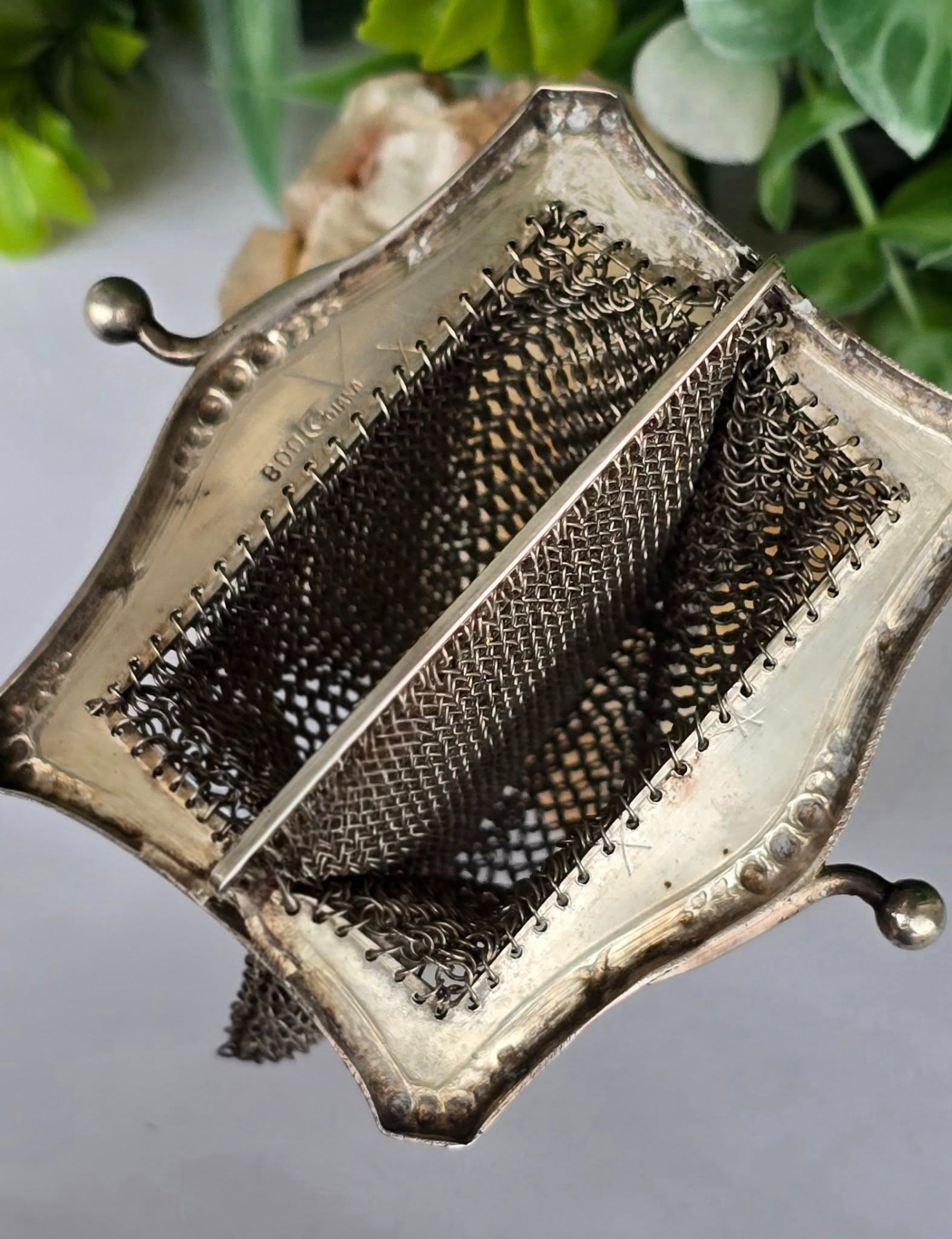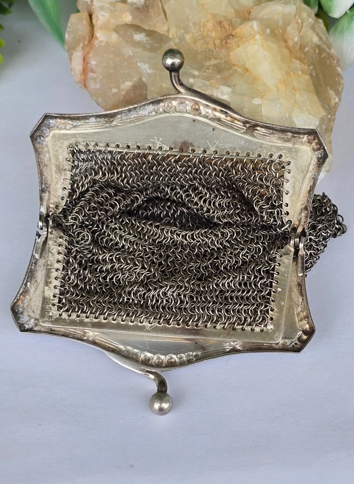 Portmoneu "chatelaine" Art Nouveau, din argint, cu două compartimente, manufactură de meșter german (anii 1910-1920, Germania).