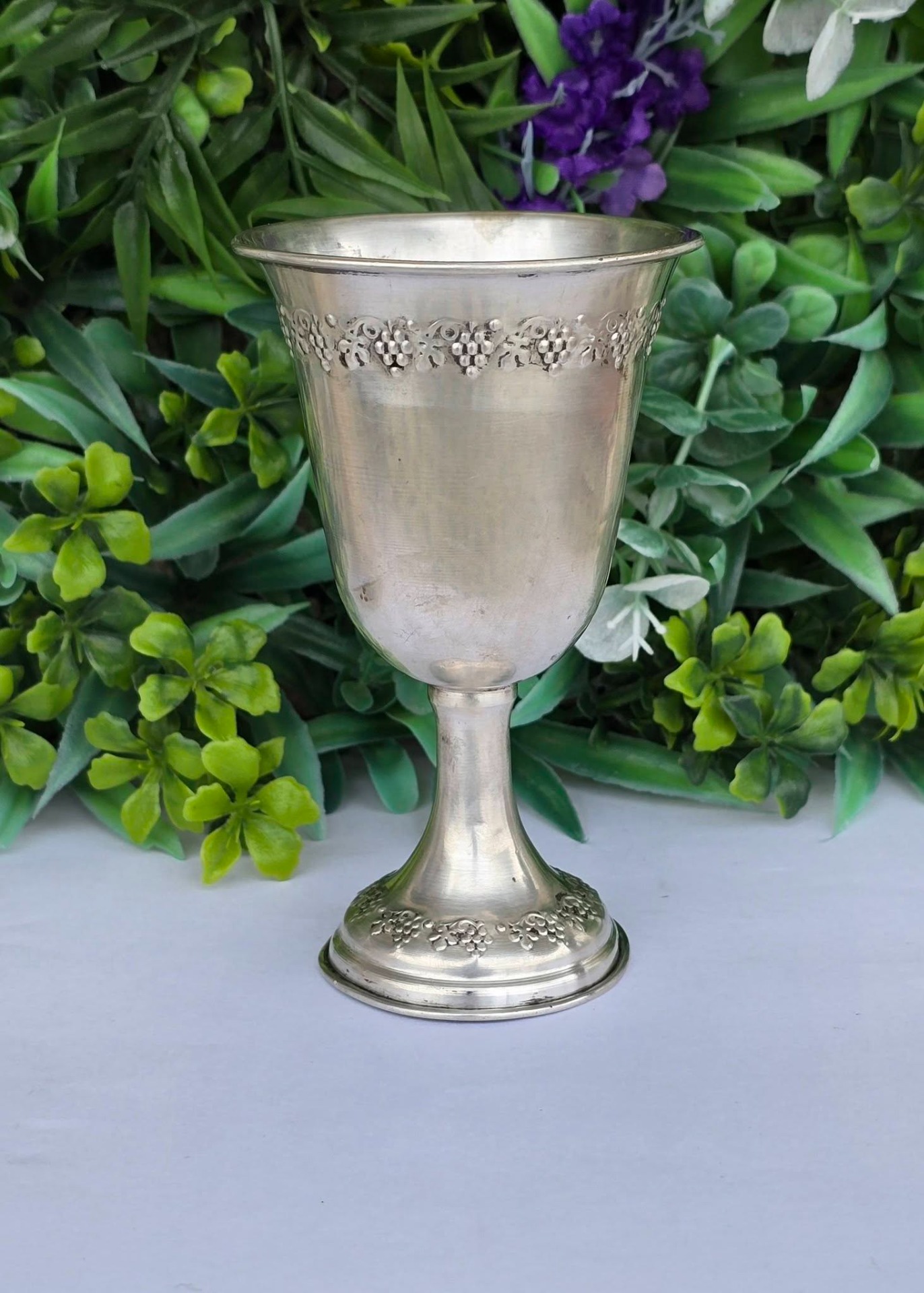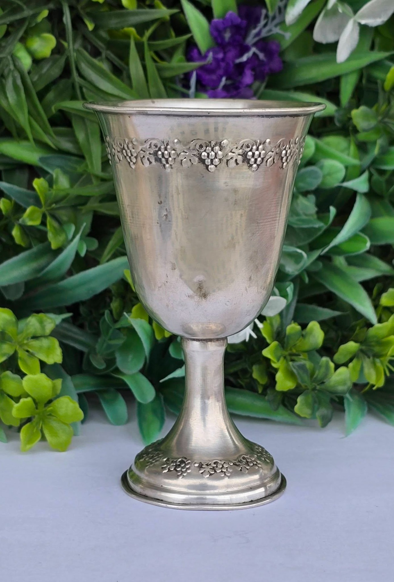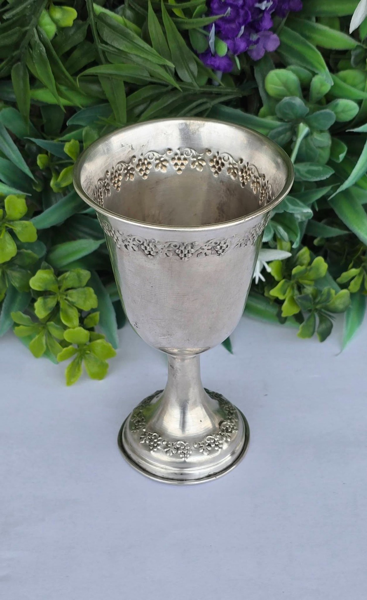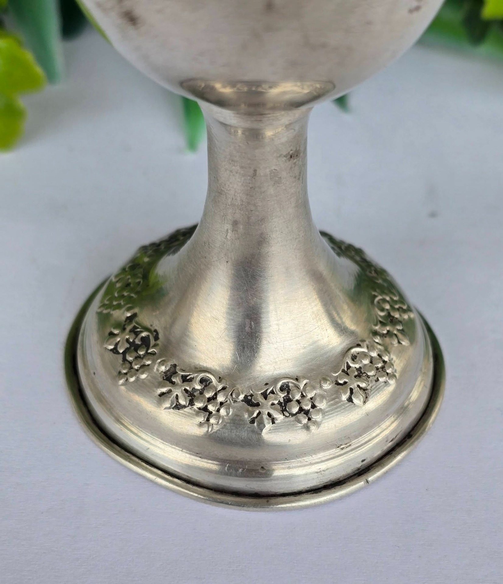 Potir vechi din argint, decorat în motiv viticol, manufactură de atelier italian (încep. sec.XX, Italia).