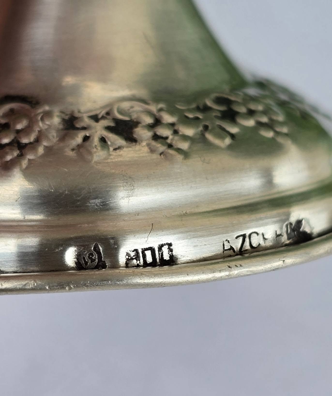 Prezintă marcaj de argint 800 și marcaj de meșter.