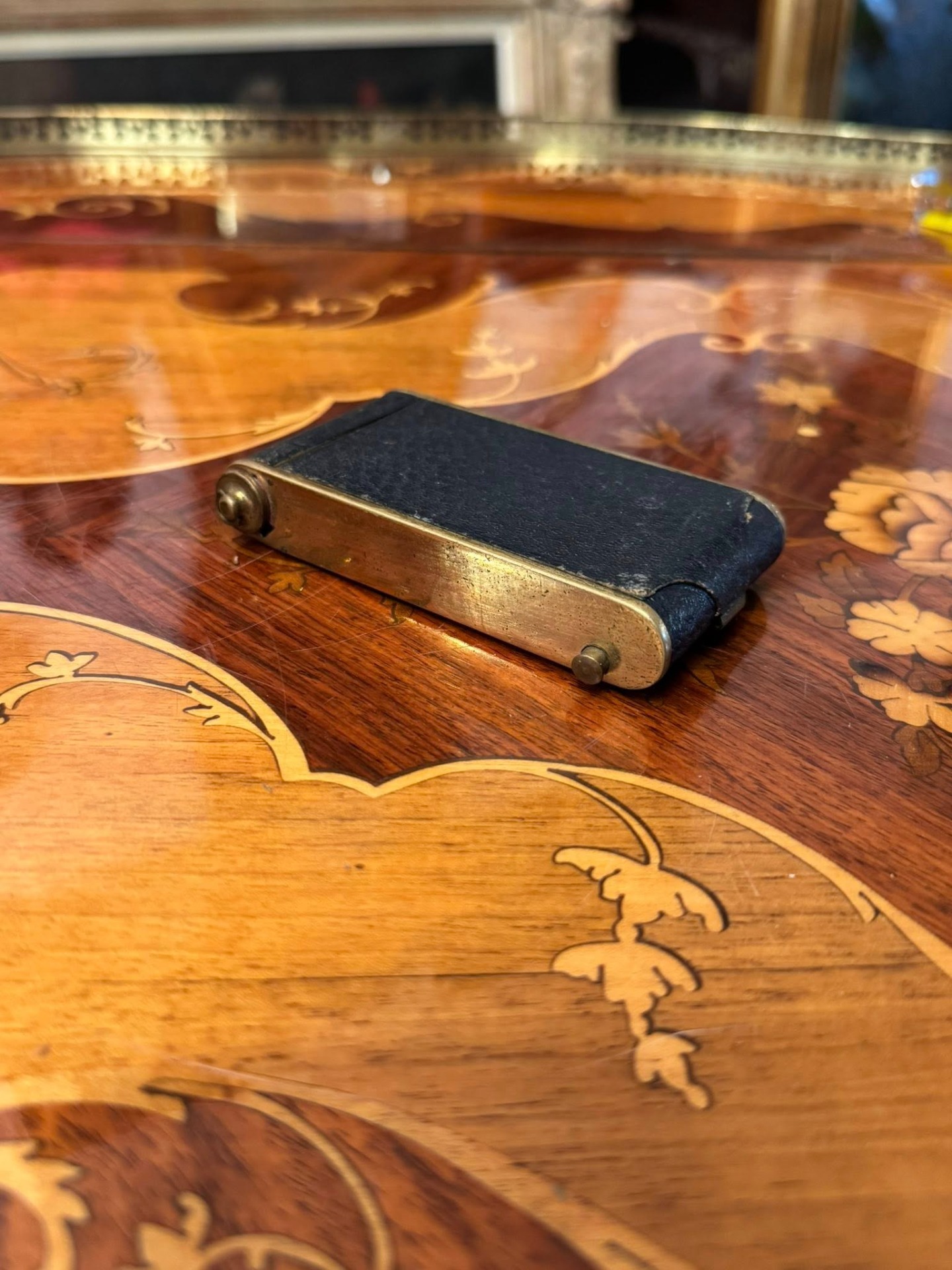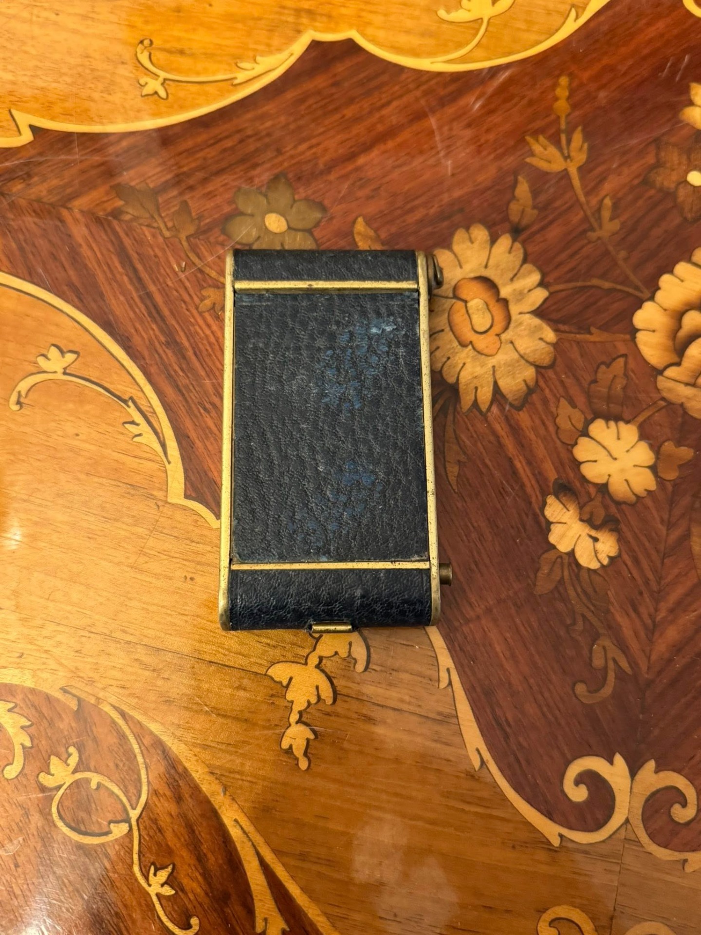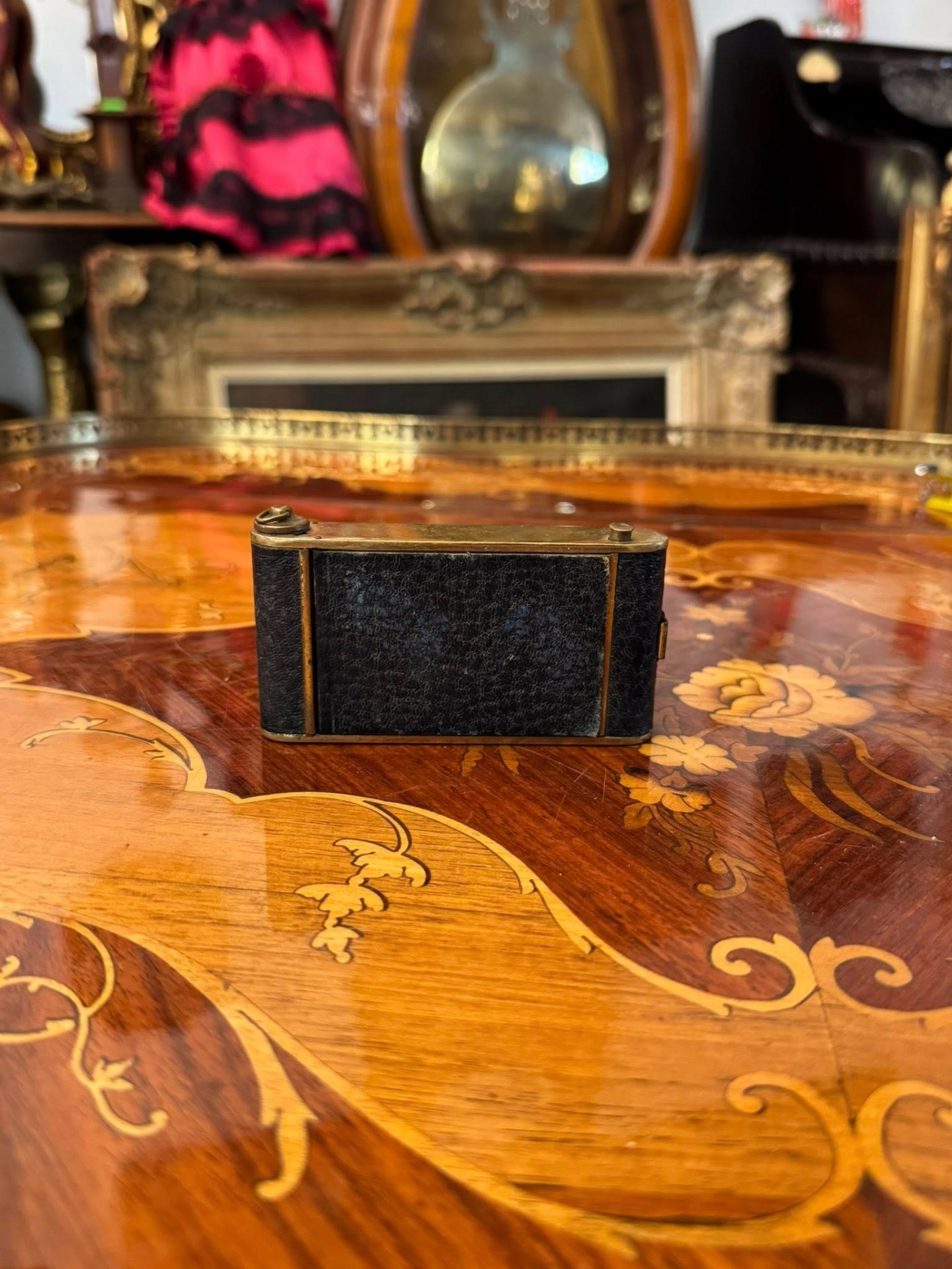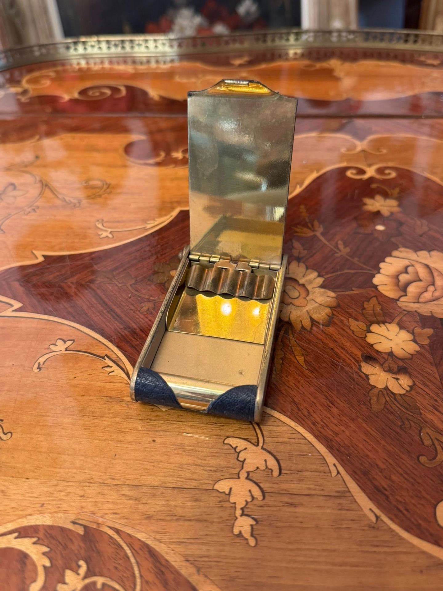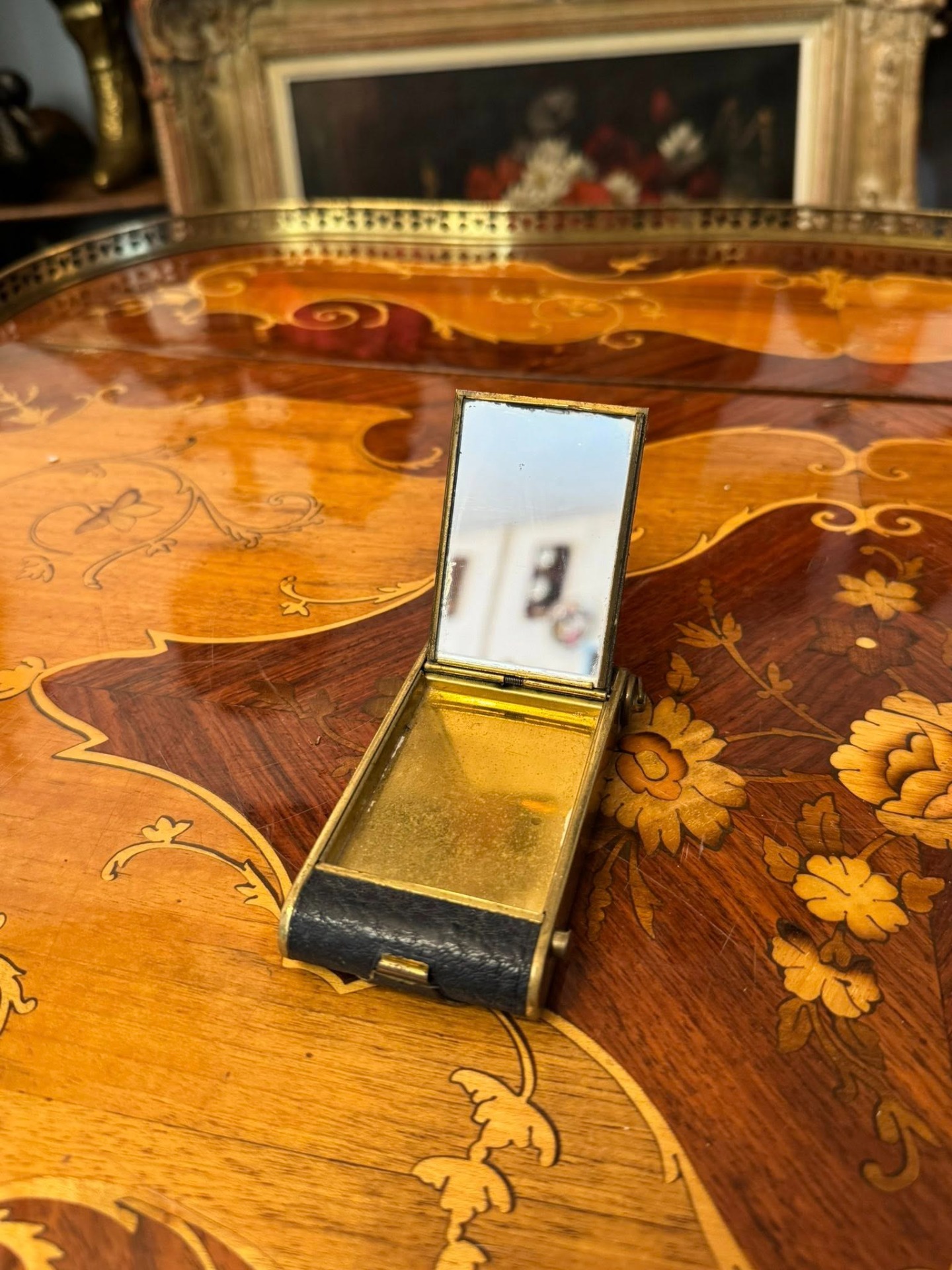 Pudrieră și tabachieră, un accesoriu de lux tipic pentru perioada de mijloc a secolului XX (anii 1930–1950), concepută pentru a fi purtată în poșetă.