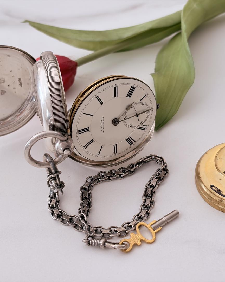 • Accesorii: Lanț de argint autentic cu marcaje pe fiecare za și cheie de întoarcere de epocă.