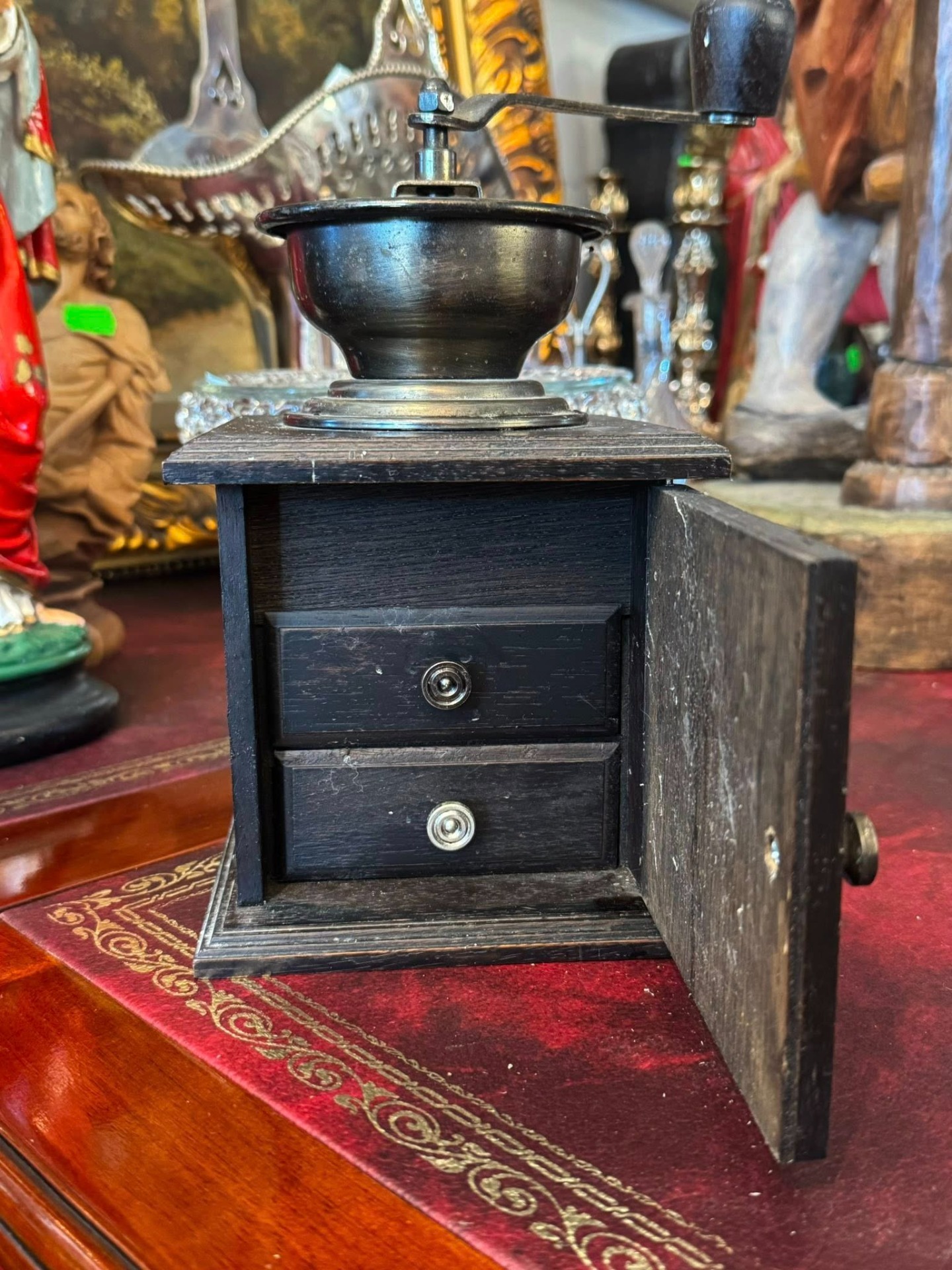 Râșniță de cafea manuală din lemn de culoare închisă,