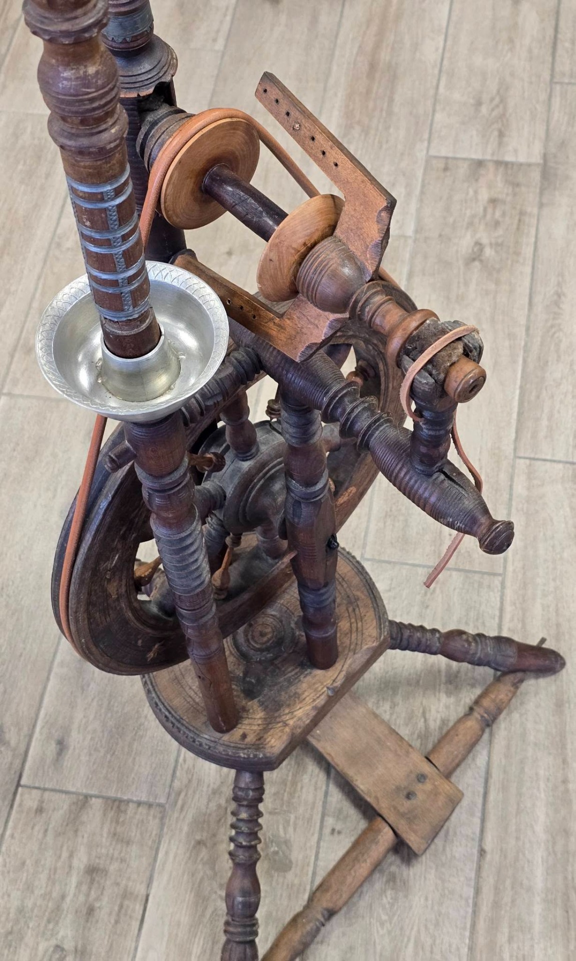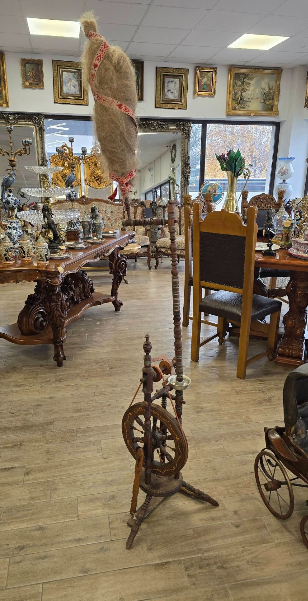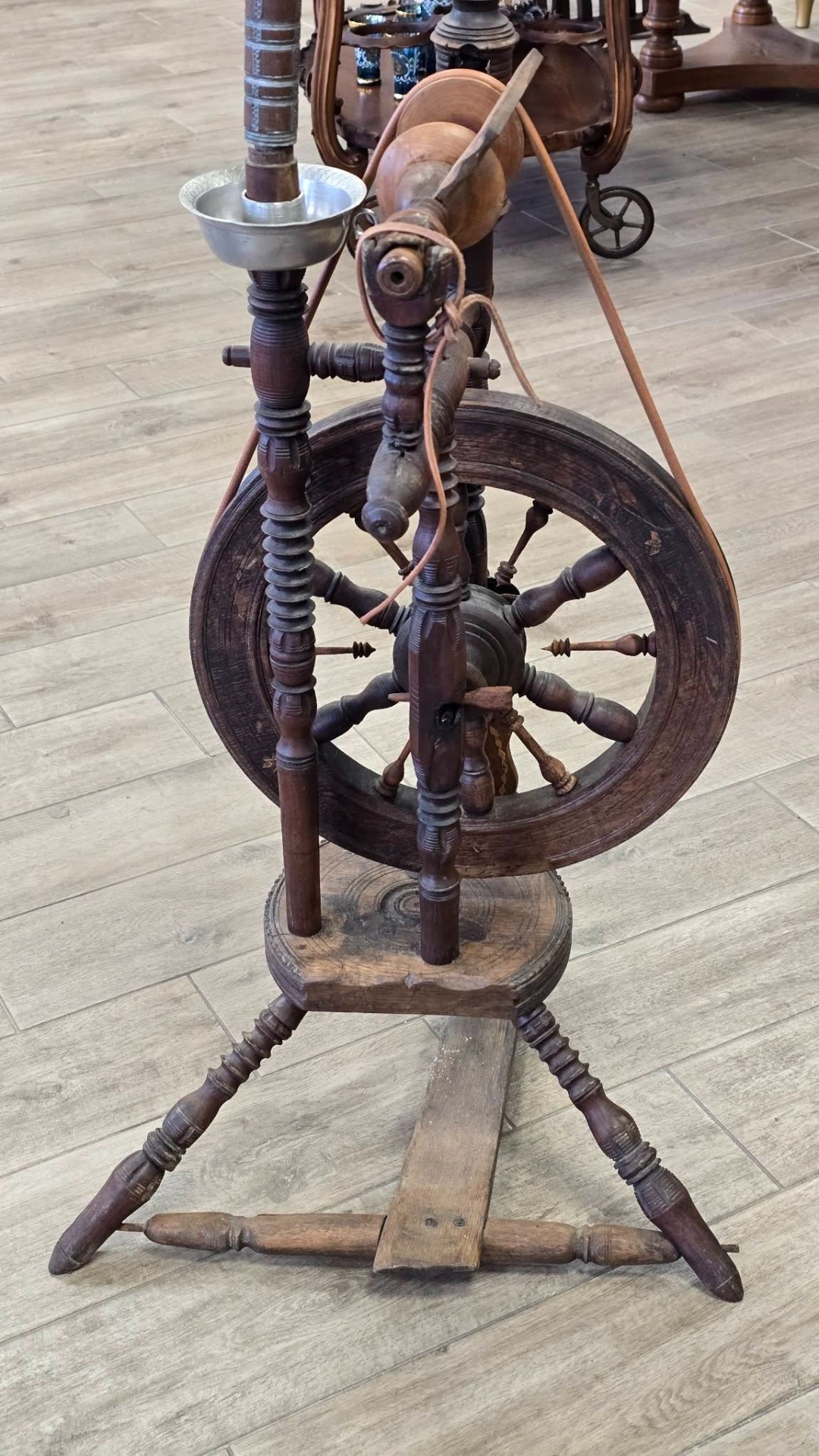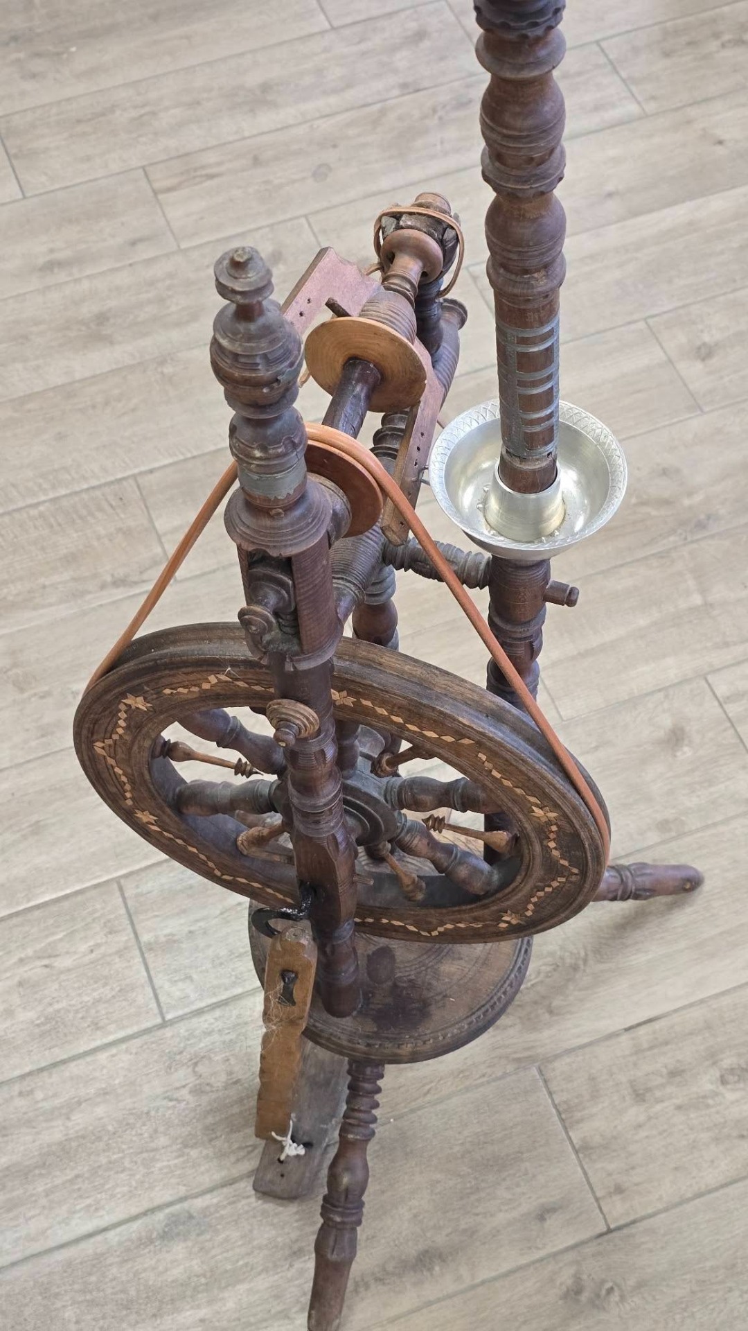 Roată de tors verticală (model "Castle Wheel"), o piesă autentică de colecție, ideală pentru decor rustic, pensiuni sau colecționari de artă populară, cu