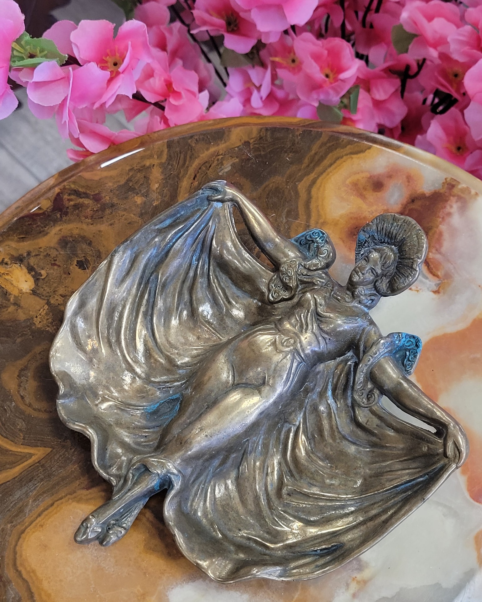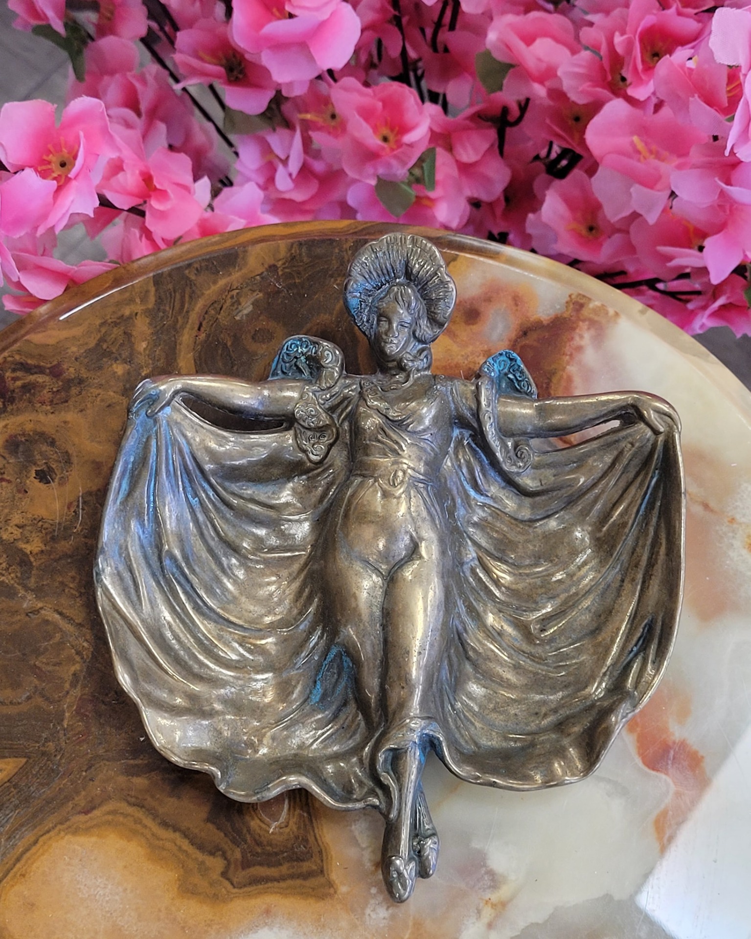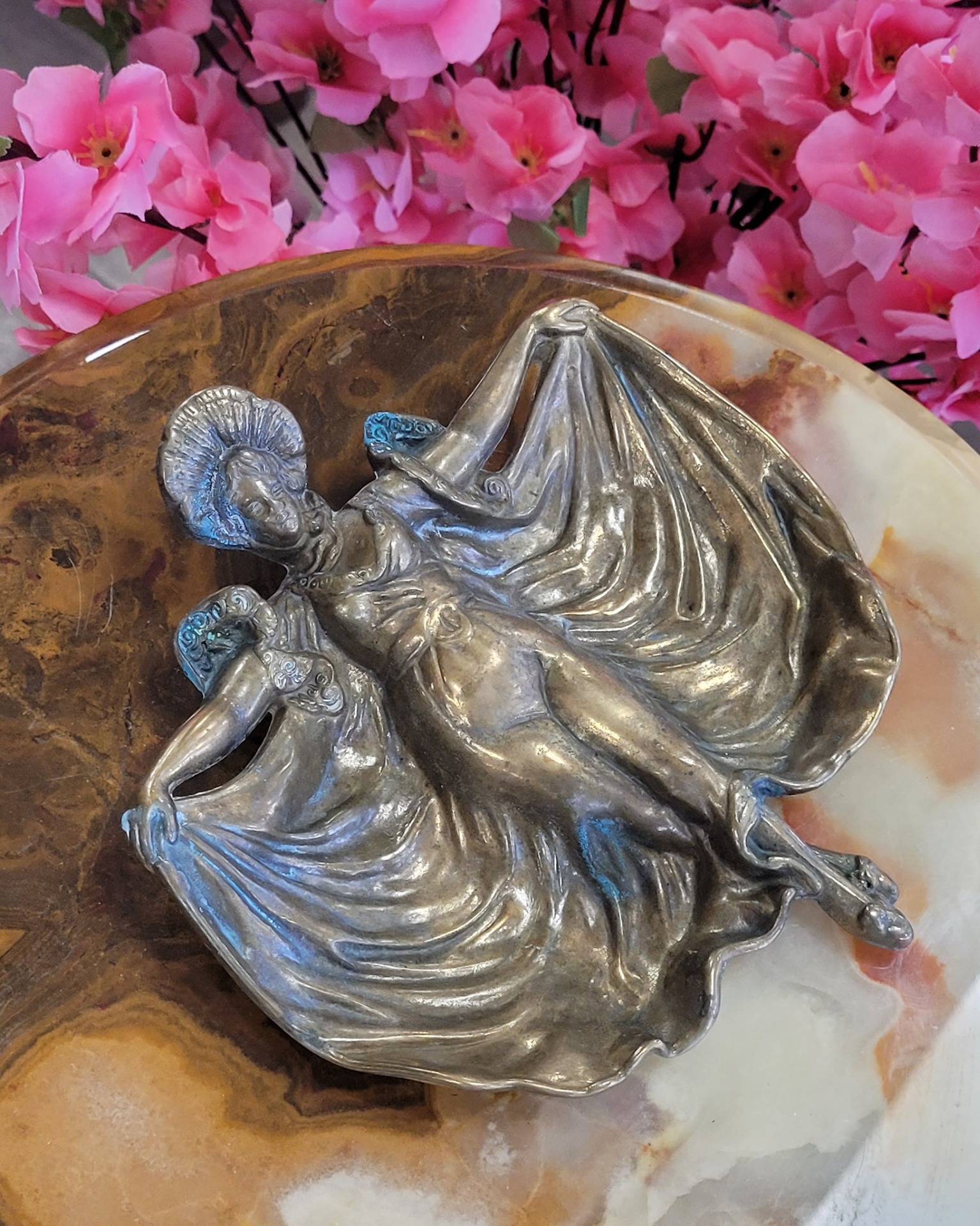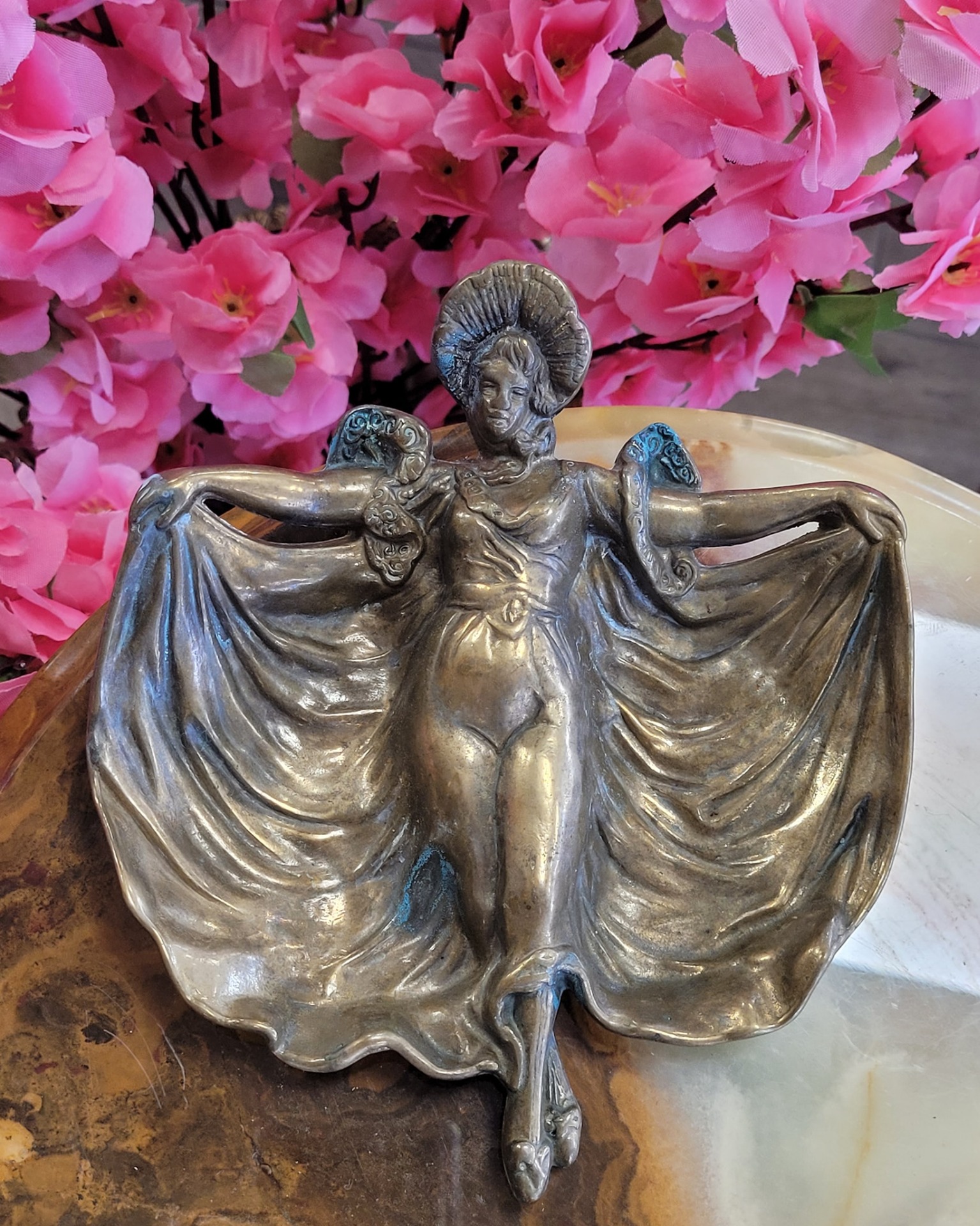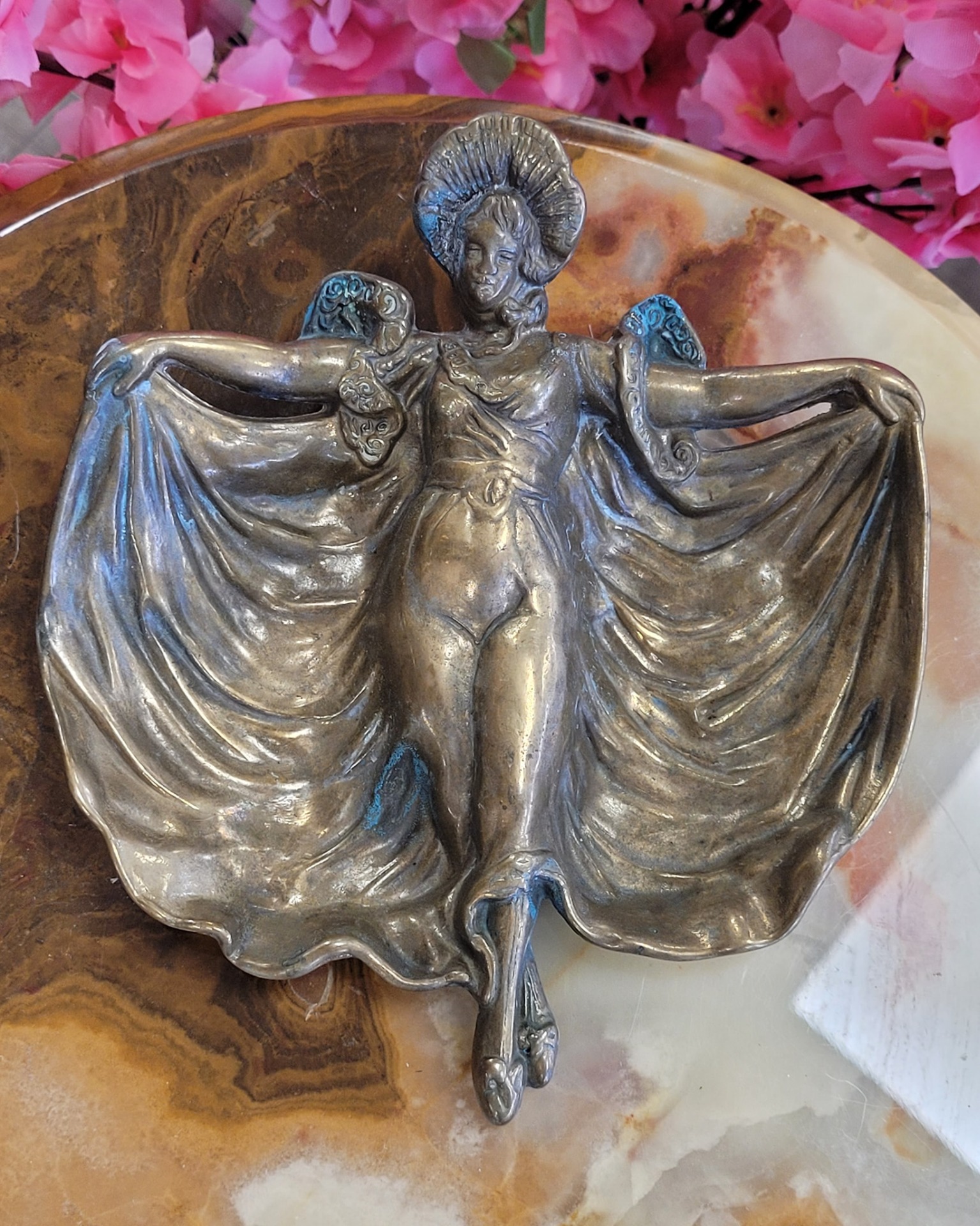 Scrumieră din bronz Art Nouveau, de colecție, dansatoarea Loïe Fuller, 1900 (Belle Époque).