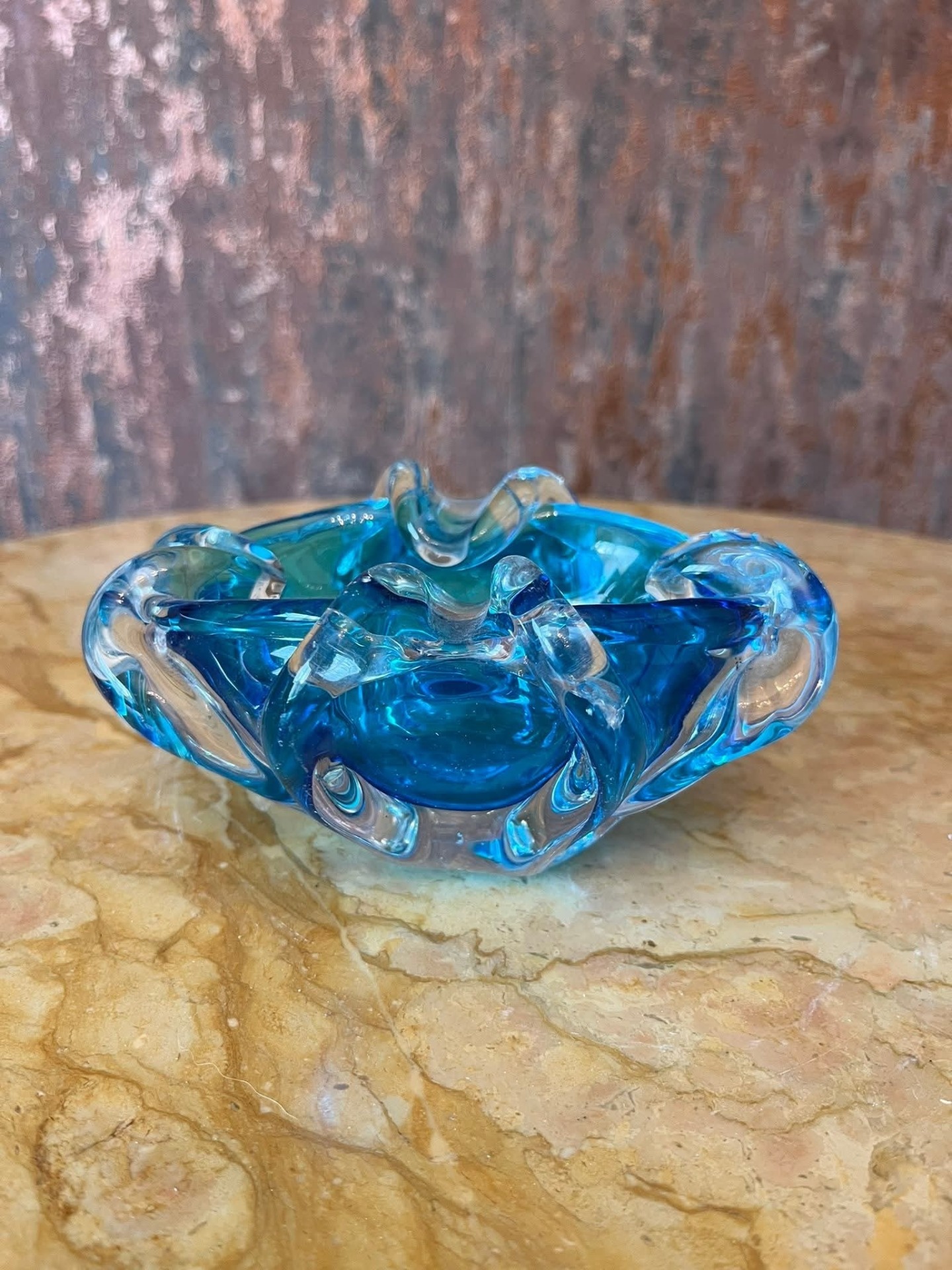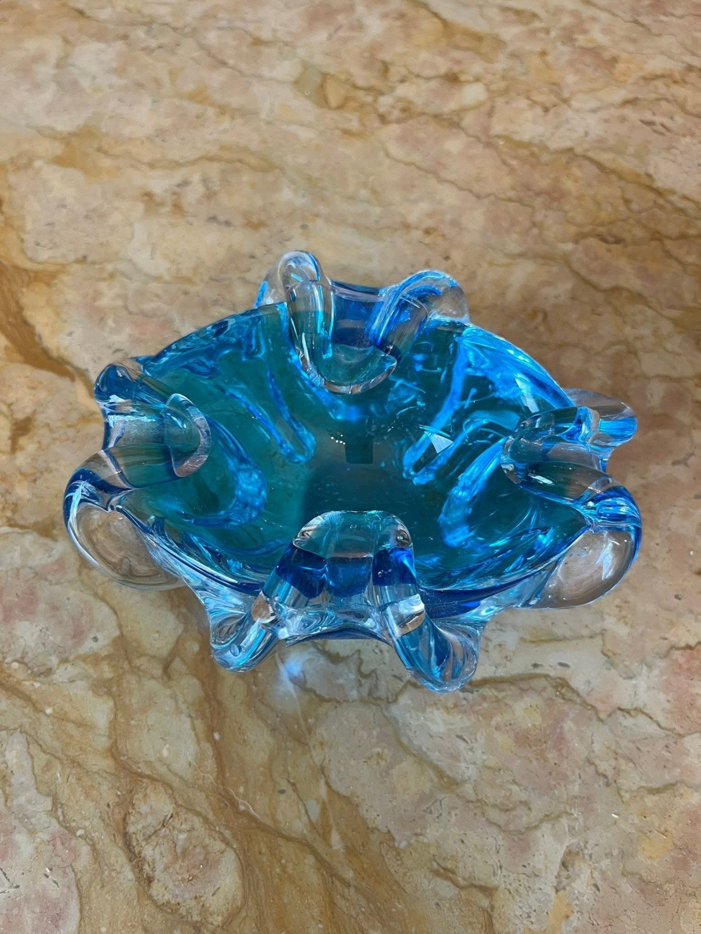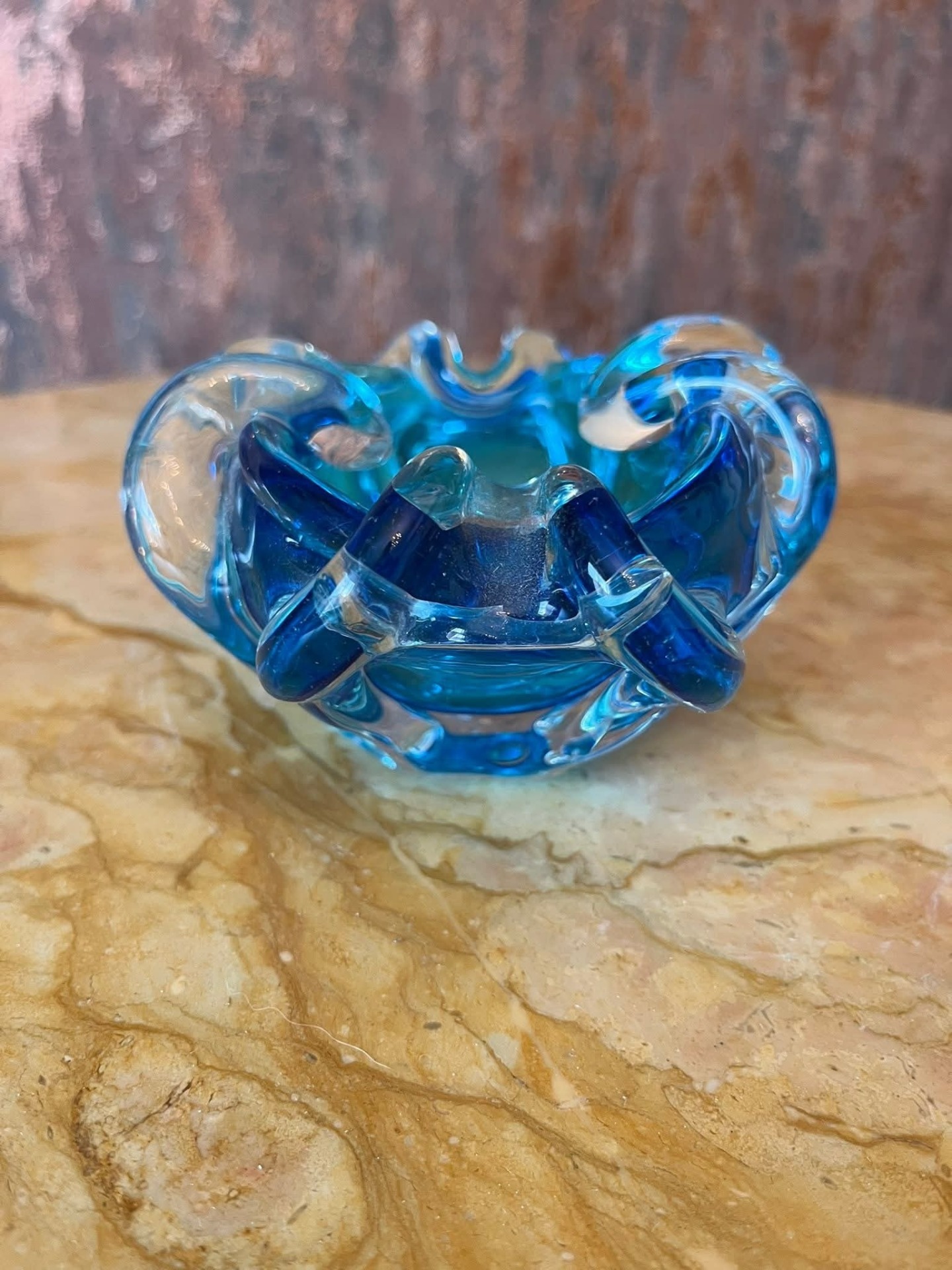 Scrumiera l decorativa din sticlă Murano-style, albastru intens