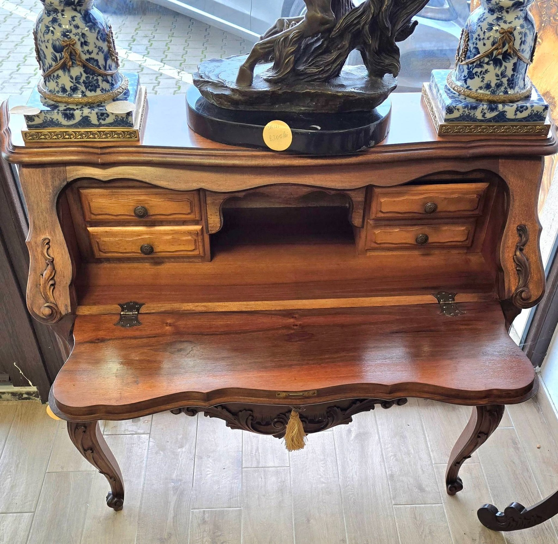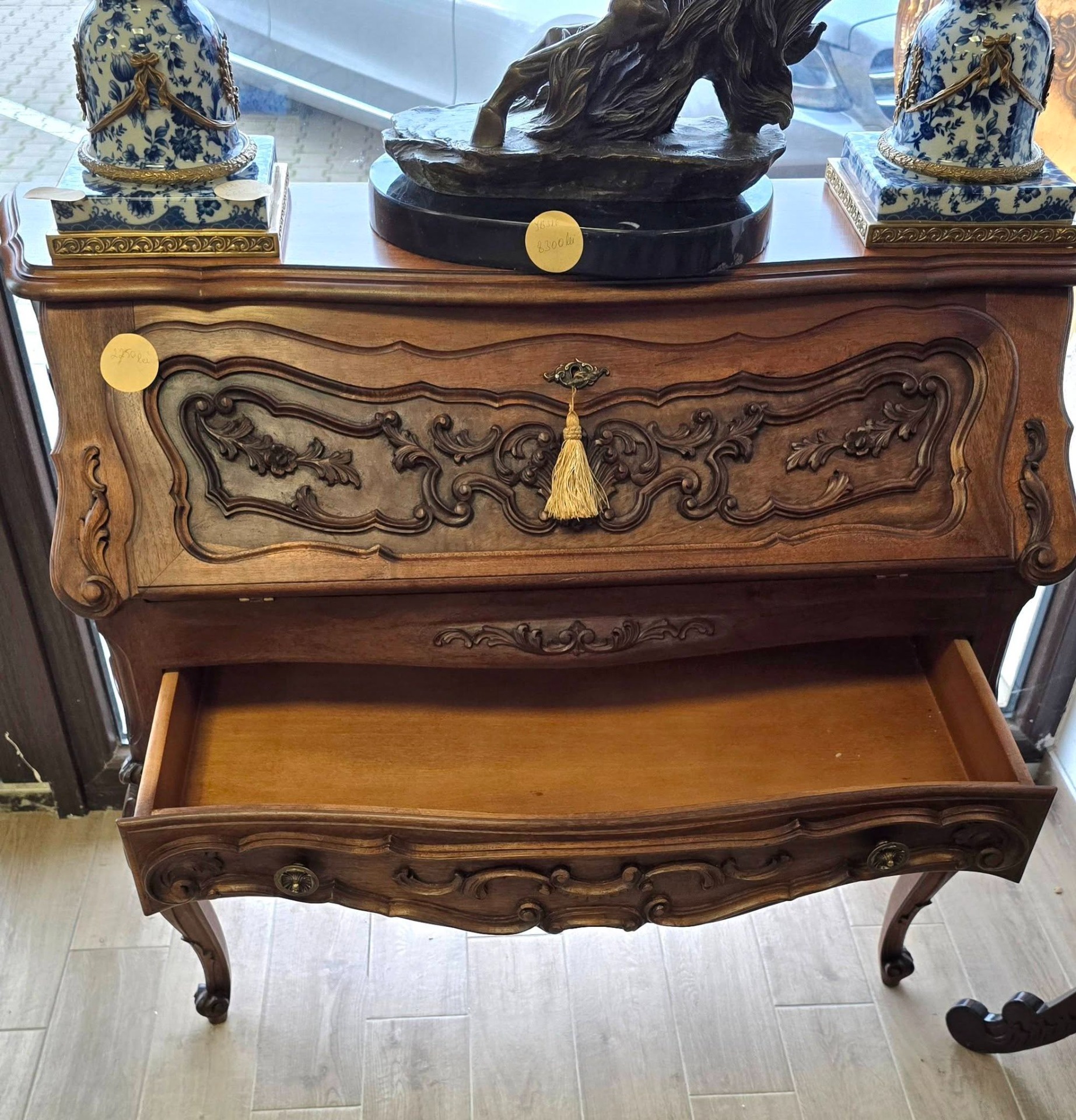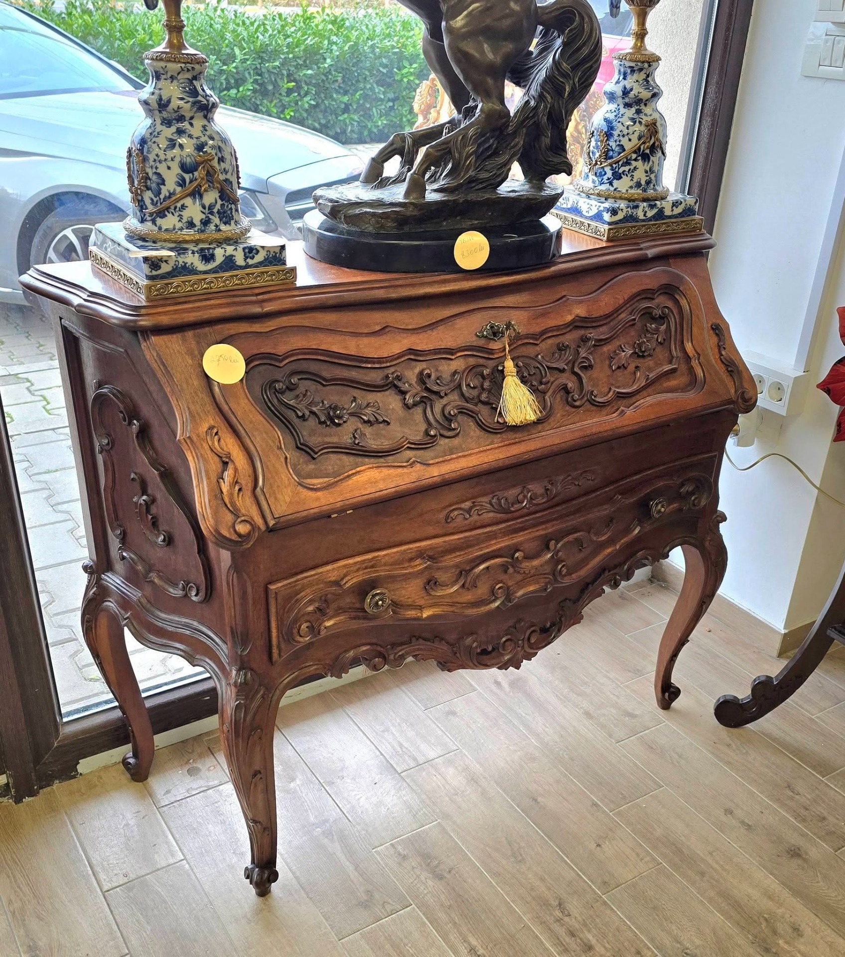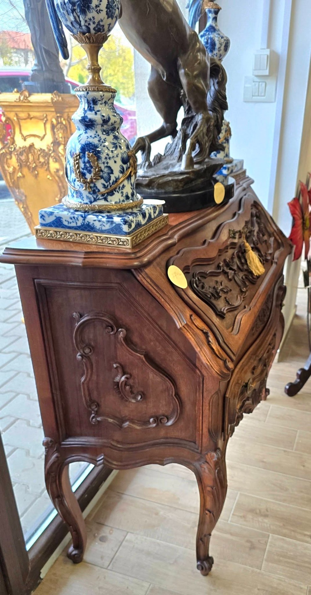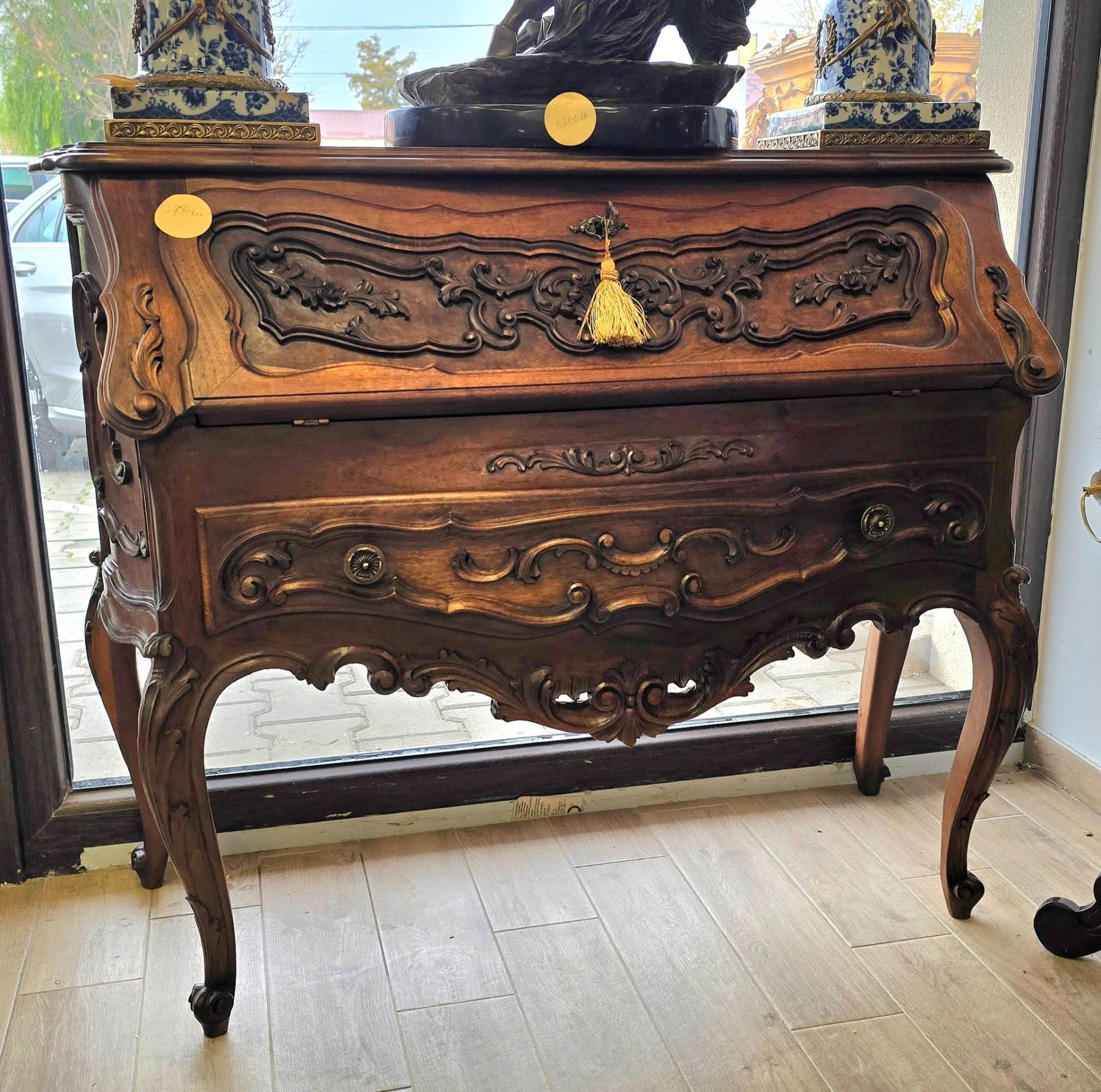 Secreter (Bureau de dame) de excepție, realizat în stilul clasic francez Ludovic al XV-lea (rococo), cu design "bombé" specific stilului baroc, cu picioare