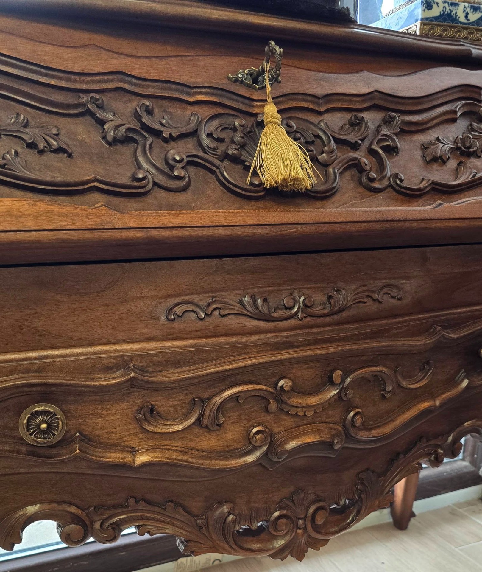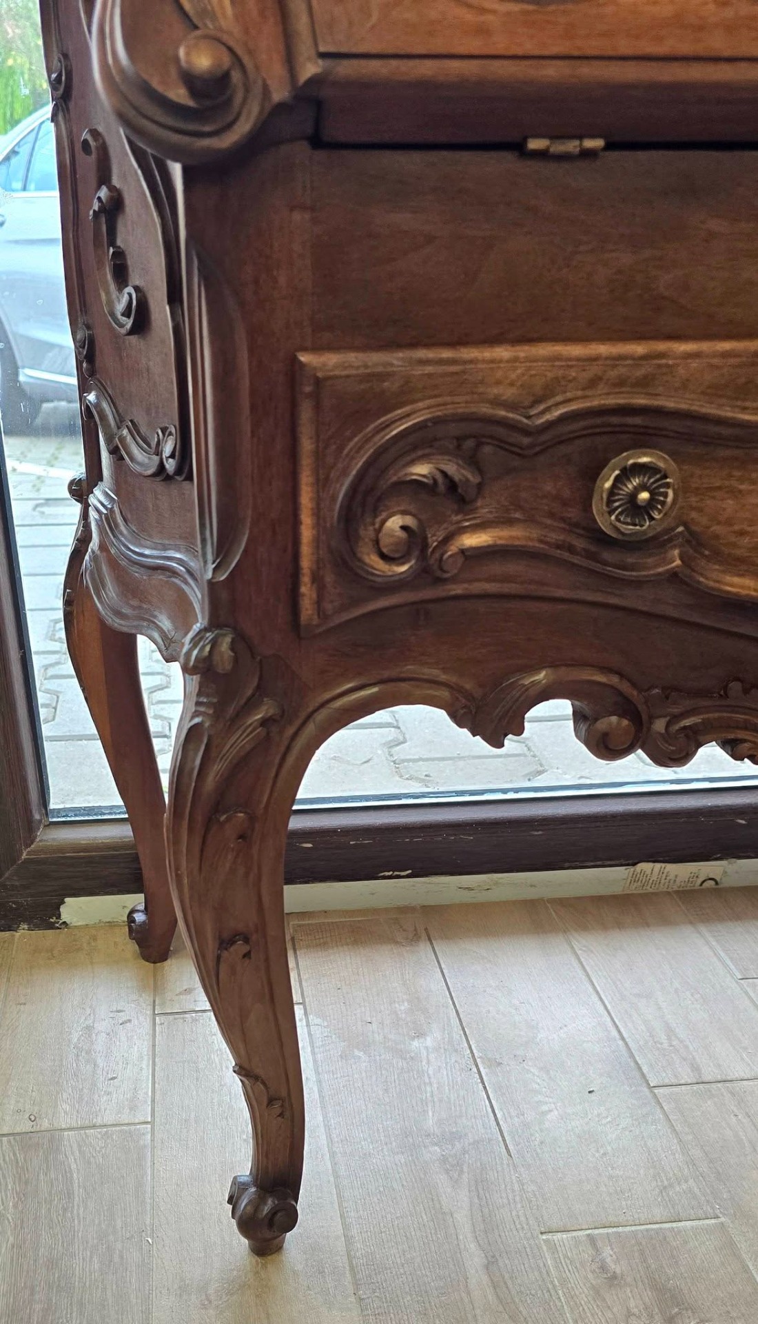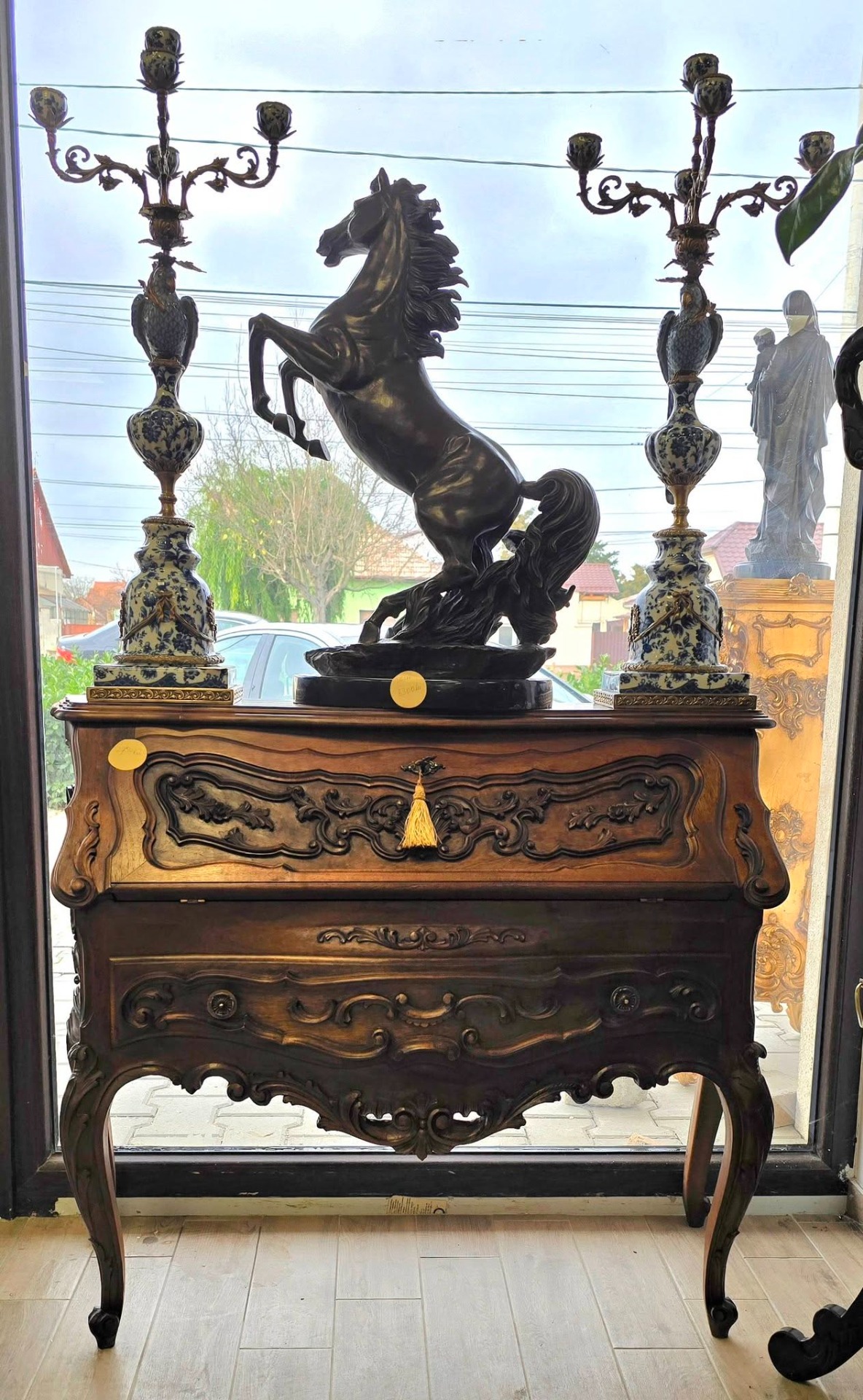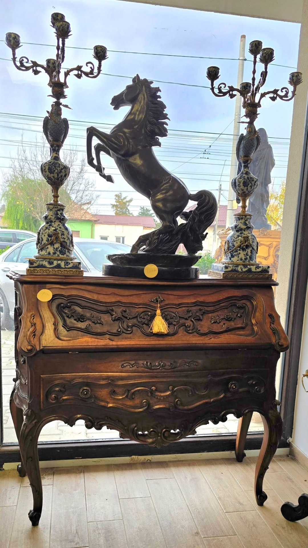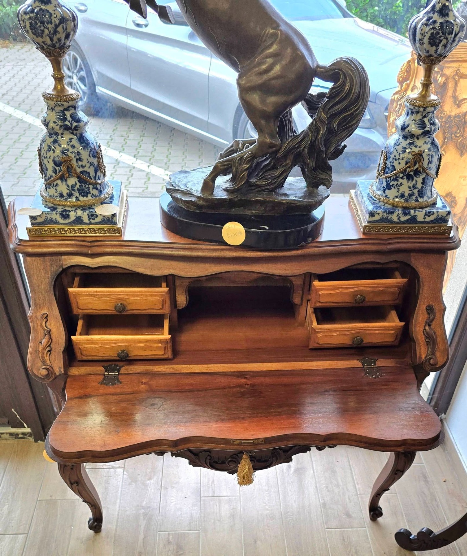 Secreter (Bureau de dame) de excepție, realizat în stilul clasic francez Ludovic al XV-lea (rococo), cu design "bombé" specific stilului baroc, cu picioare