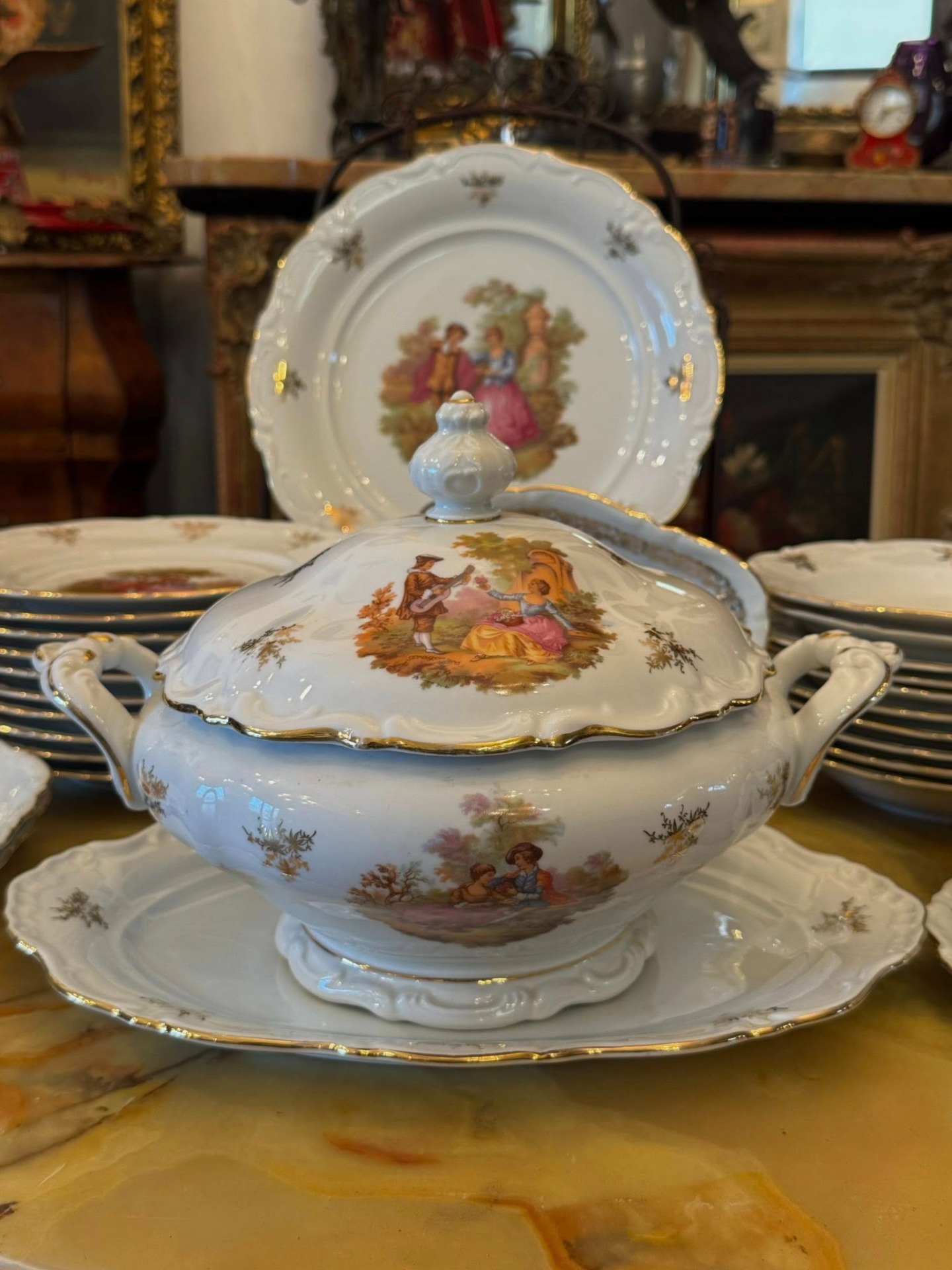 Serviciu de masă vintage de 10 persoane "Winterling Röslau" – Tematică Fragonard (Bavaria-Germania)