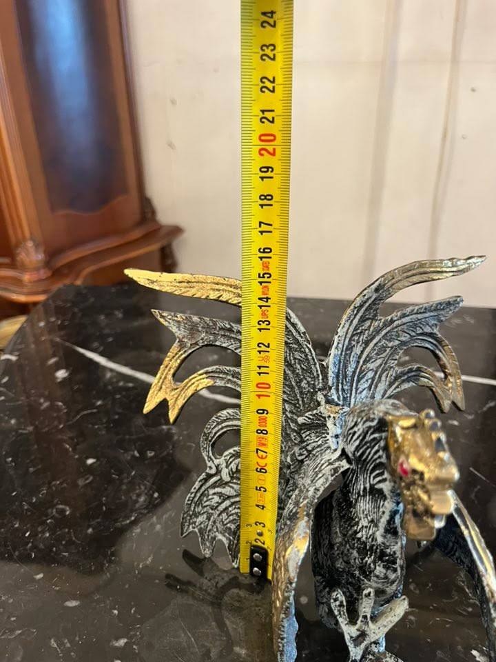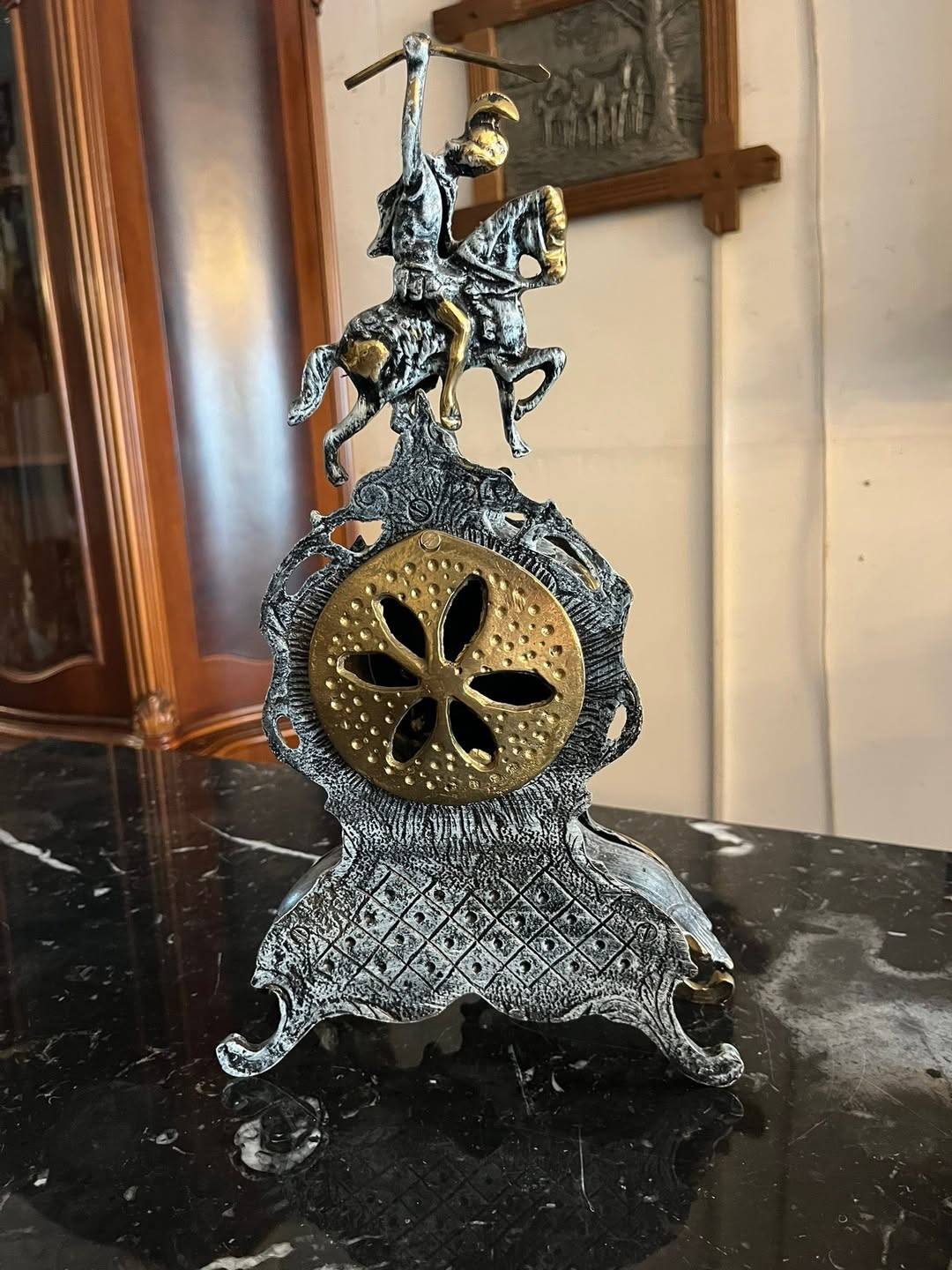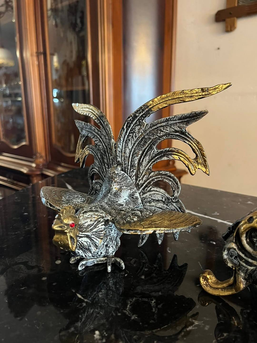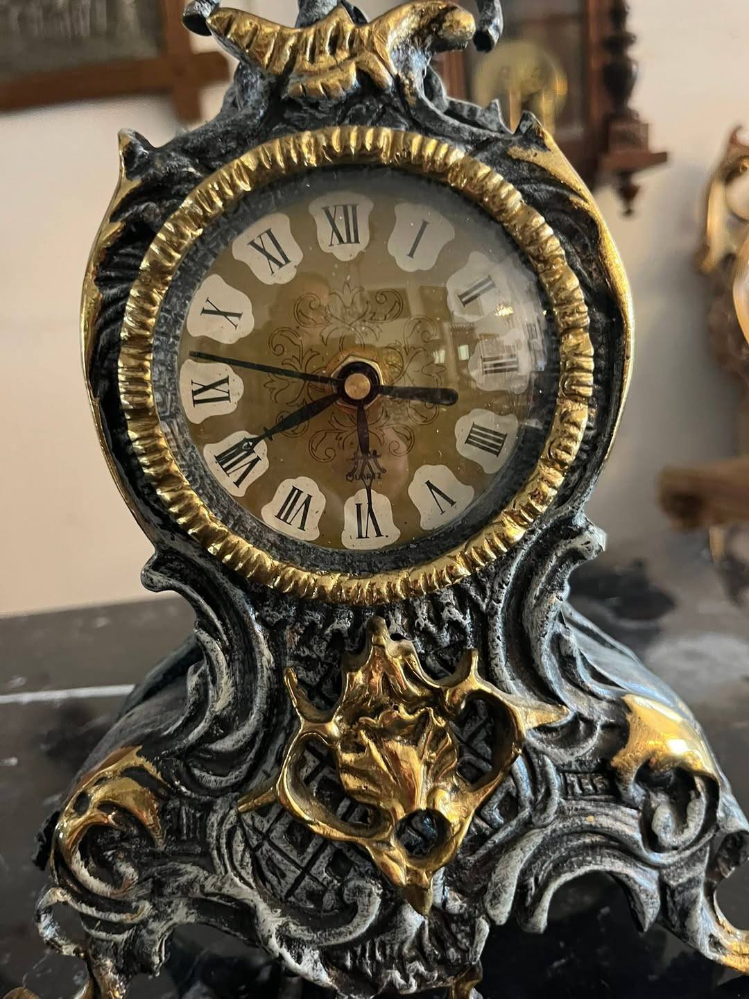 Set ceas de masă vintage + 2 cocoși decorativi – stil baroc, metalic, cu detalii aurii