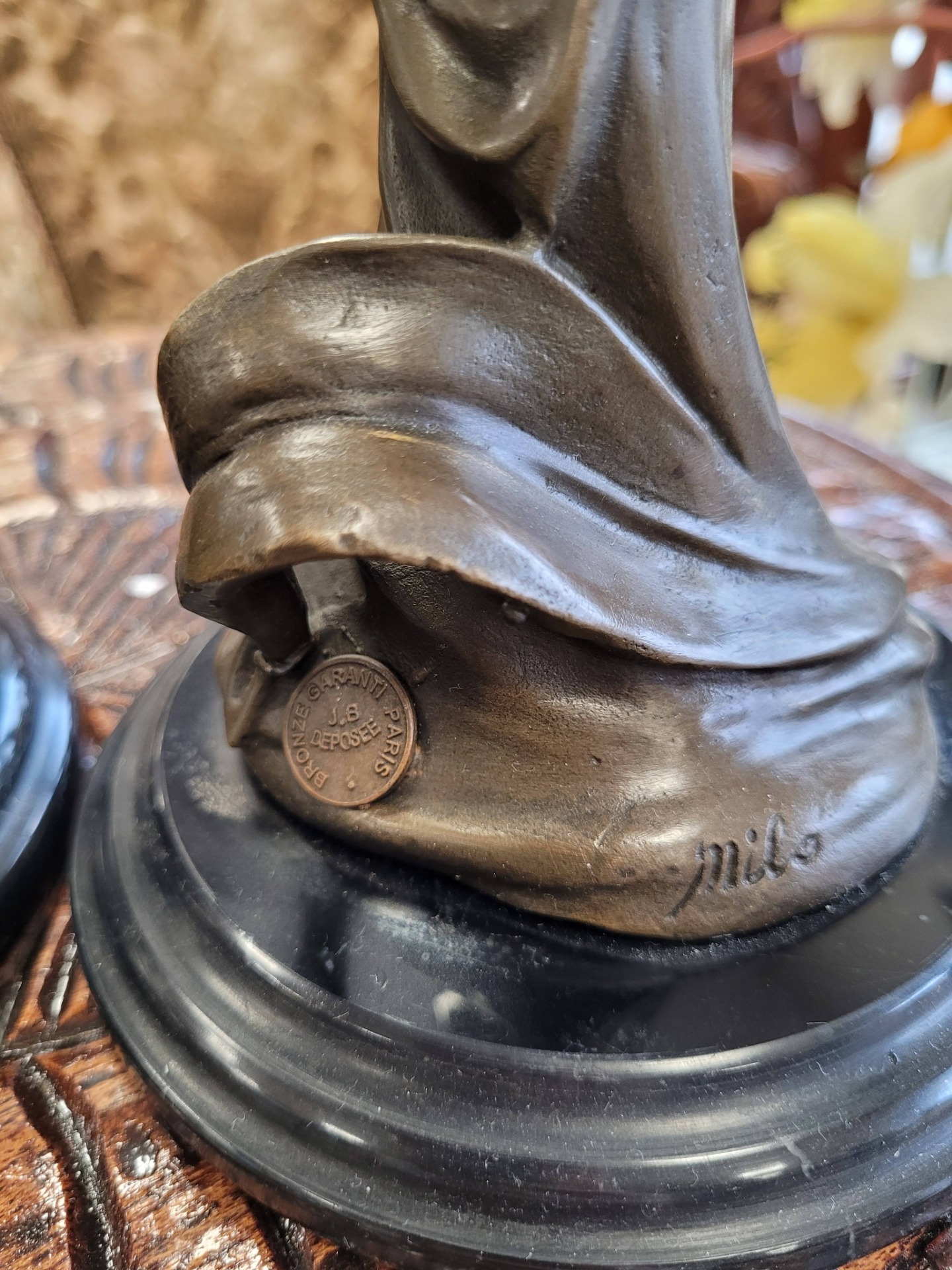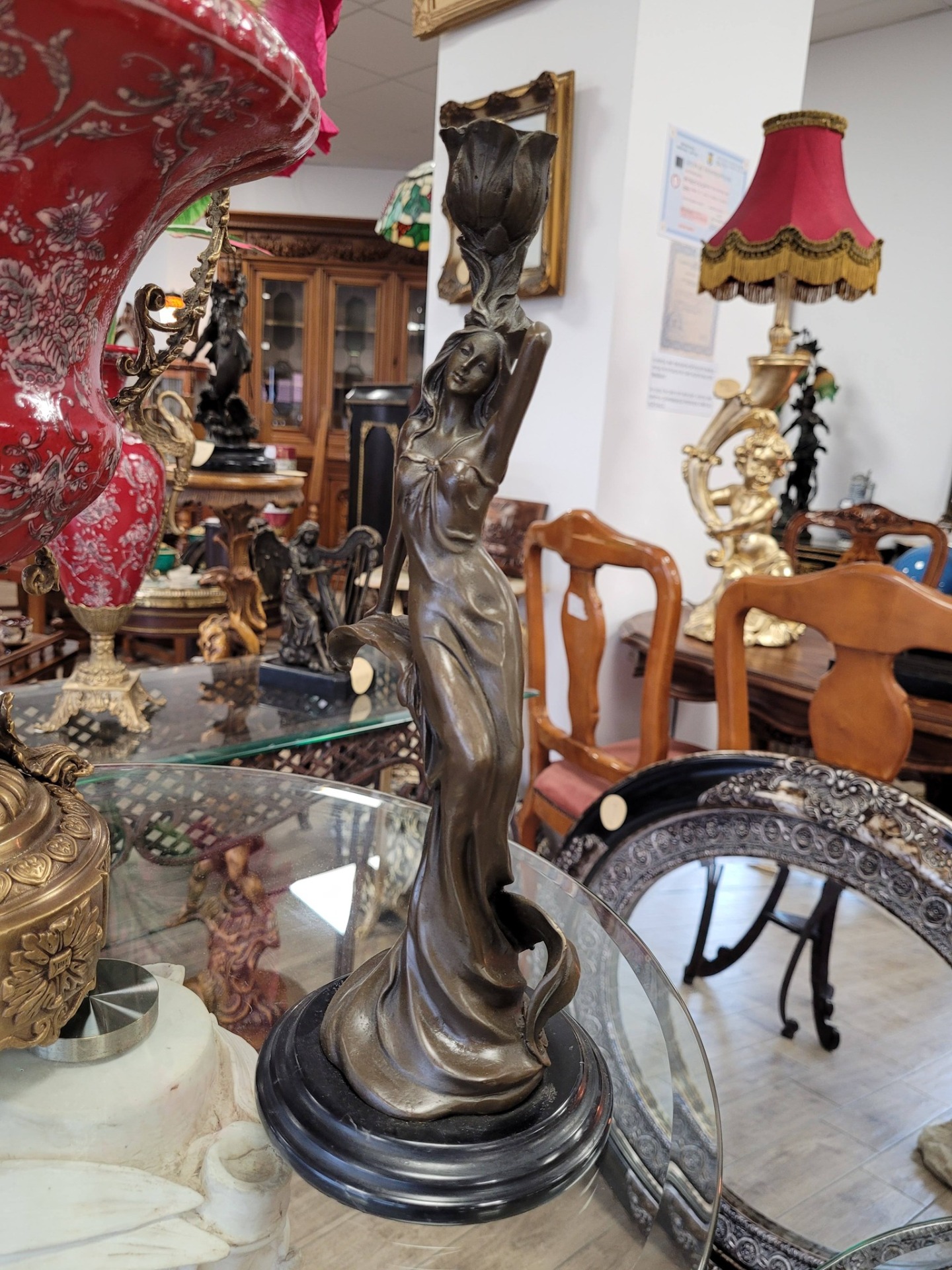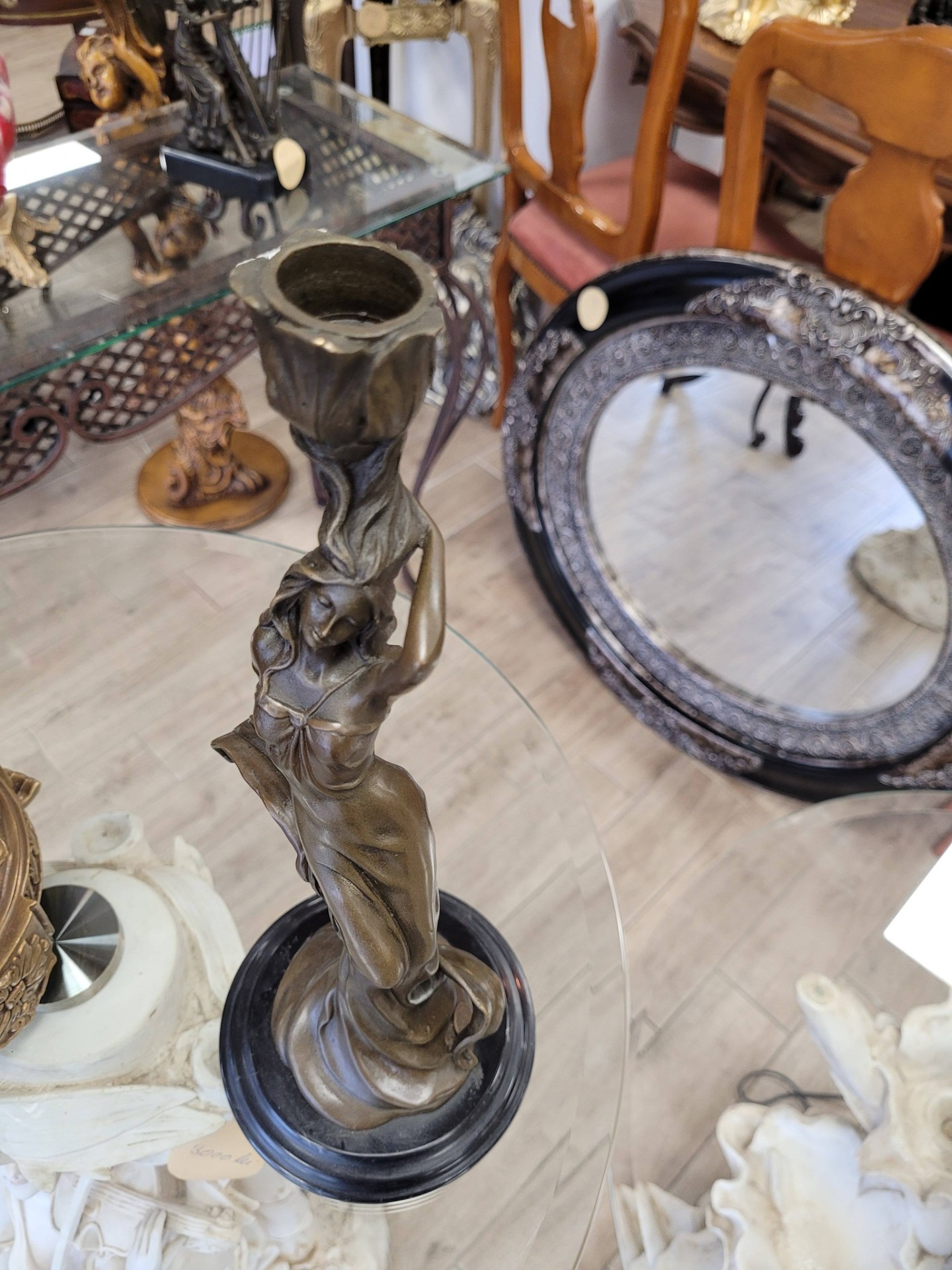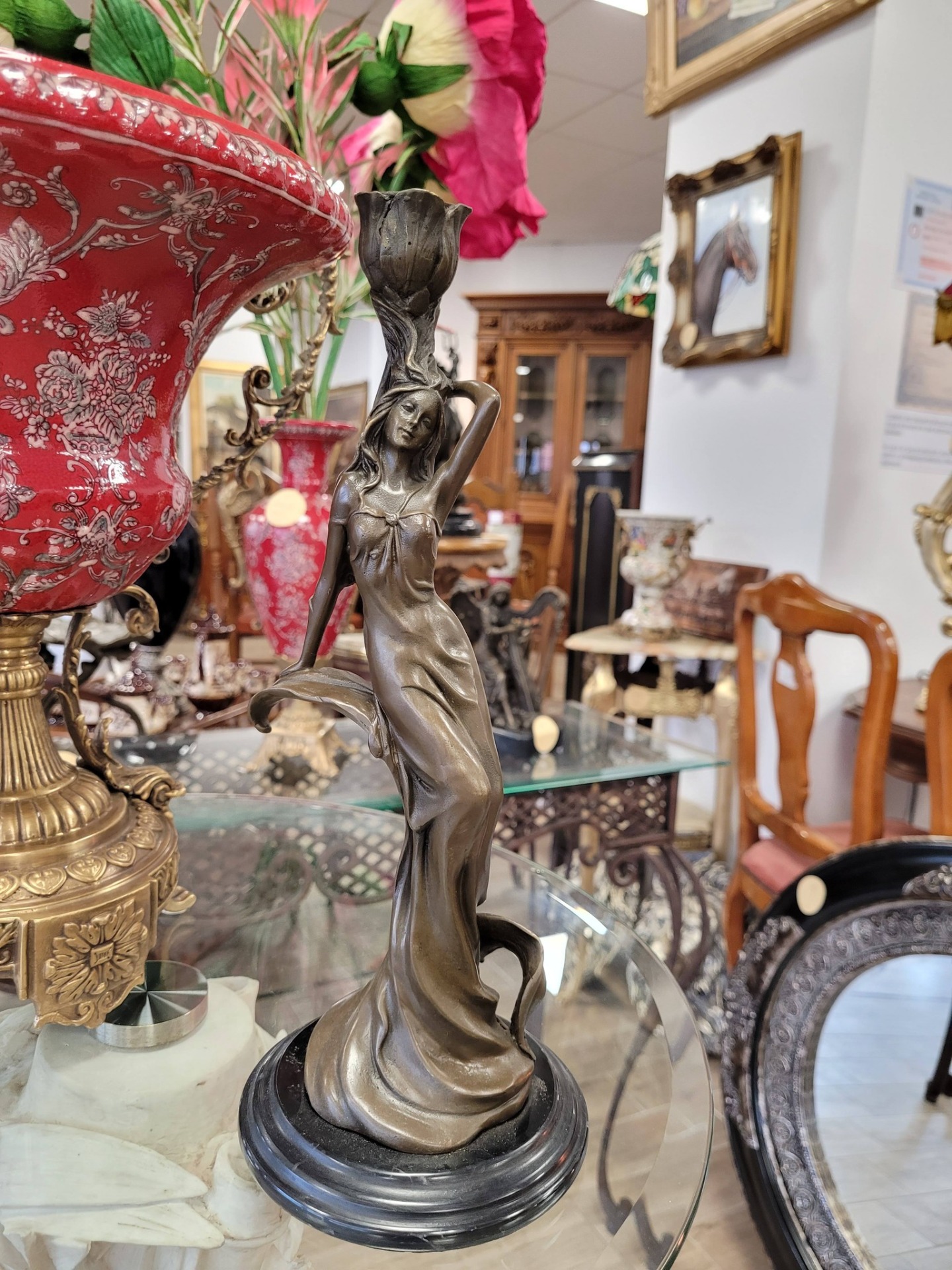 Set compus din două sfeșnice din bronz, în stil Art Nouveau, piese care combină funcționalitatea cu arta, fiind ideale pentru a crea o atmosferă rafinată și