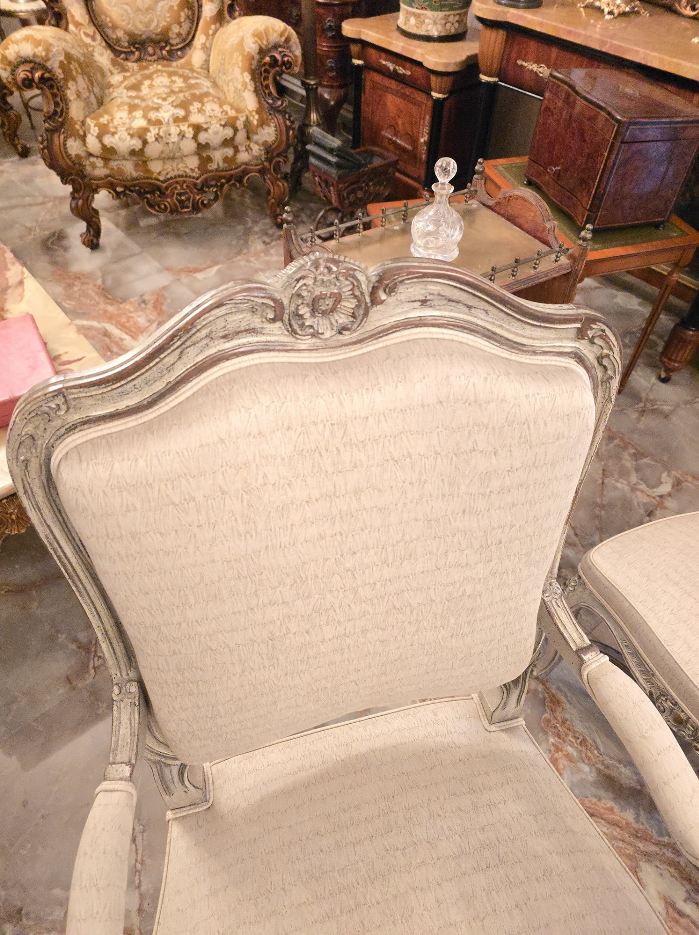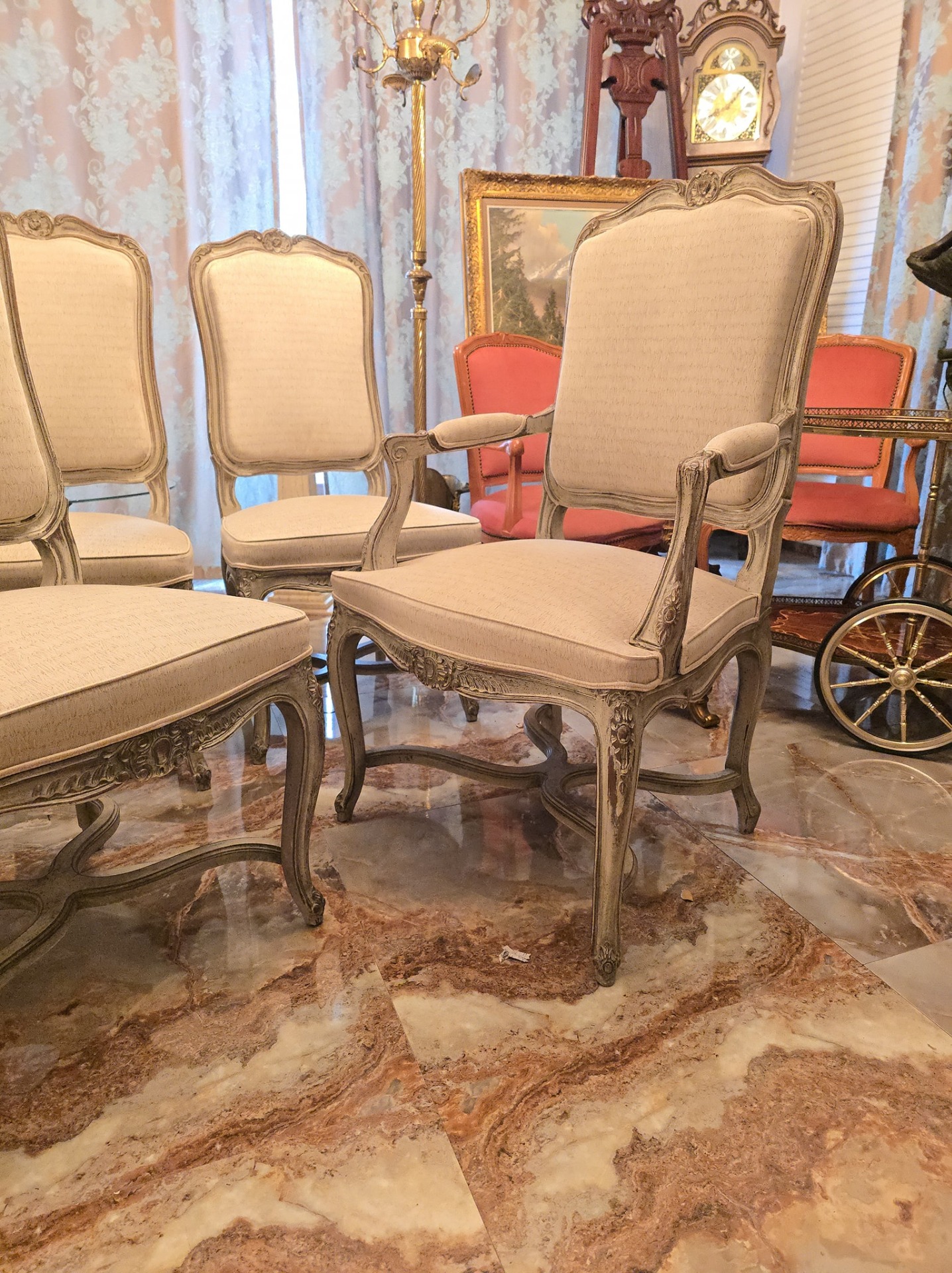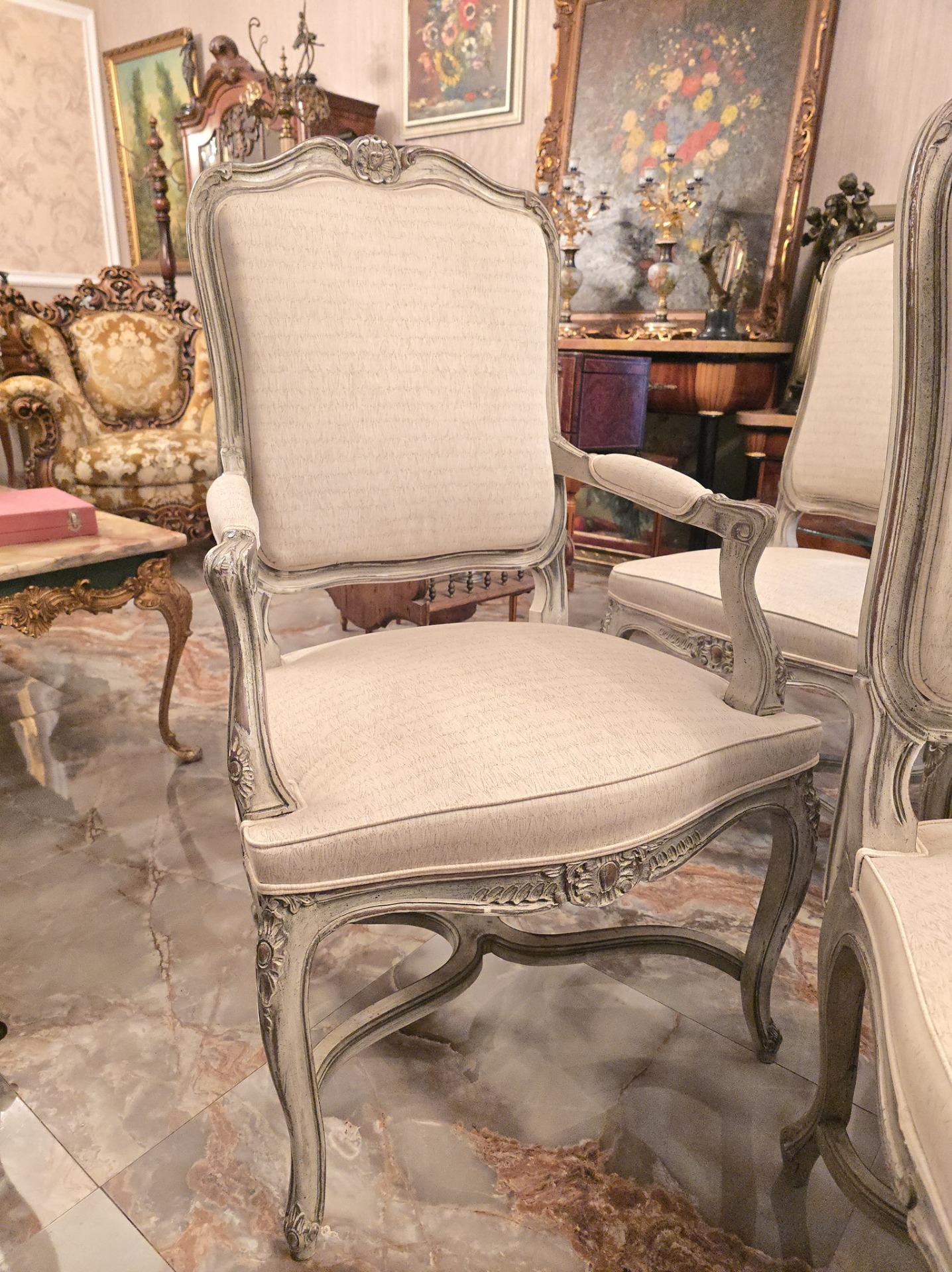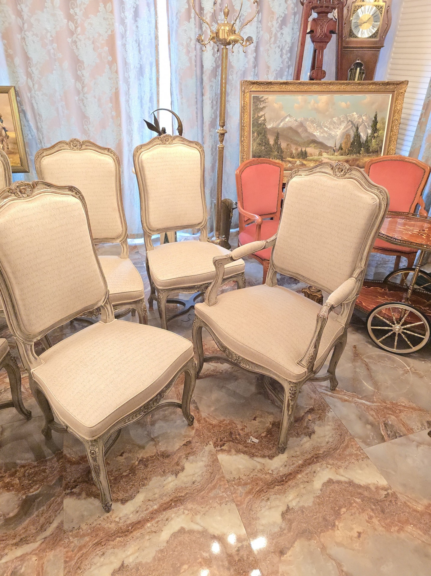 Set de 6 scaune in stilul louis realizate recent,tapiseria calitatetiva (alb-gri)