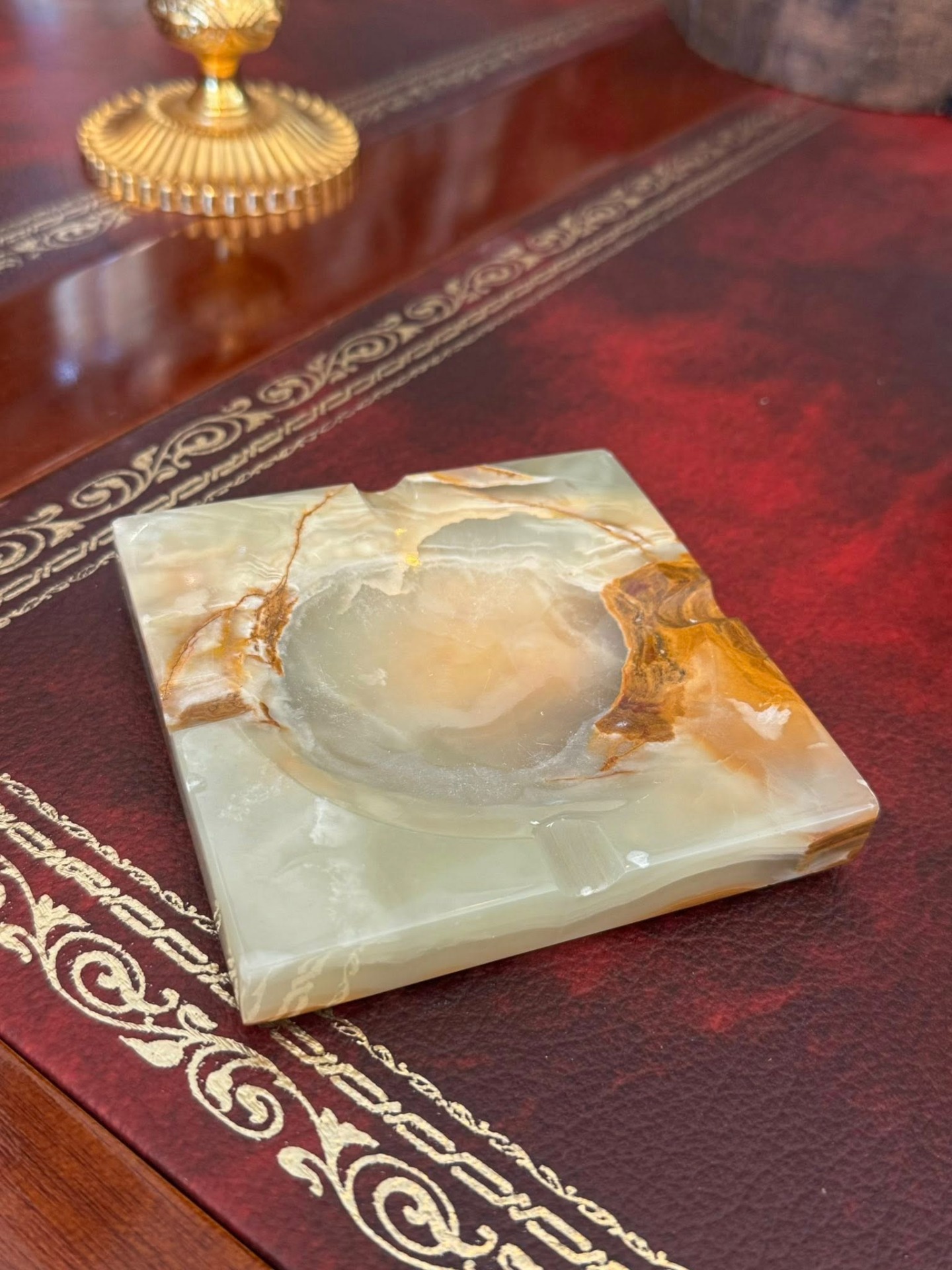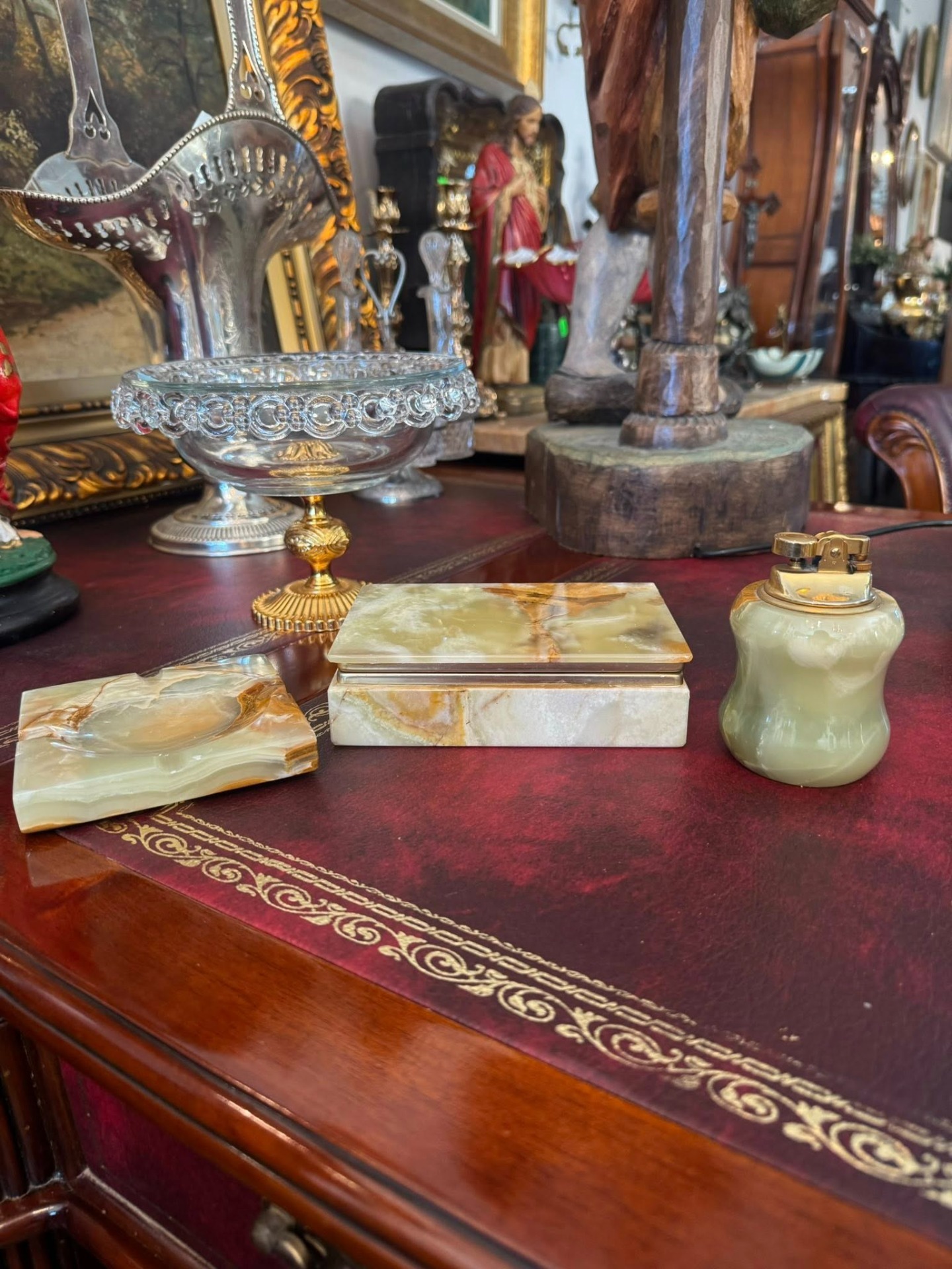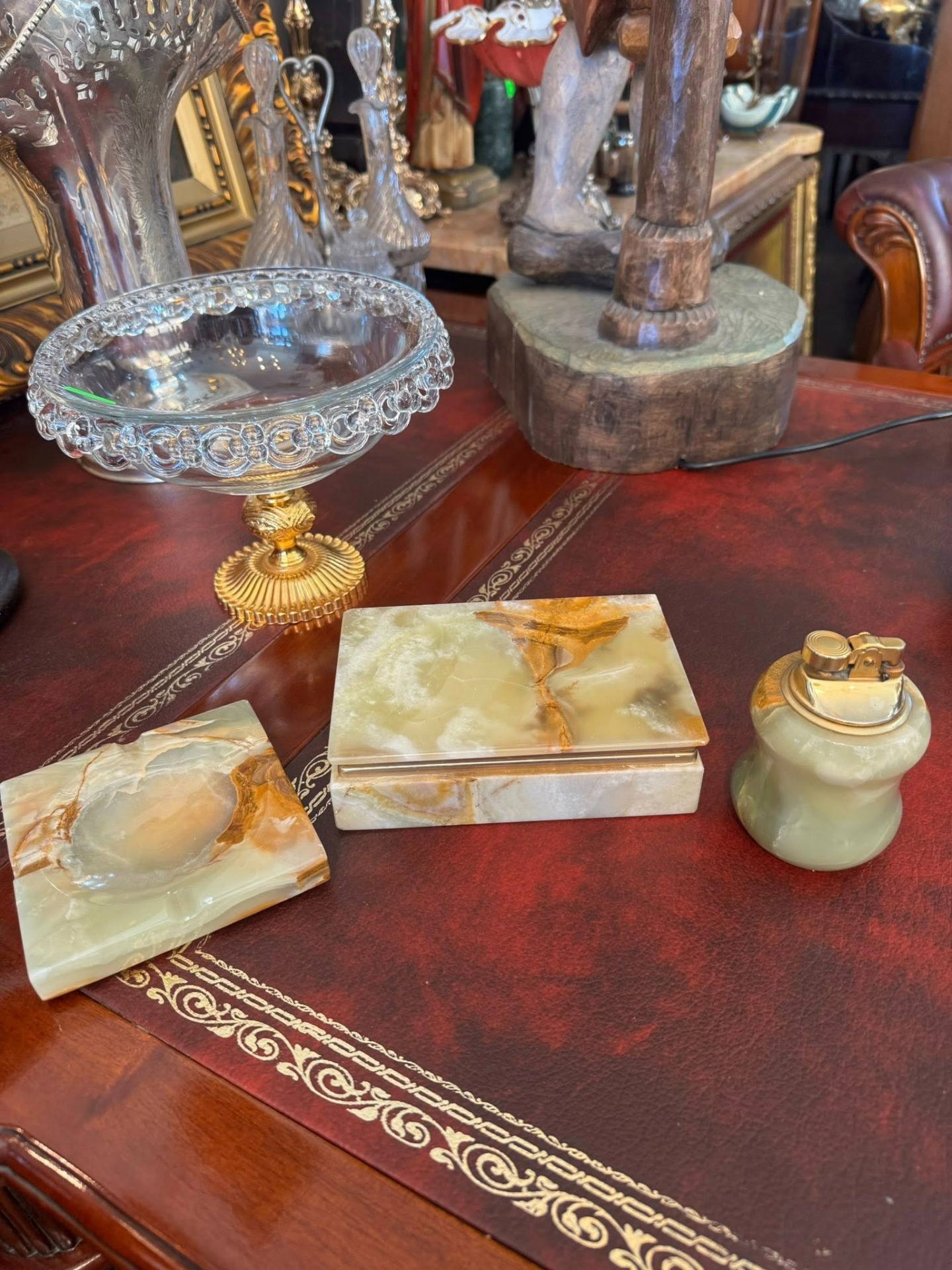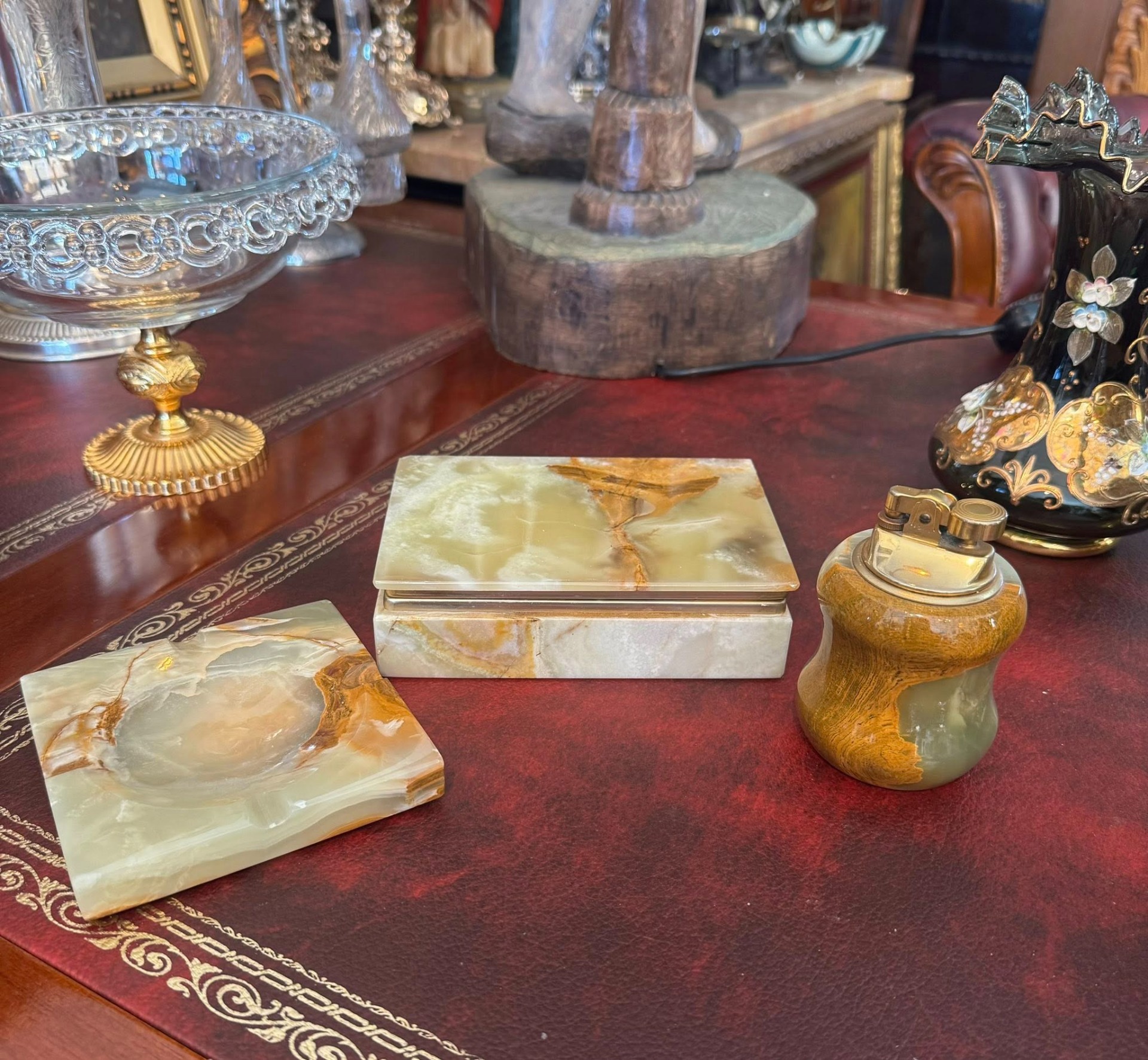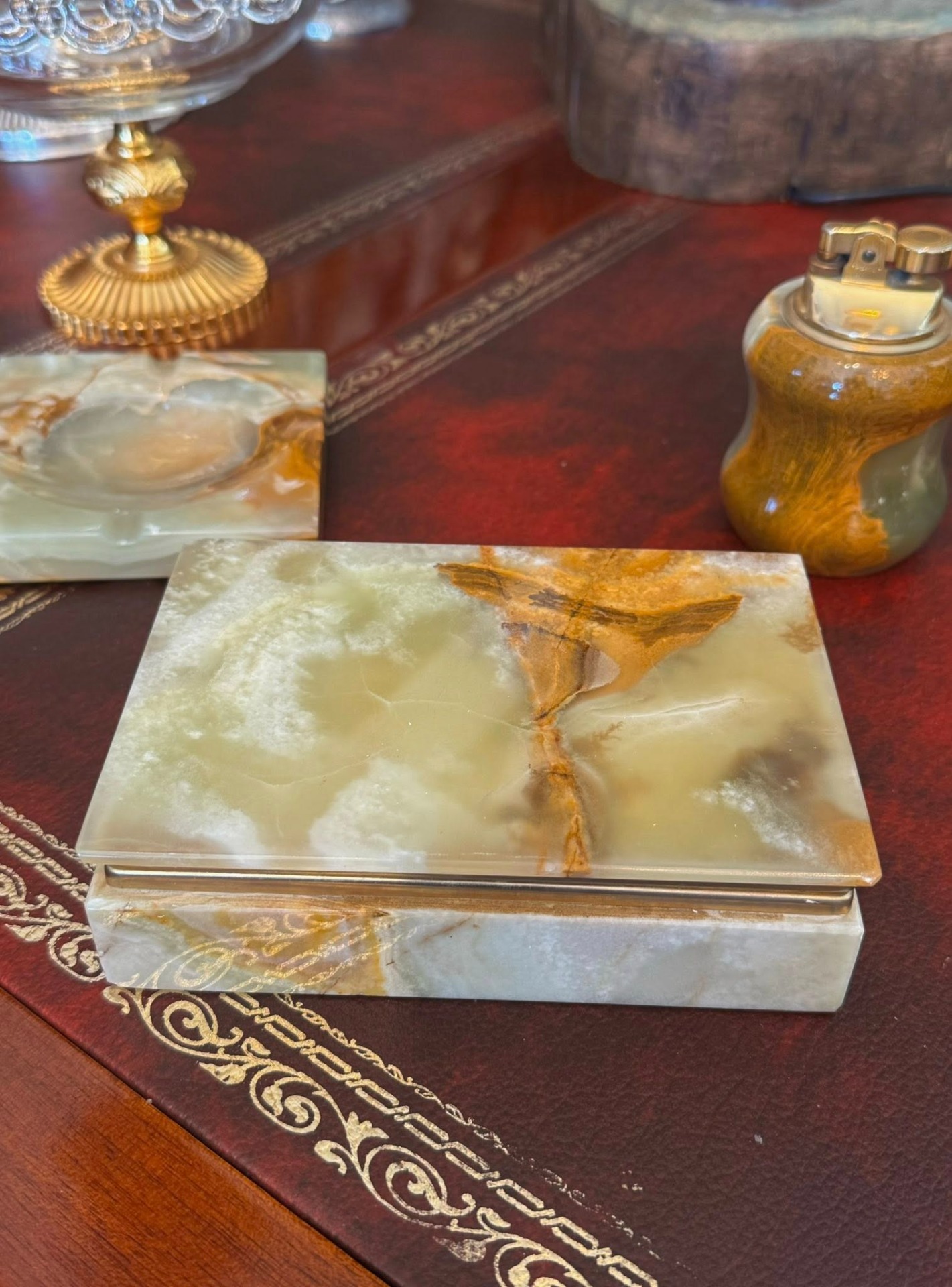 Set de birou vintage, realizat din onix natural. (stil Mid-Century, cca 1960)