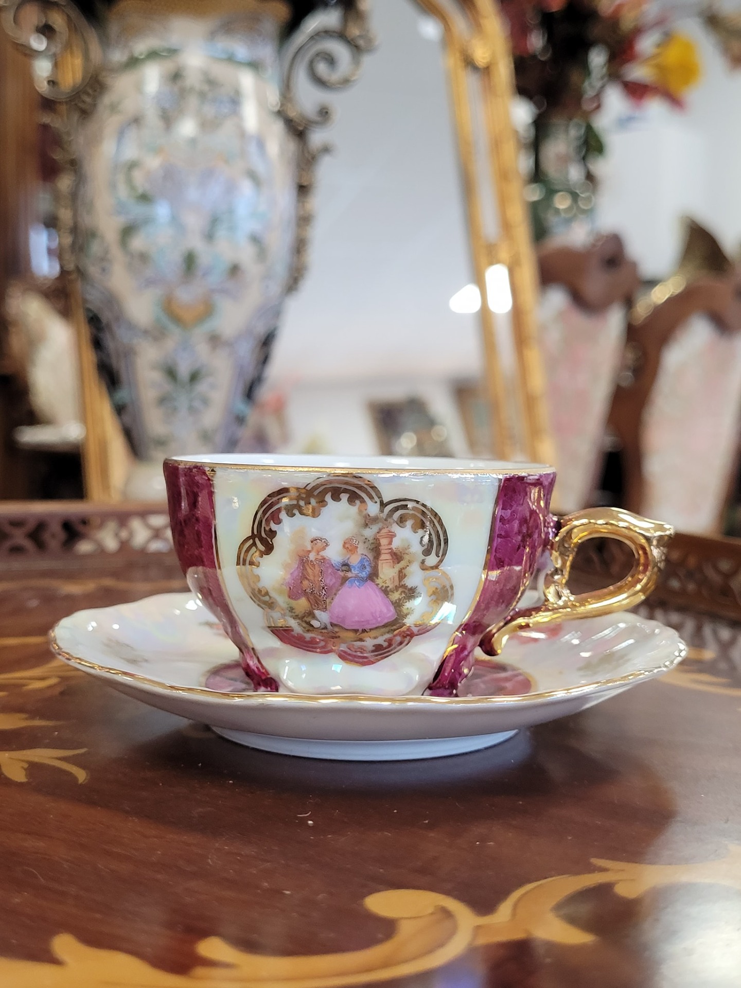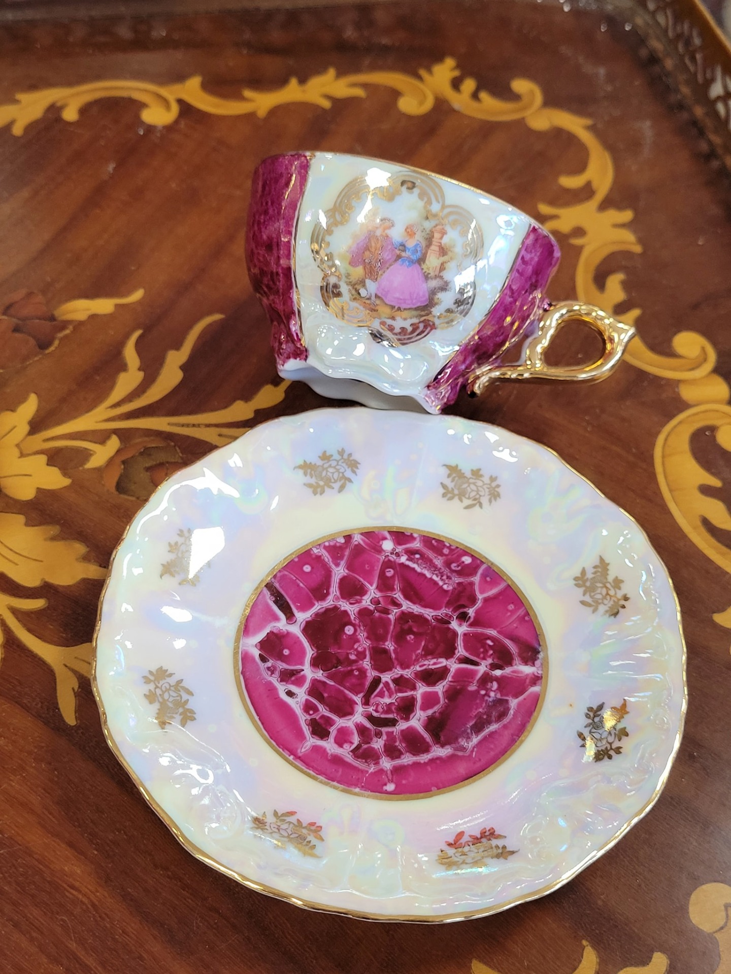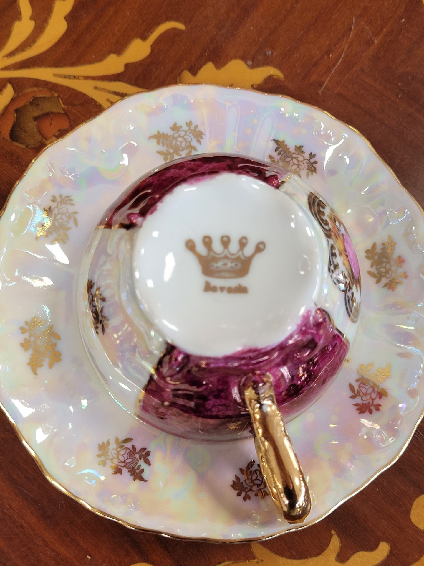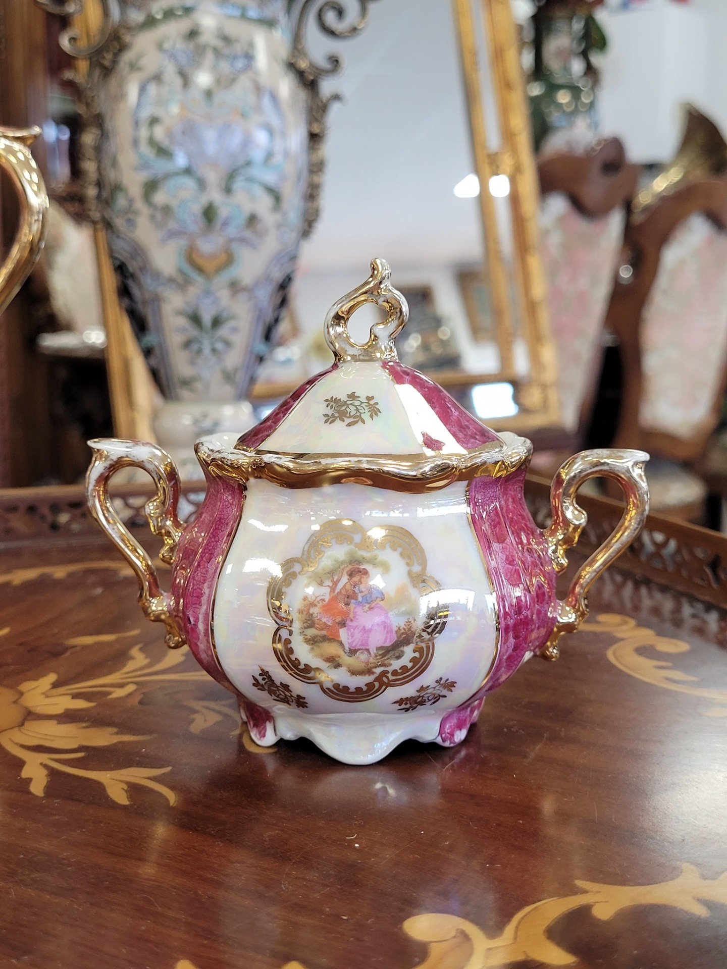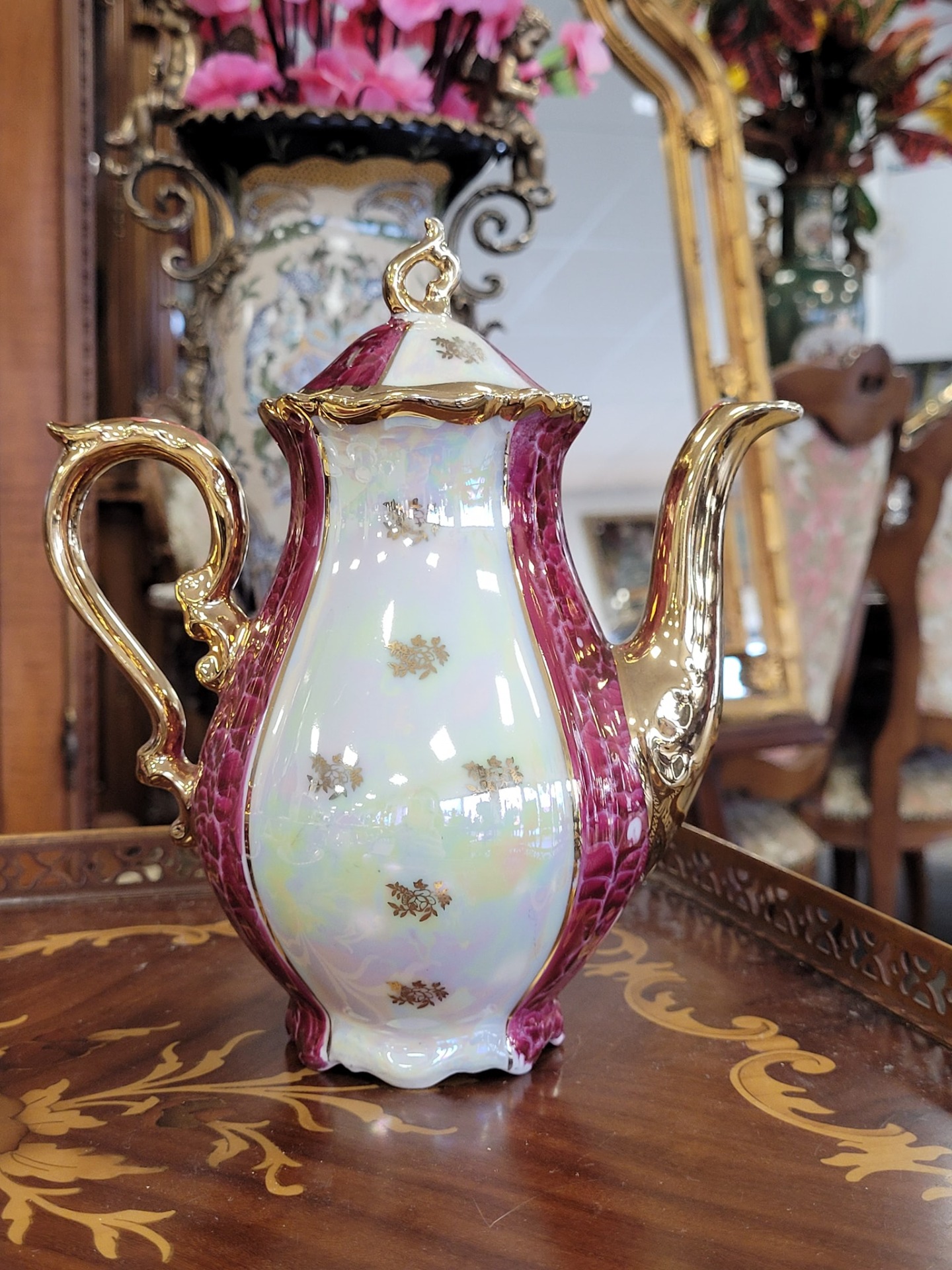 Set de cafea din porțelan Bavaria, compus din 11 piese, de colecție, model Fragonard, finisaj aurit, remarcabil prin finețea detaliilor și eleganța stilului baroc/rococo.