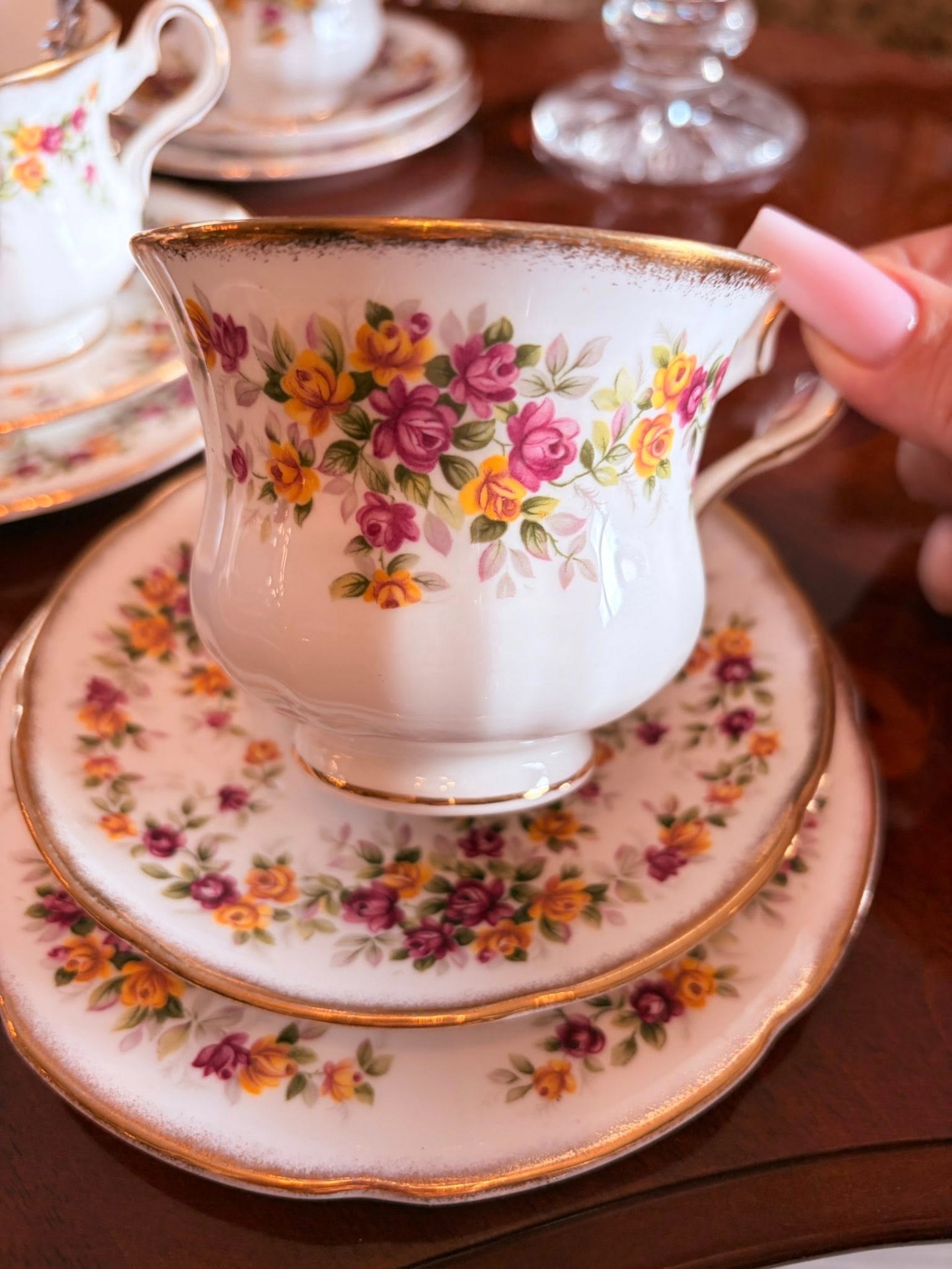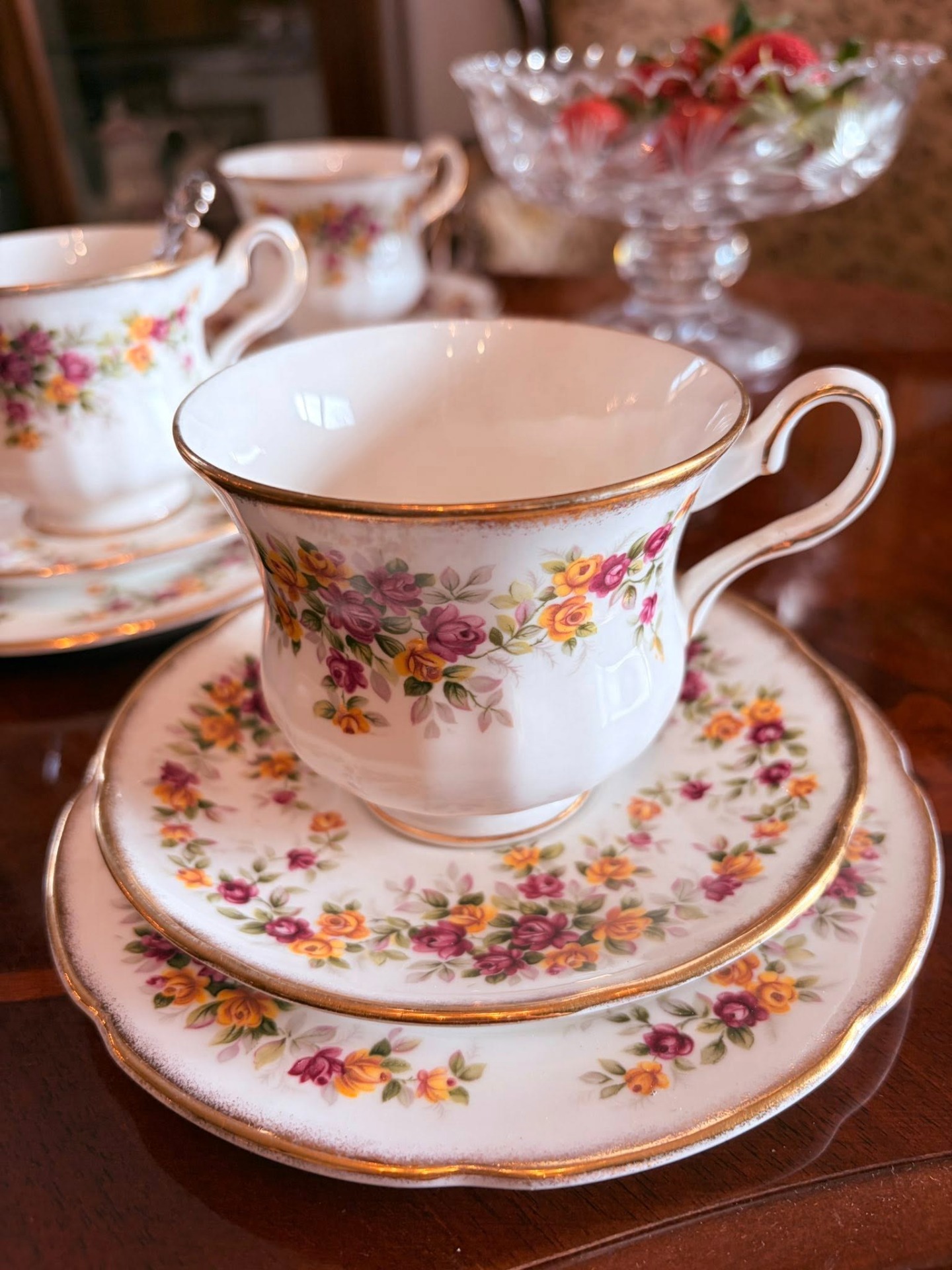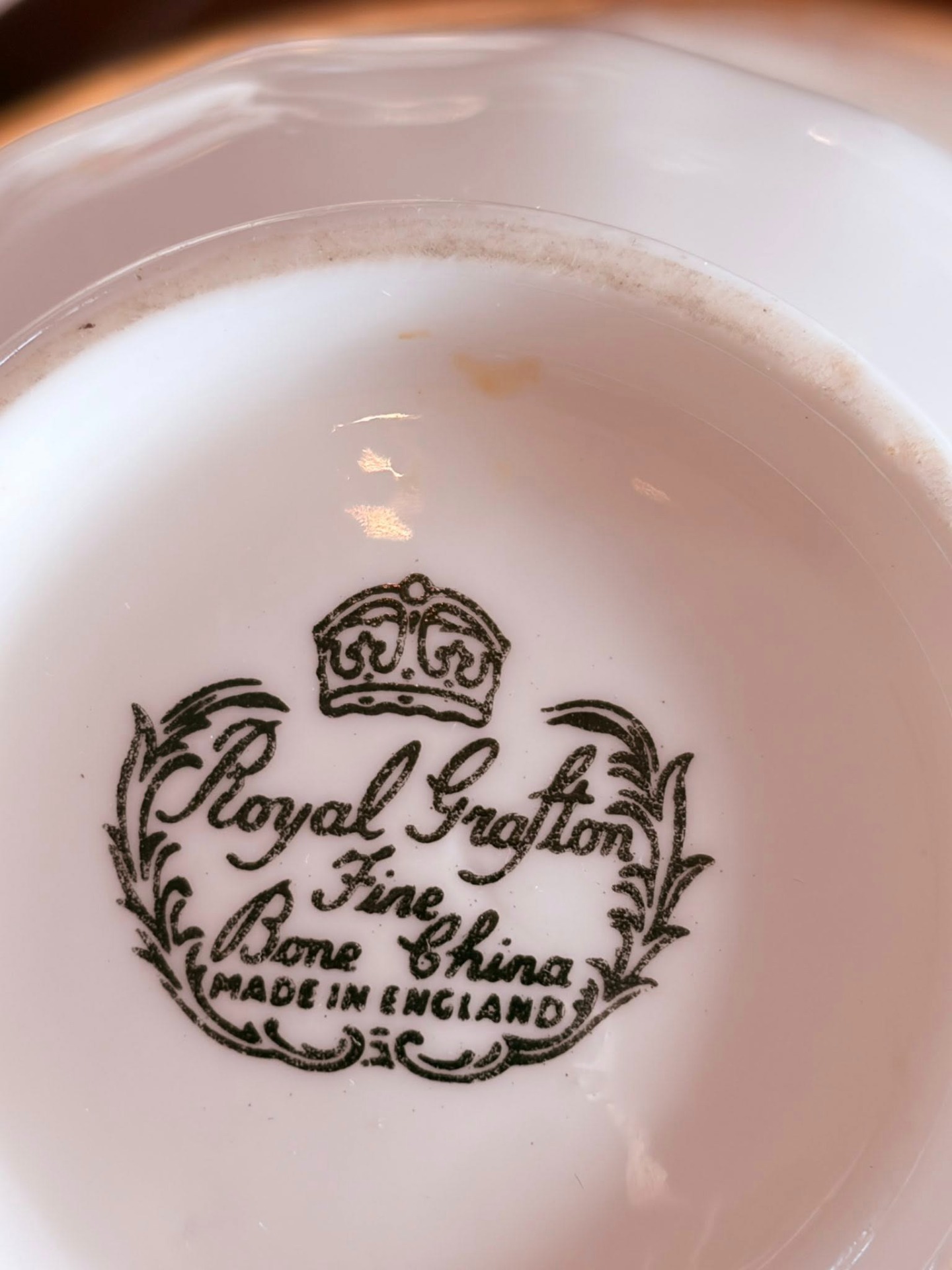*Royal Grafton*, marcajul indicând producția în *Anglia*, din *porțelan fin „bone china”*, un material de calitate superioară. Brandul a fost fondat în *1900* de firma *A.B. Jones & Sons Ltd.*, în Longton, Staffordshire — o zonă faimoasă pentru producția de porțelan englezesc.