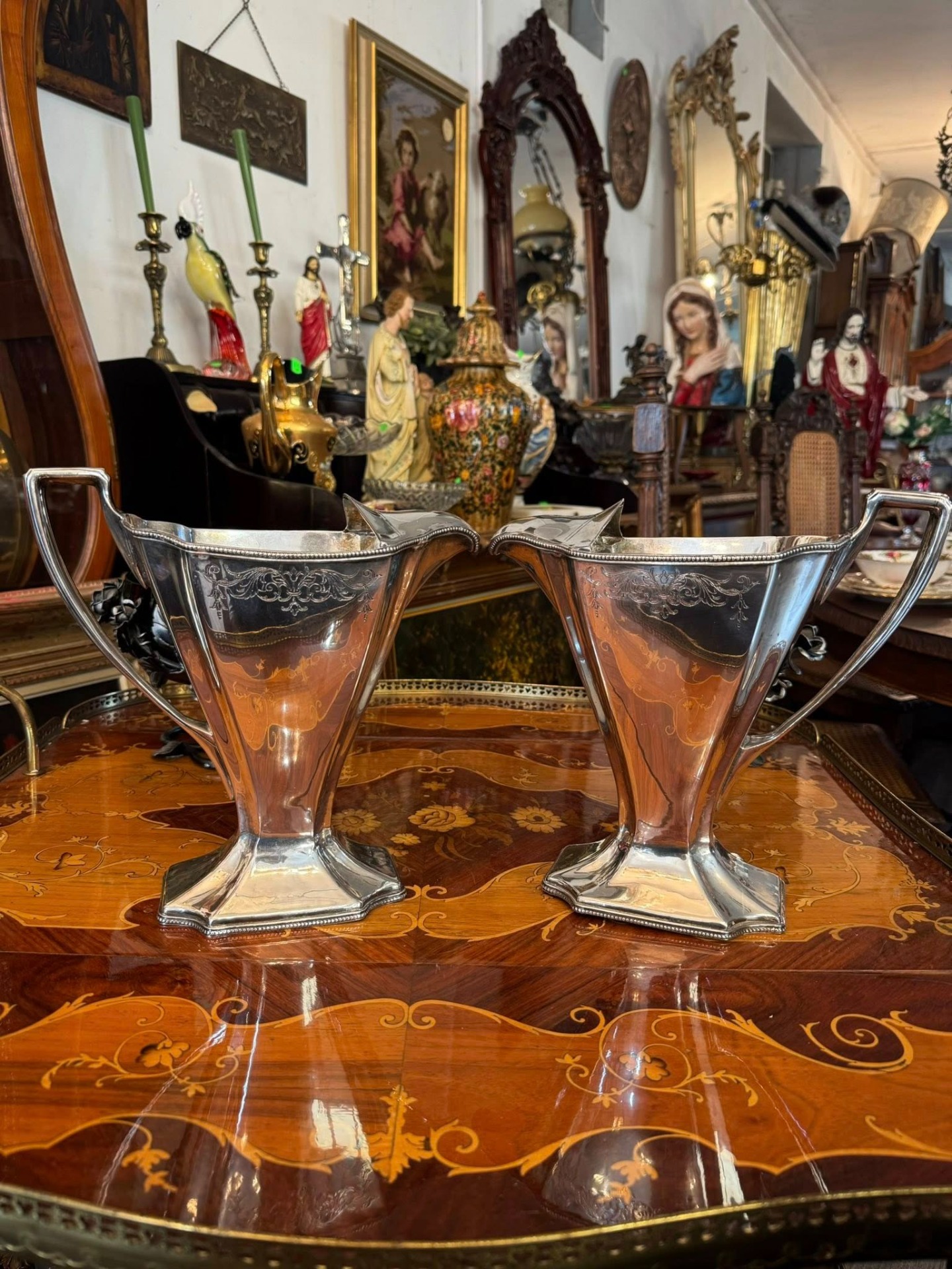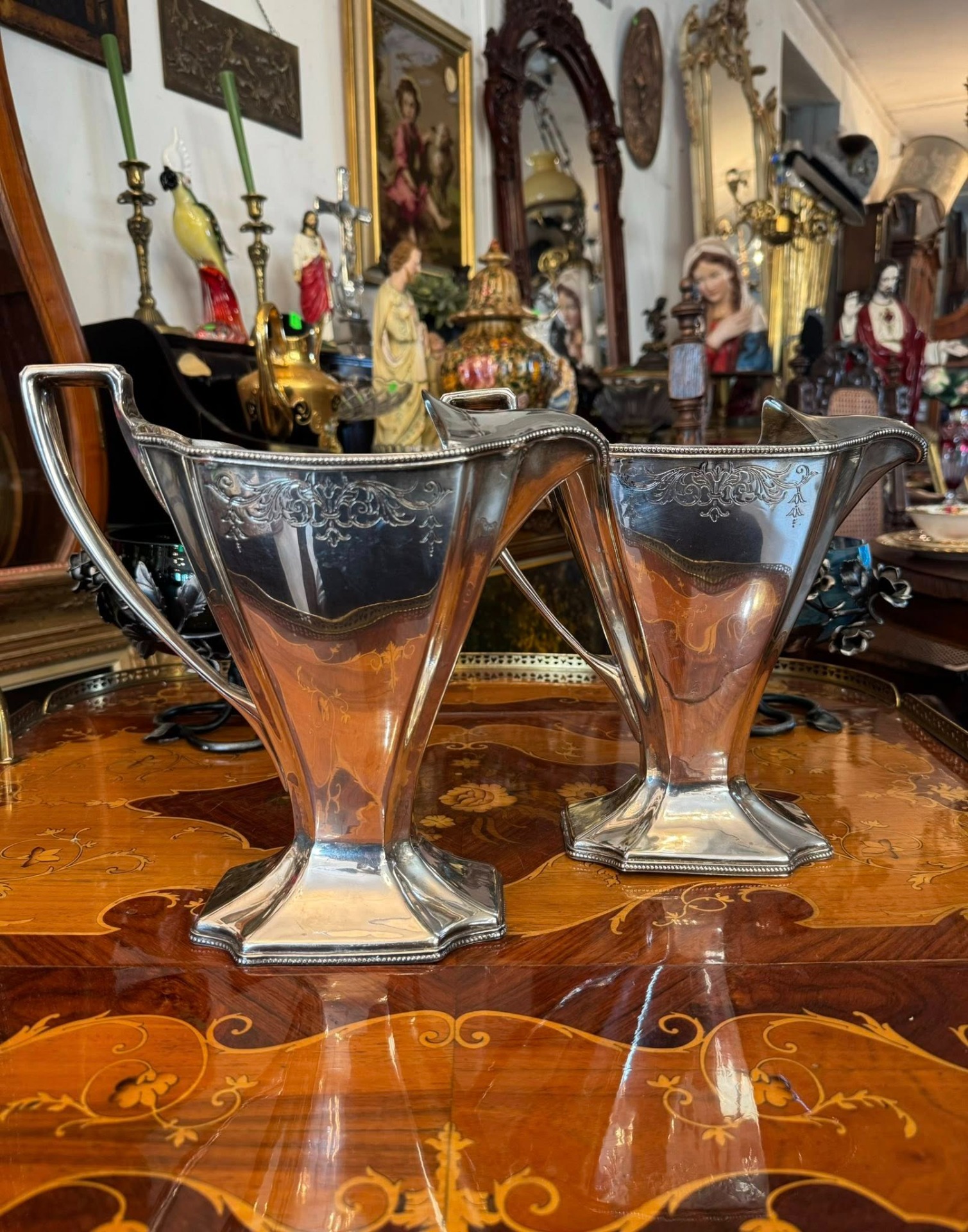 Set de carafe argintate „Royal Castle Sheffield” pentru servire, realizate în stil Neo-Clasic. (Anglia, cca 1920)