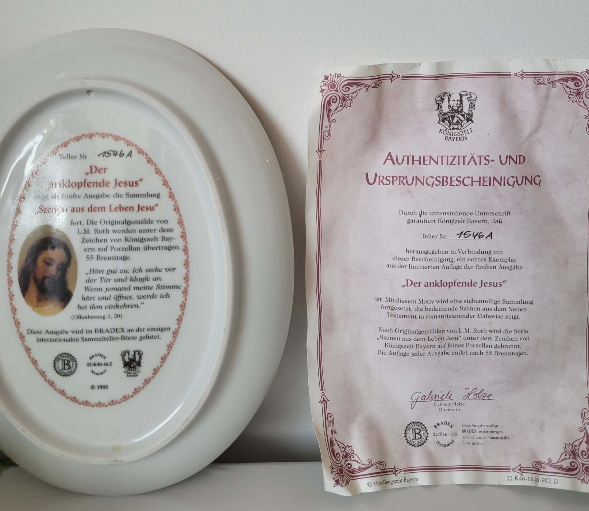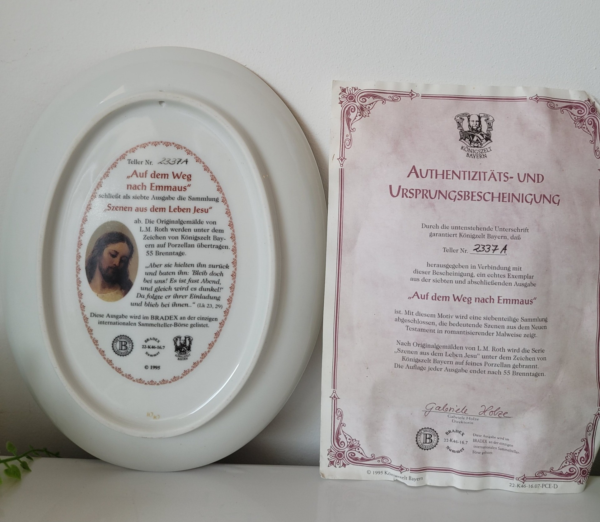 Set de cinci farfurii decorative din porțelan Bavaria, de colecție, în serie limitată, ilustrând diferite scene biblice cu Isus Hristos (1995, Germania).