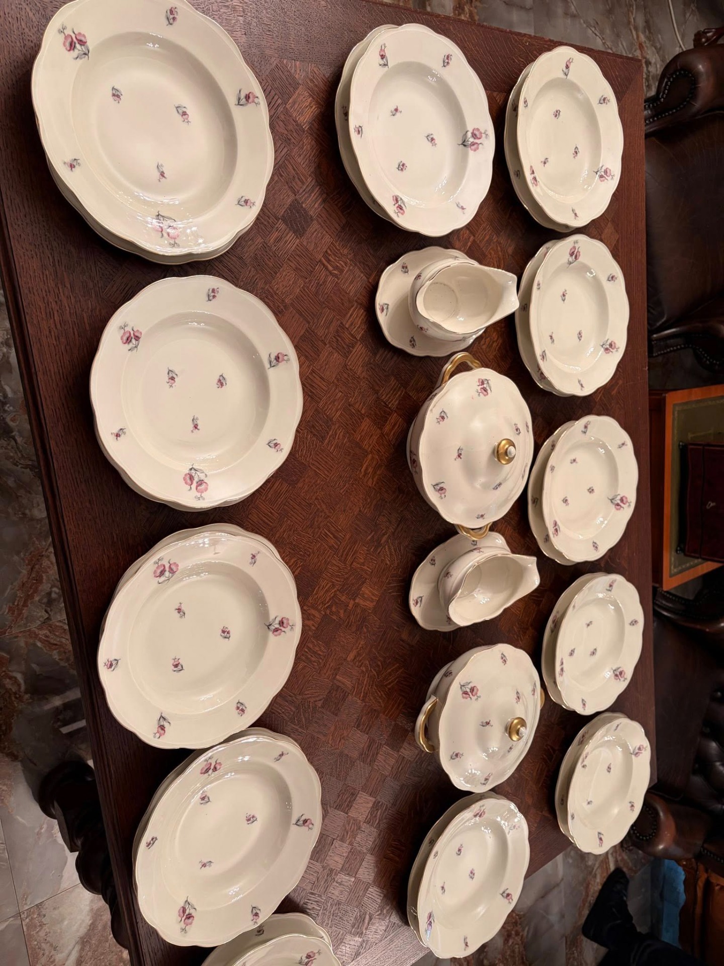 Set de masa pentru 12 perosane Krister Porzellan-Manufaktur (Fabrica de Porțelan Krister), care se afla în Waldenburg, Silezia.