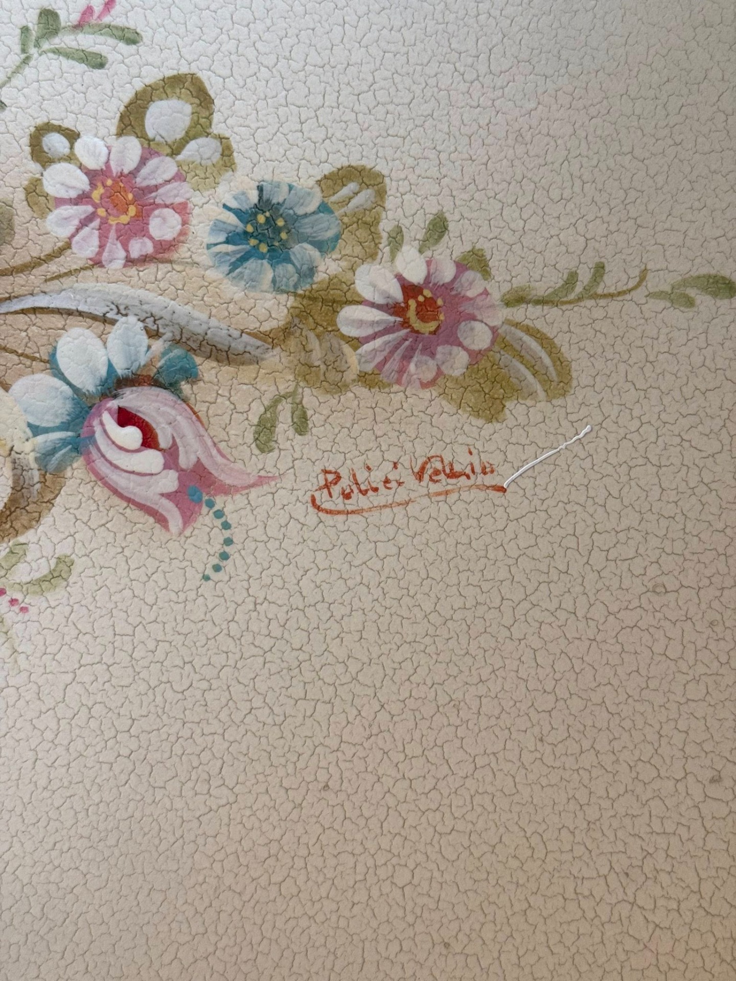 Tehnica "Craquelé": Suprafața prezintă un finisaj cu rețea de crăpături fine, creat intenționat pentru a oferi un aspect de antichitate.