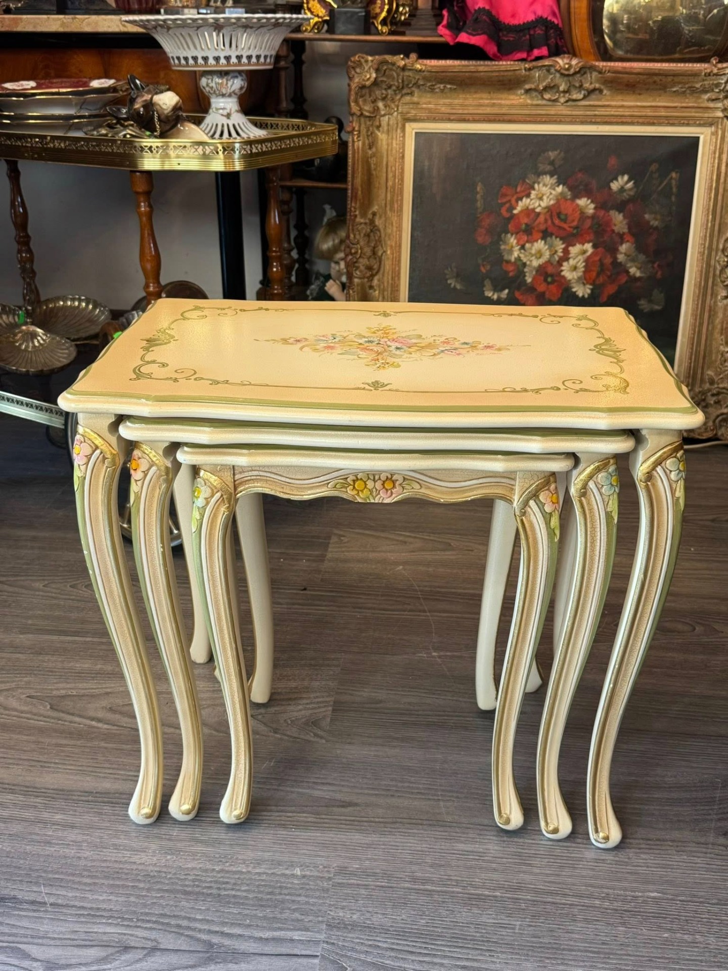 Set de măsuțe suprapuse, realizate în stilul Rococo Venezian. (cca 1950, Italia)