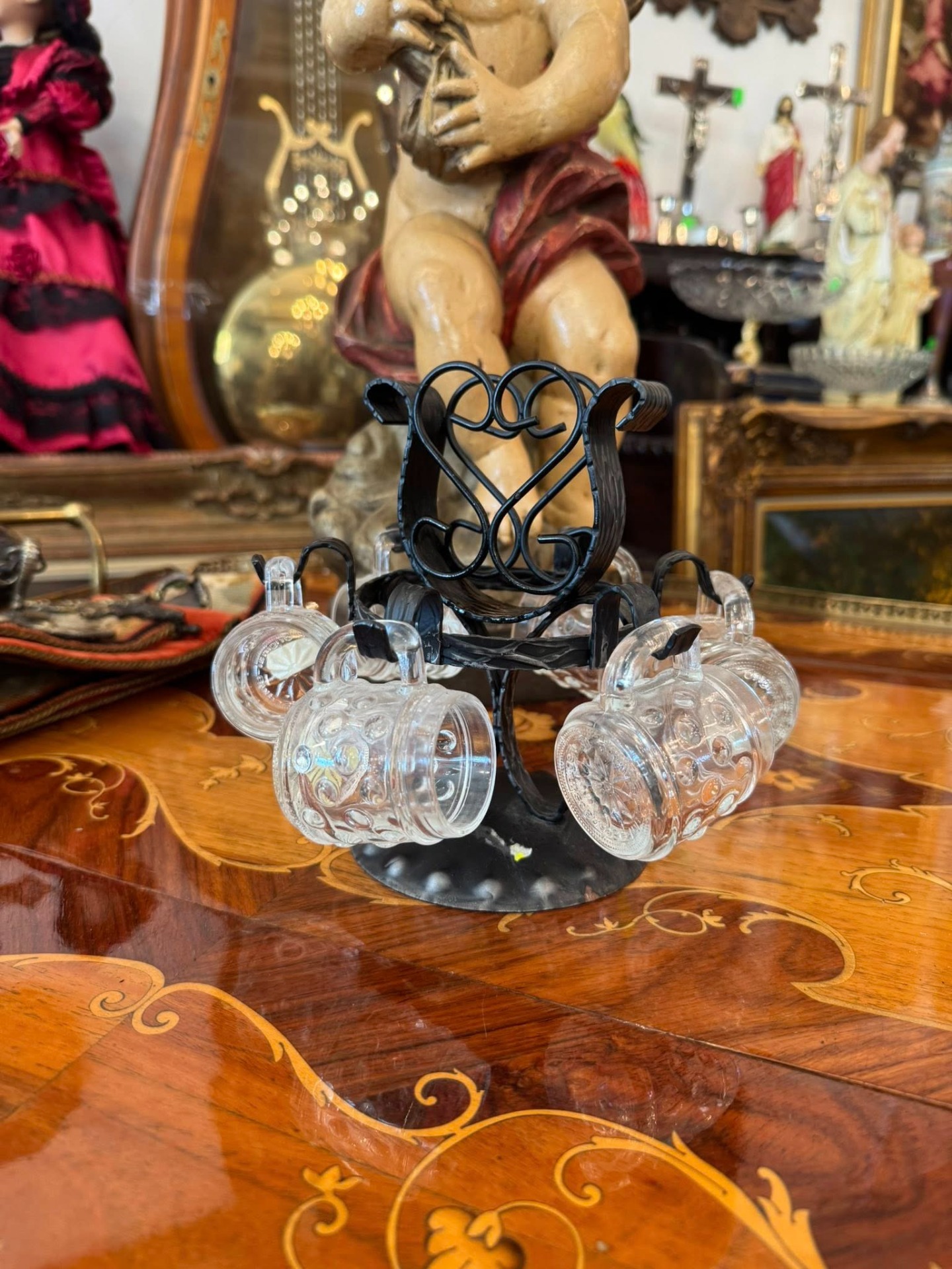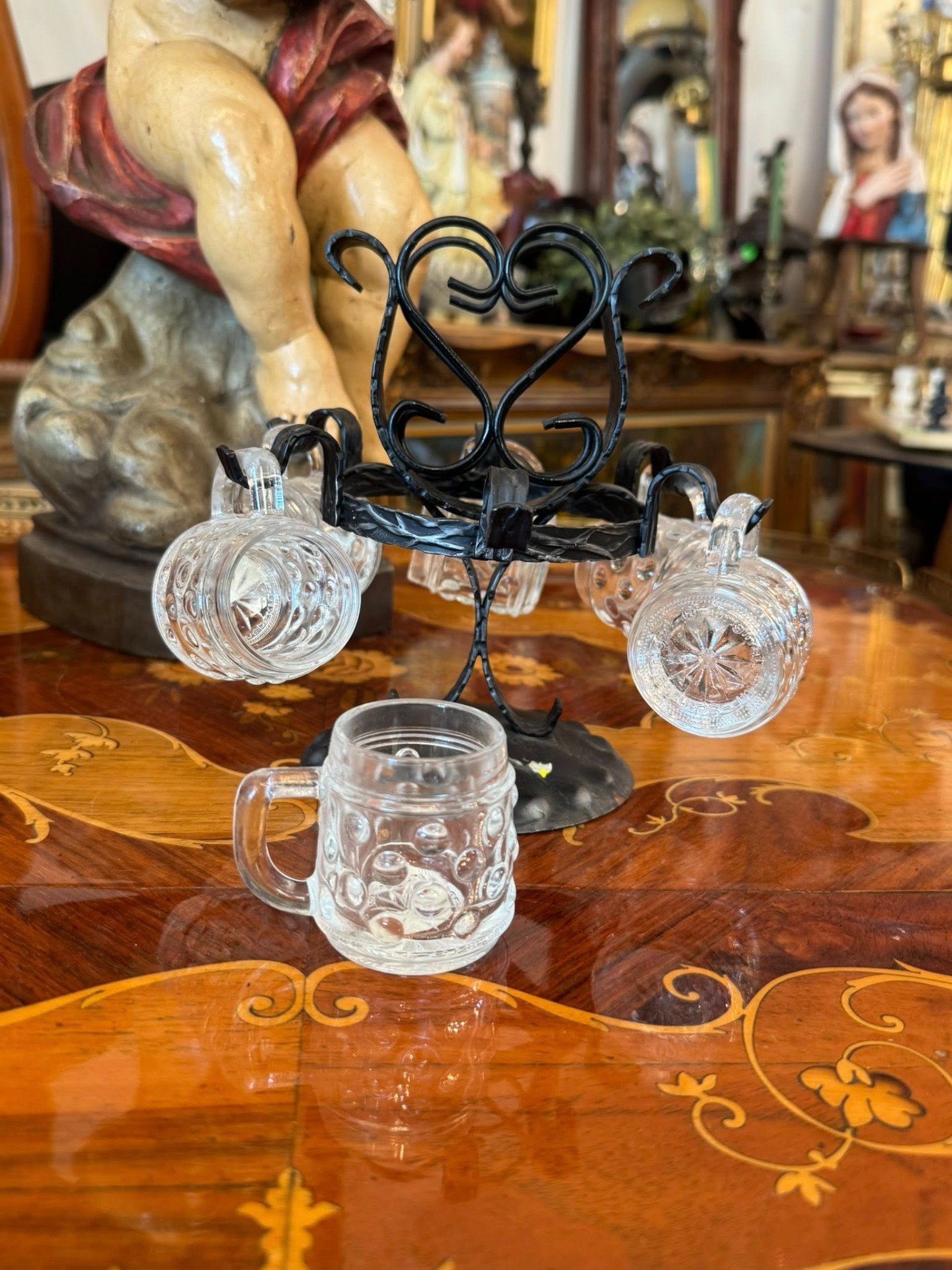 Set de mini-halbe cu suport (Schnapskrügerl). Este tradițional pentru servirea băuturilor spirtoase tari (precum schnaps-ul), fiind foarte popular în cultura germanică. (cca 1960)