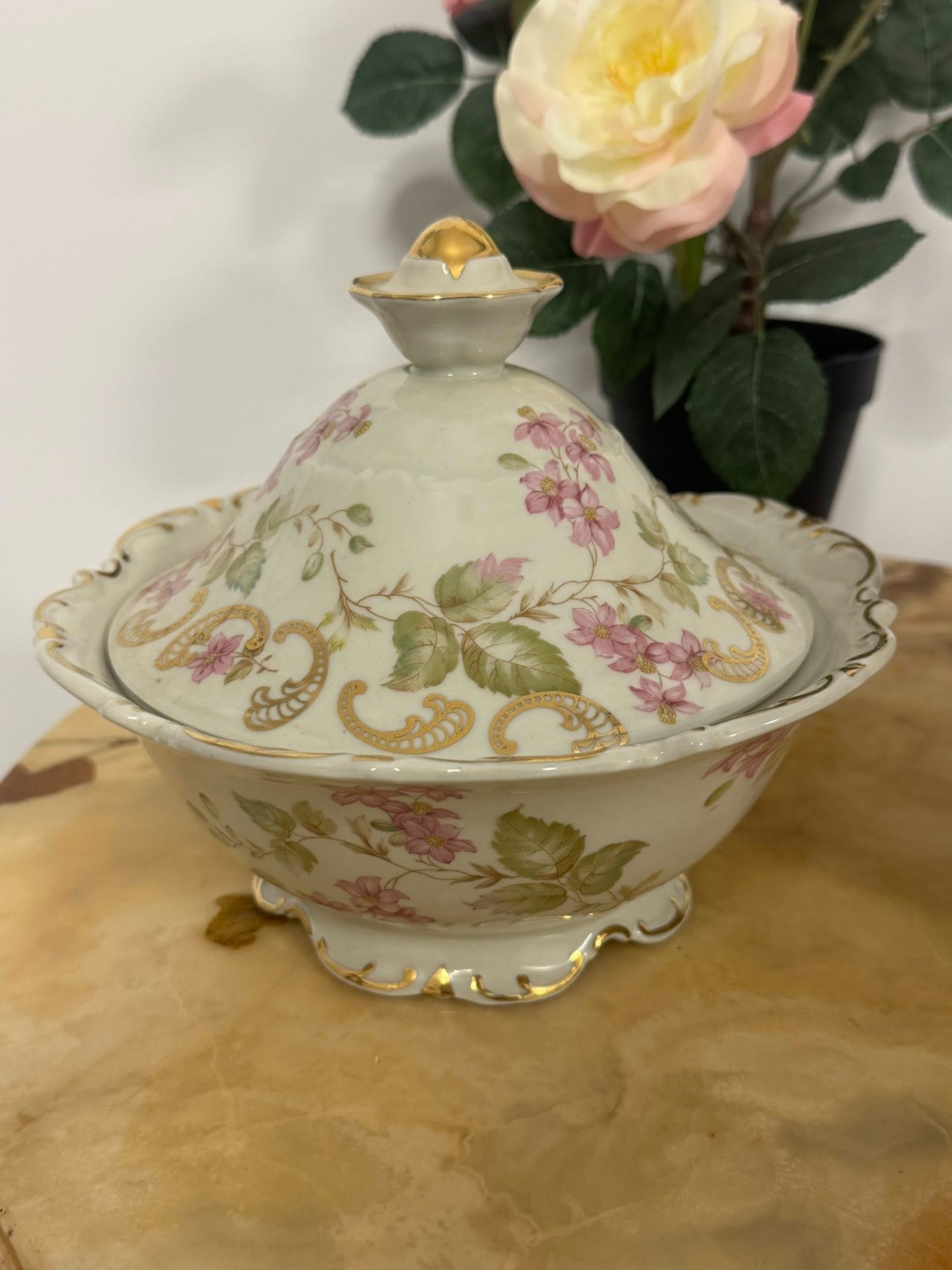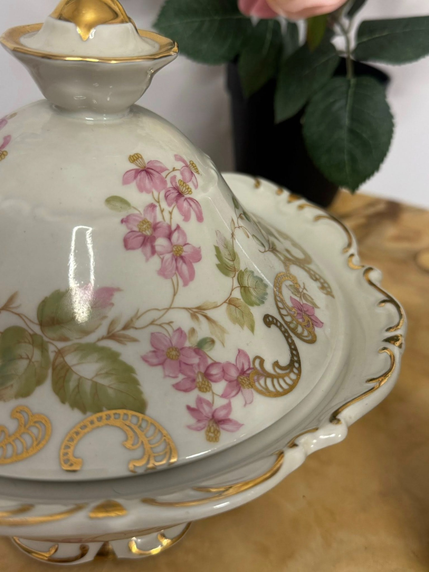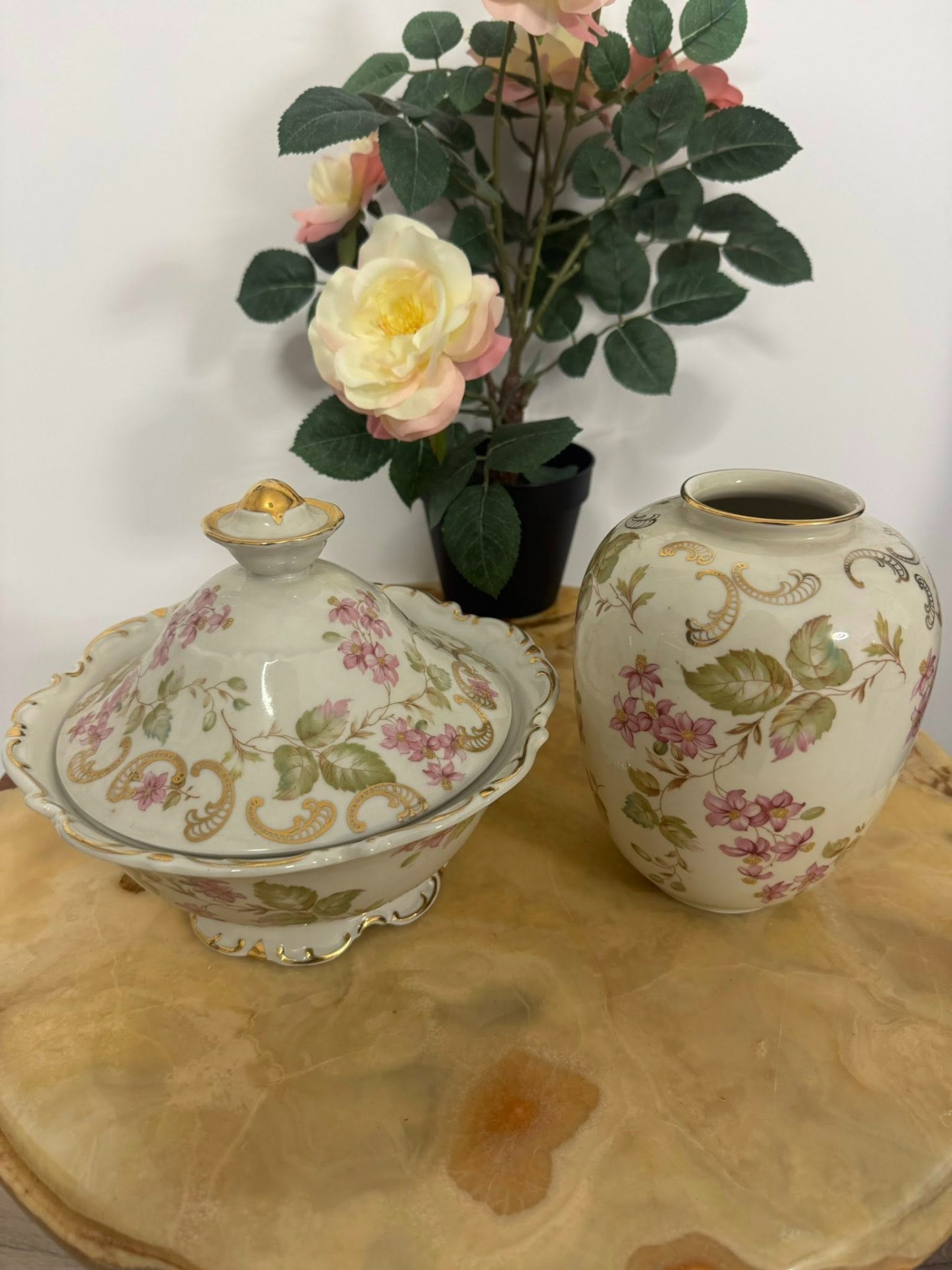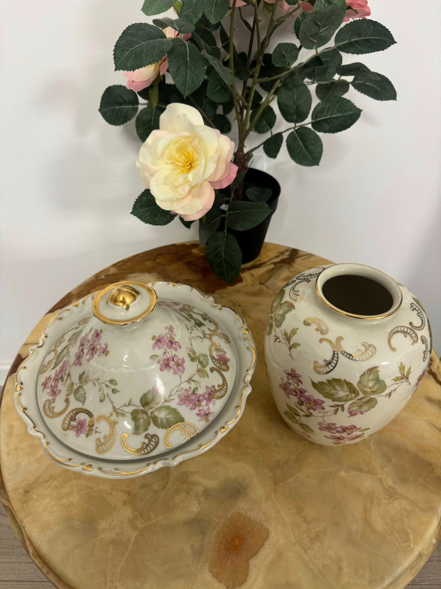 Set de porțelan Bavaria deosebit, cu un aspect romantic, ideal pentru a adăuga o notă de eleganță unei încăperi. (cca 1950)