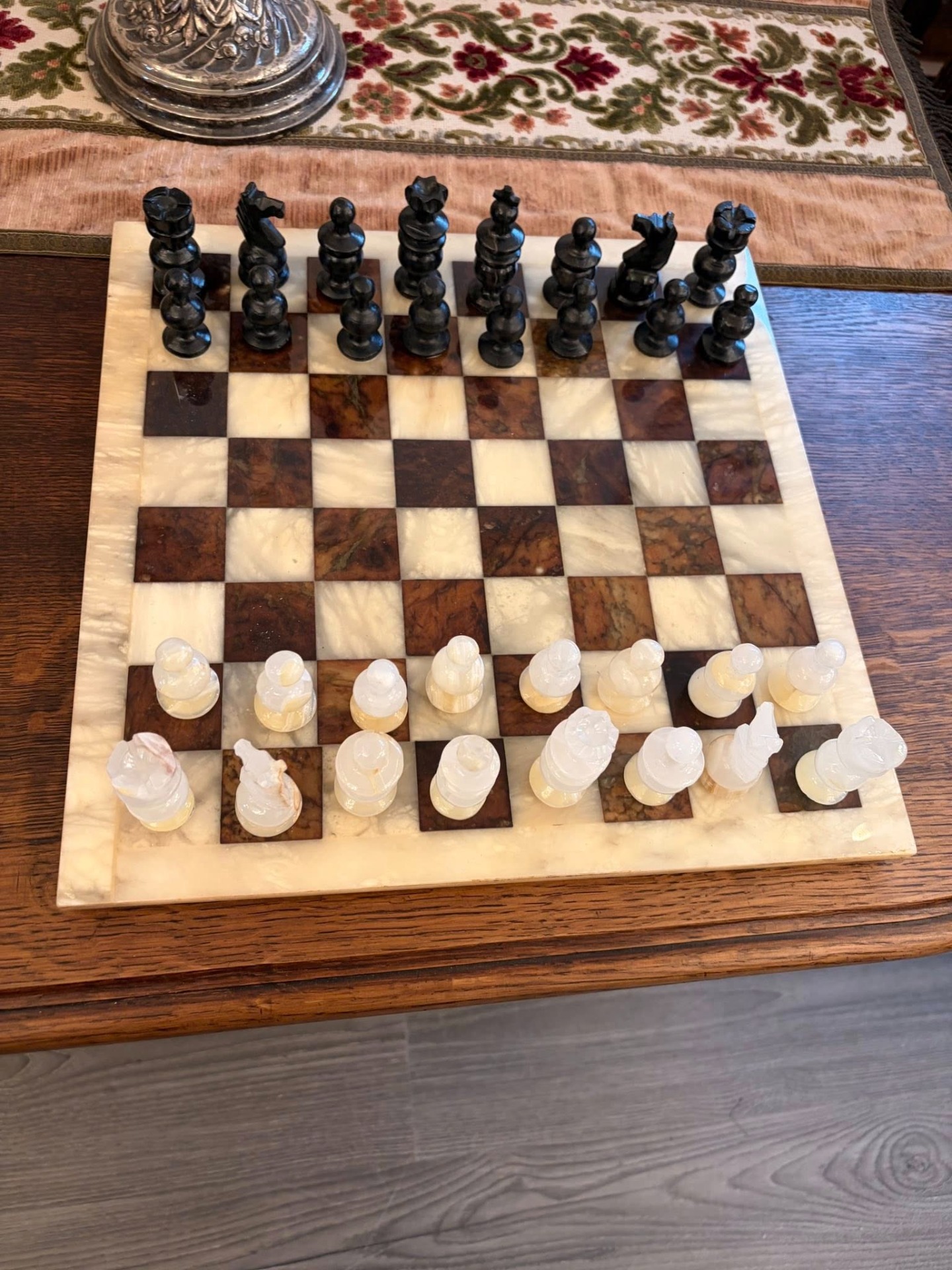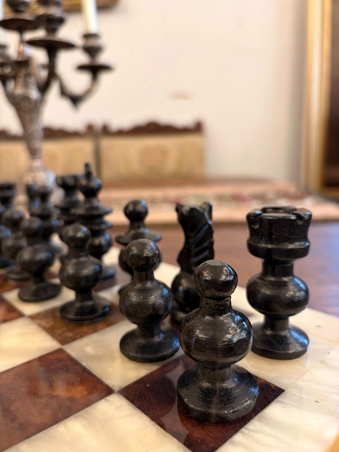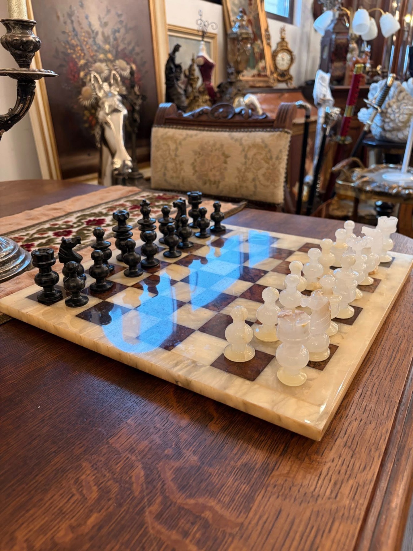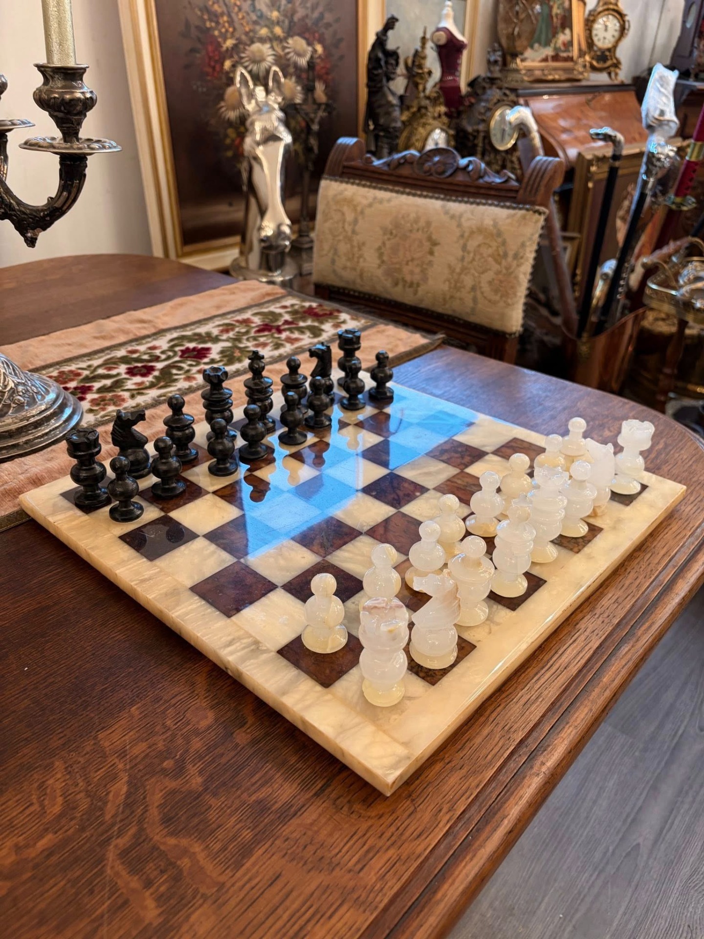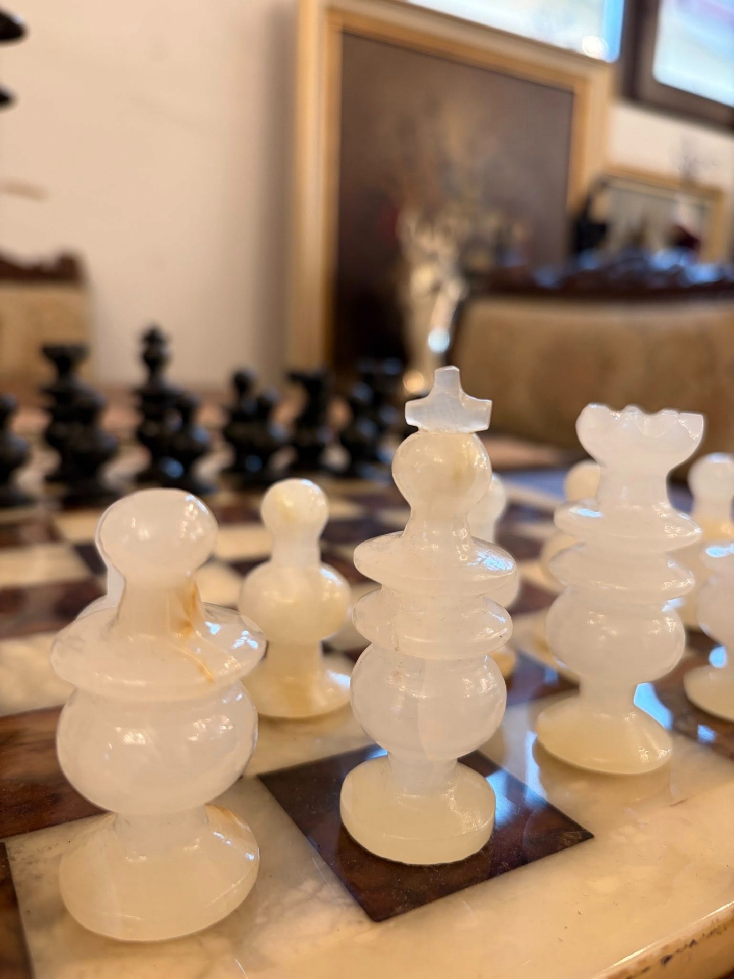 Set de șah din piatră naturală (onyx/marmură) – elegant, decorativ