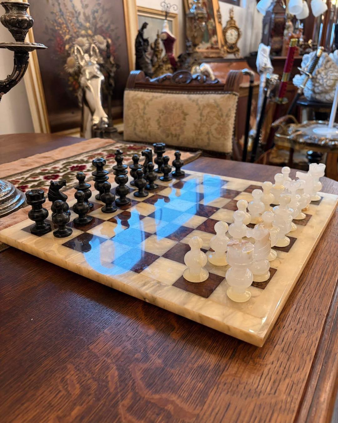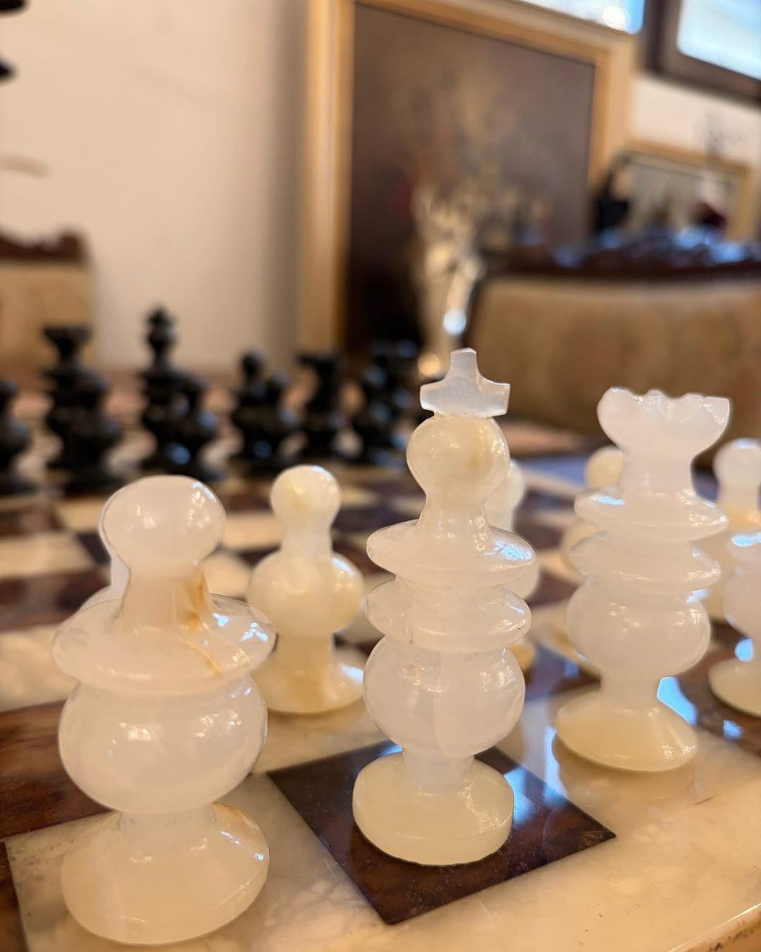 Set de șah din piatră naturală (onyx/marmură) – elegant, decorativ