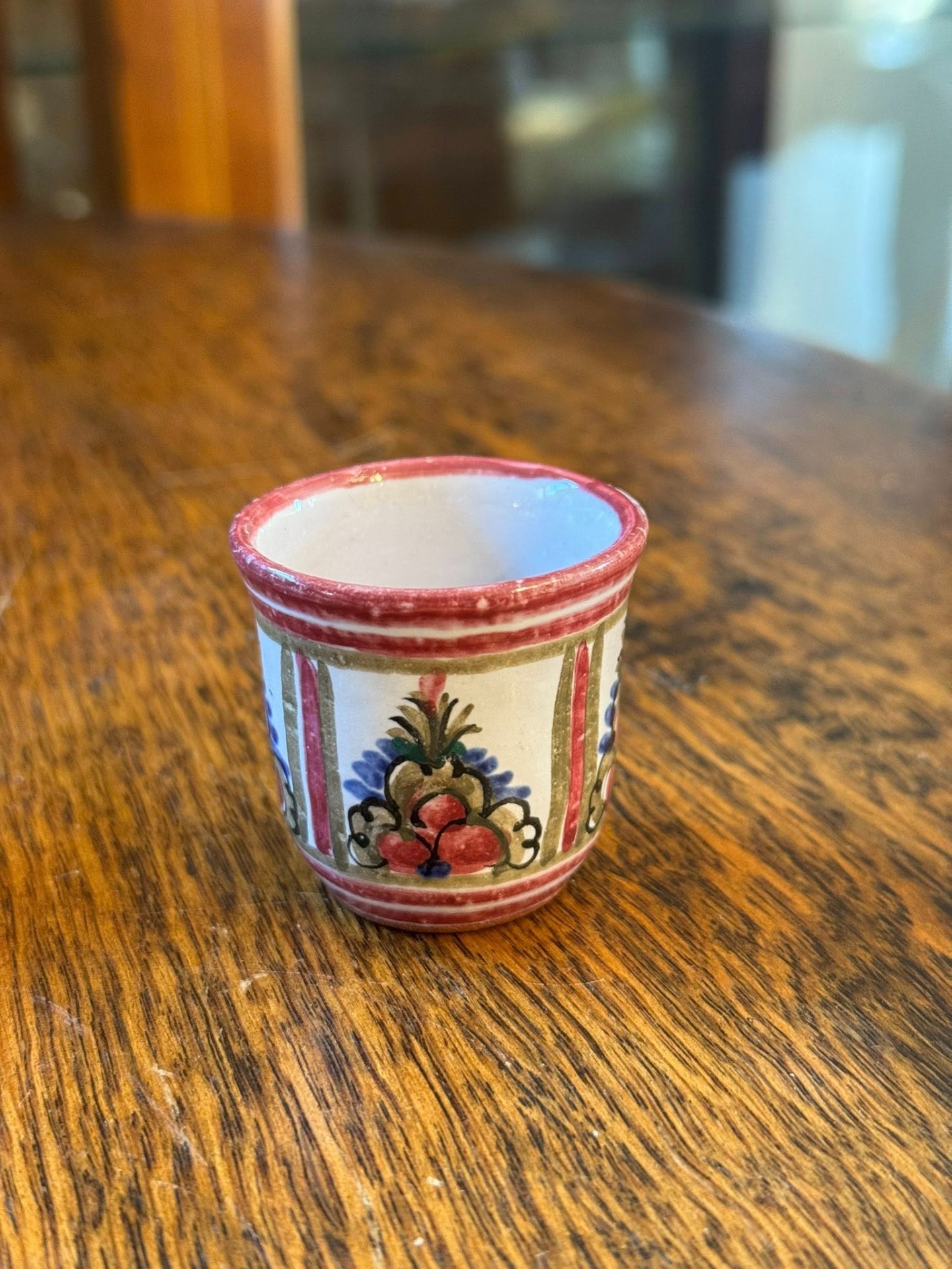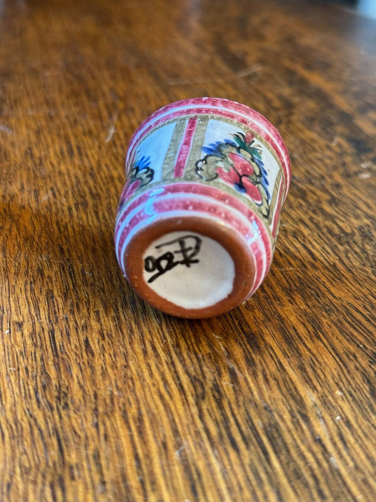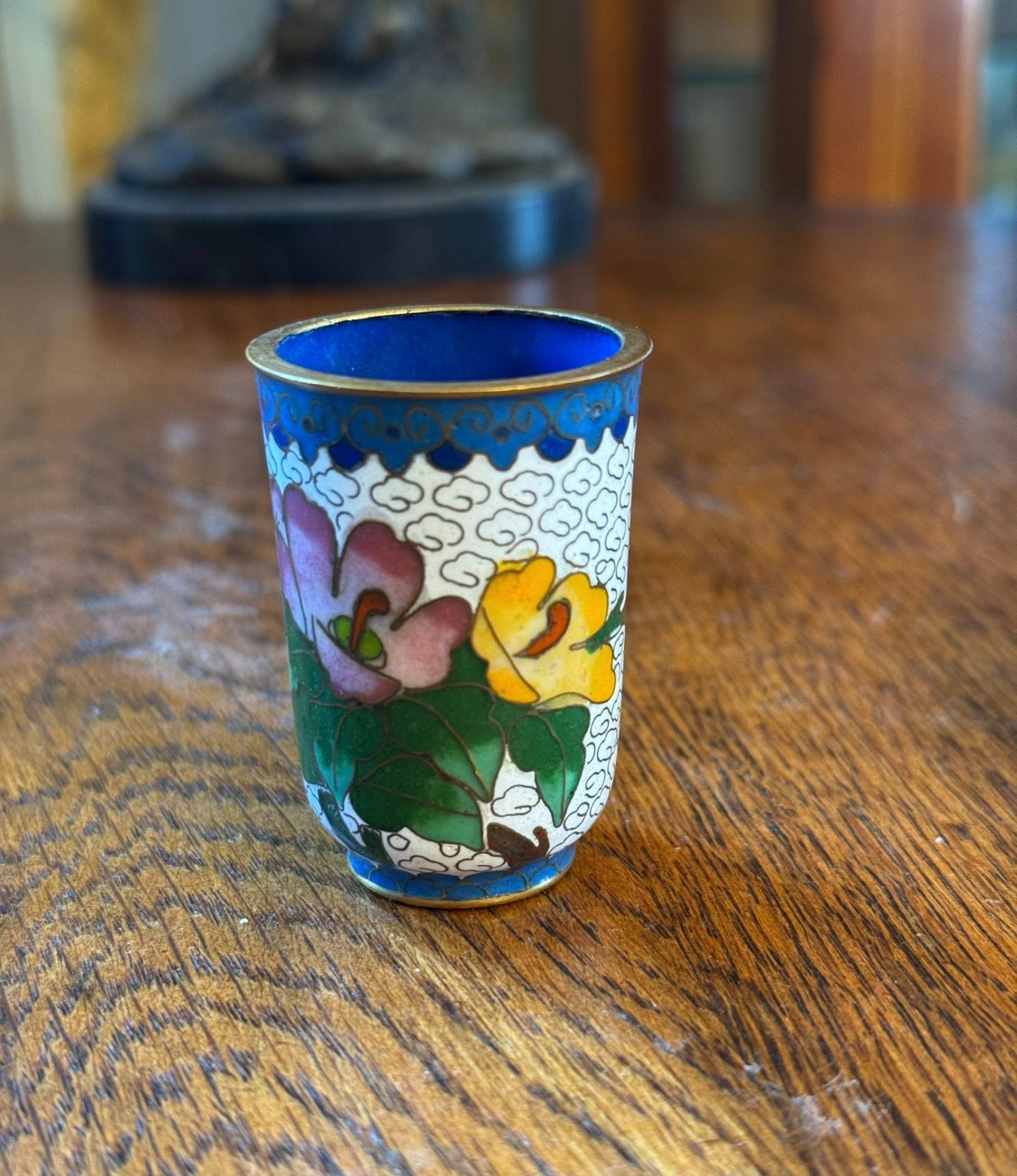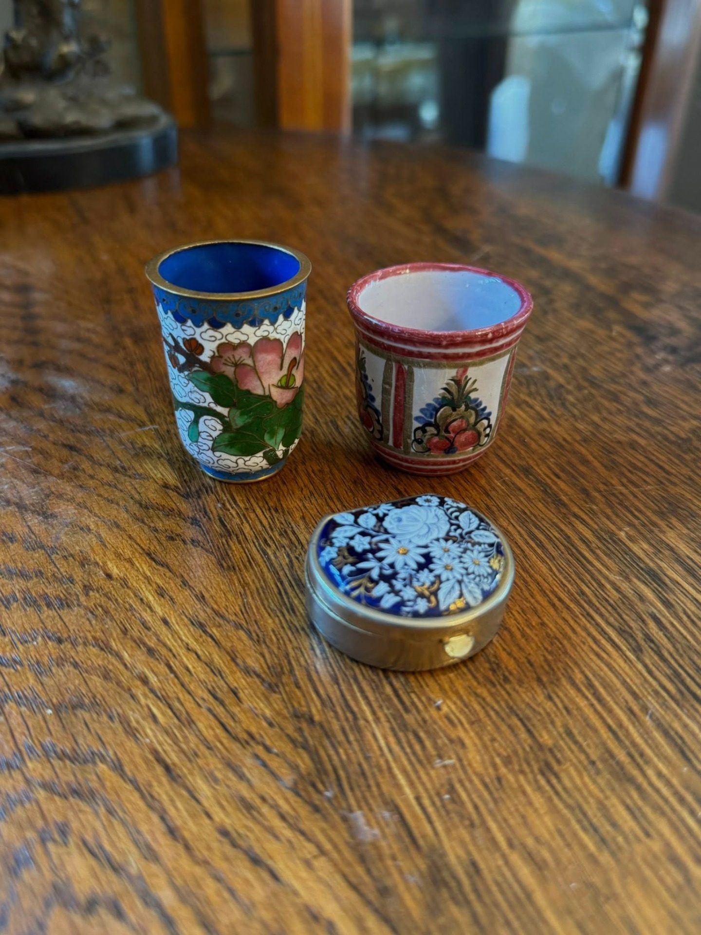 Set decorativ format din:păhărel din email Cloisonné; păhărel din porțelan pictat și mini cutiuța(pentru pastile (pill box) sau pentru bijuterii mici)