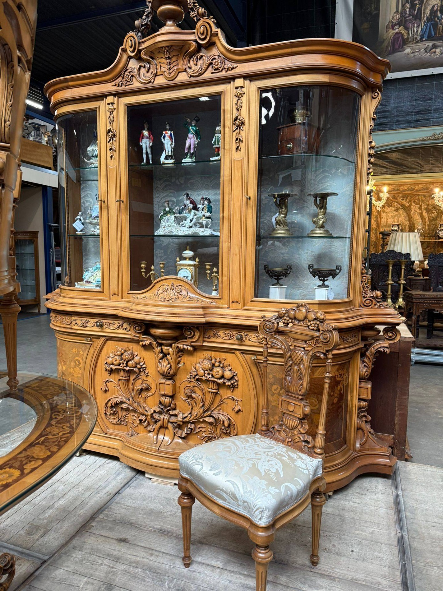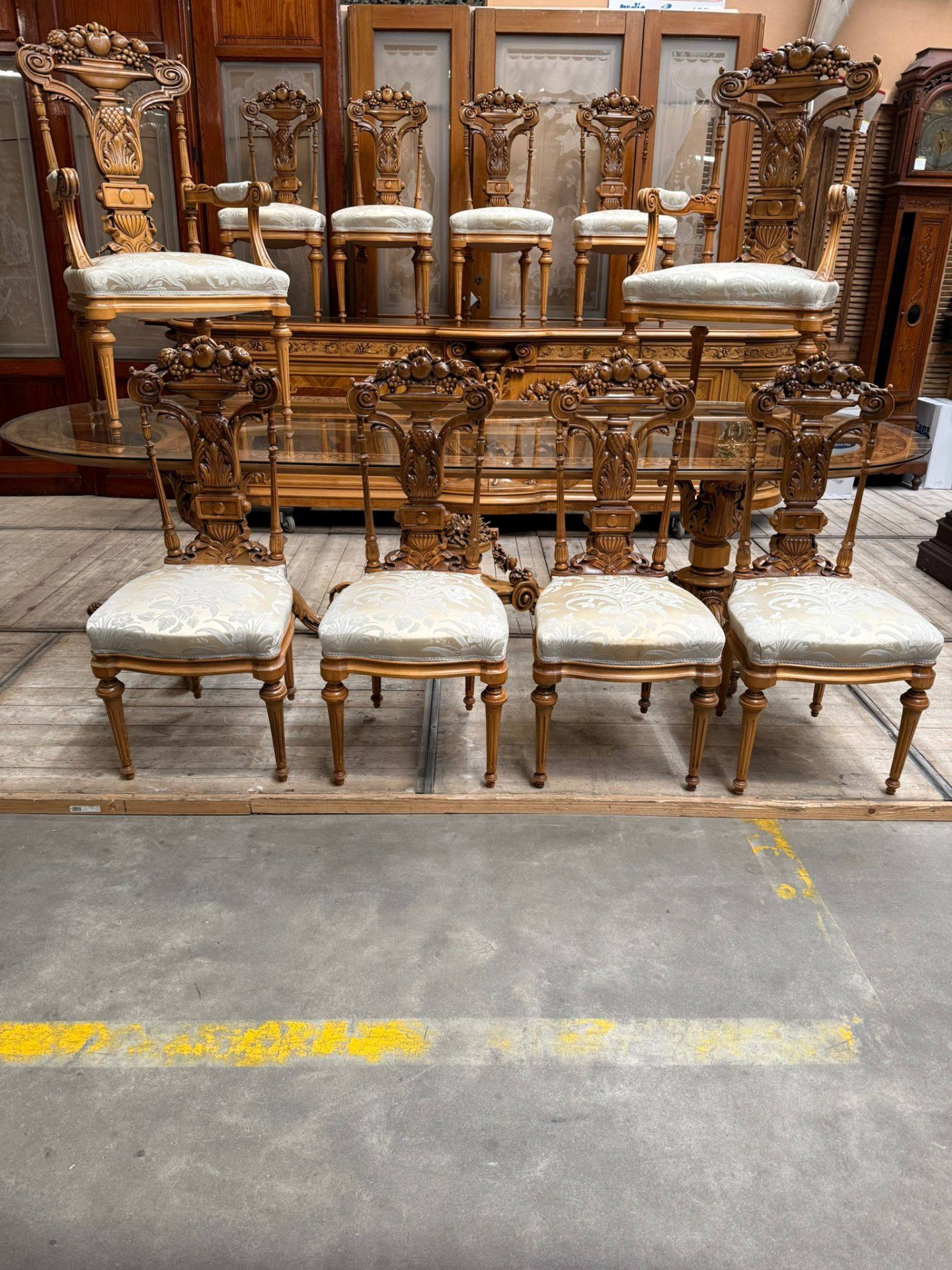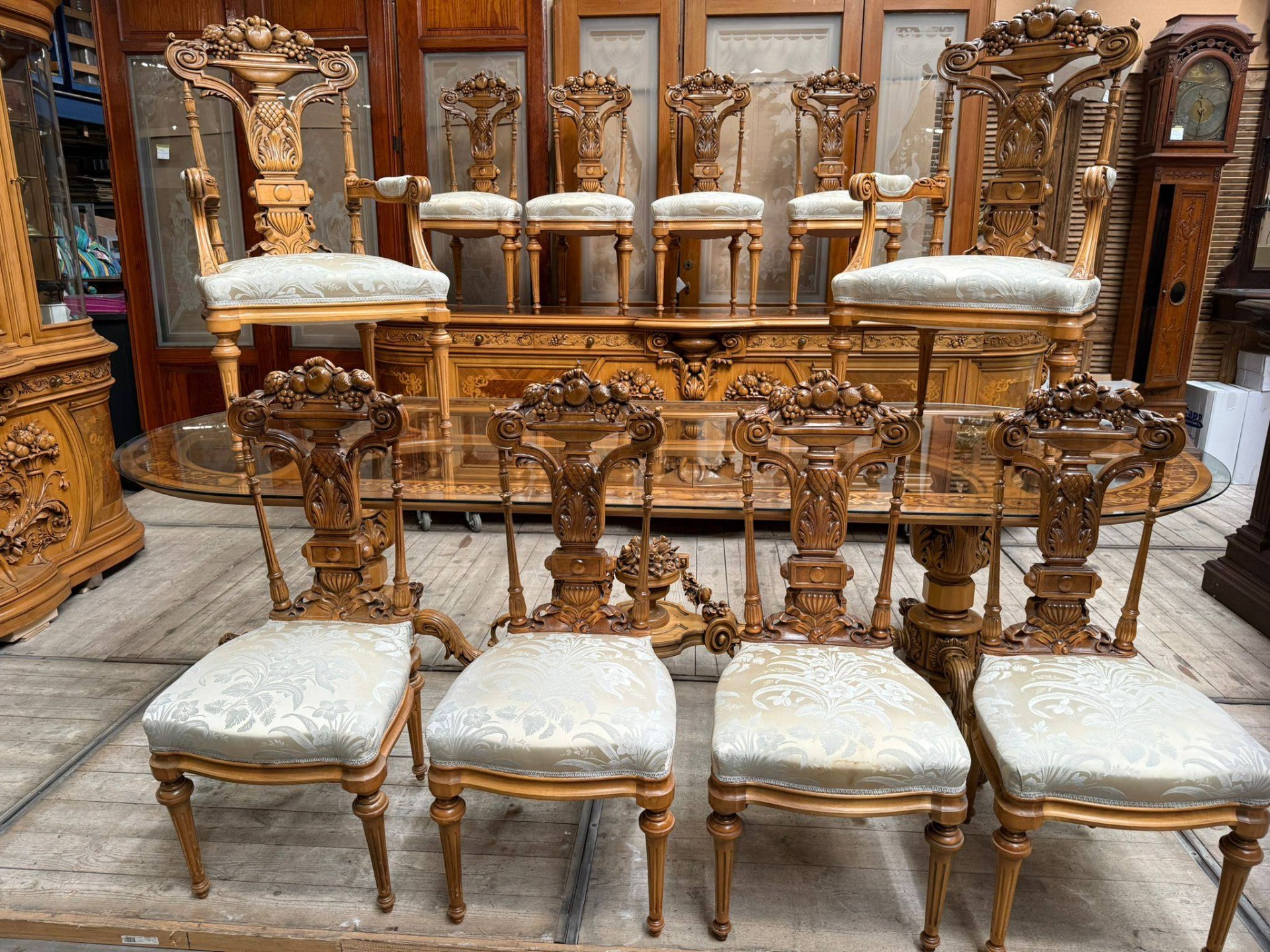 Un set de dining spectaculos, realizat în stil clasic elegant, cu influențe franțuzești (Louis XV), ideal pentru iubitorii de mobilier deosebit și rafinat.
