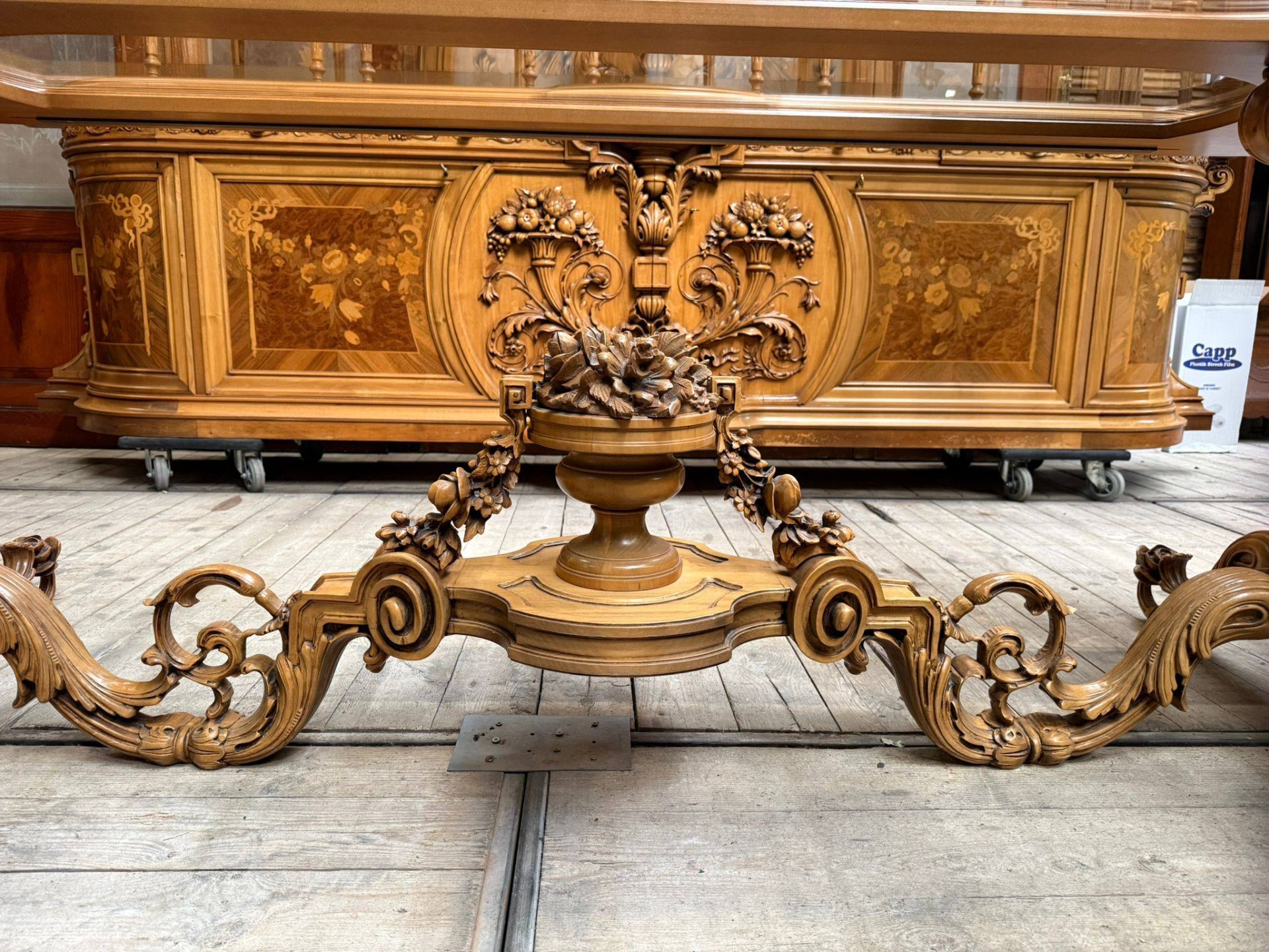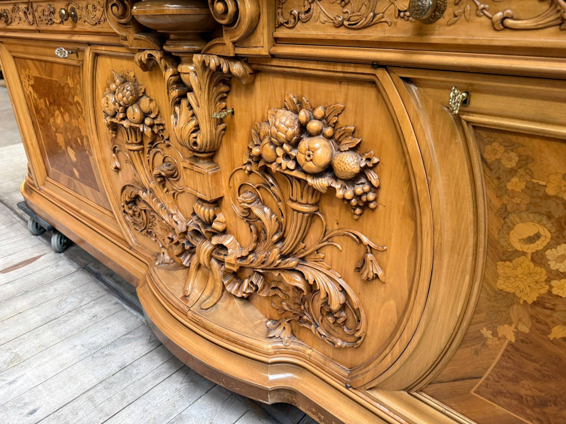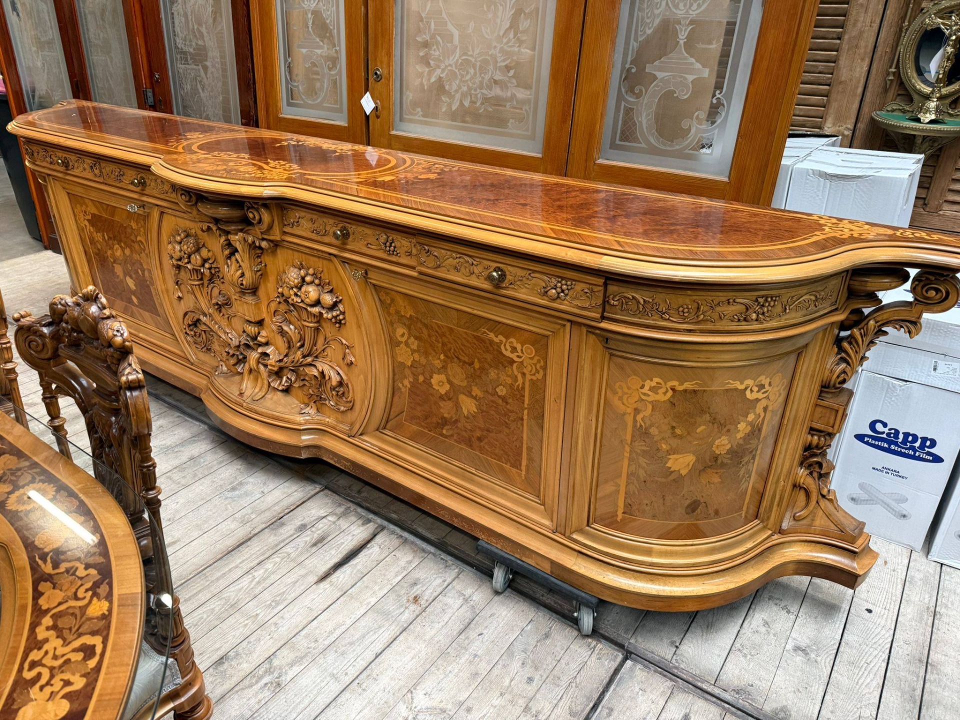 Bufet / comodă mare cu intarsii și sculpturi impresionante