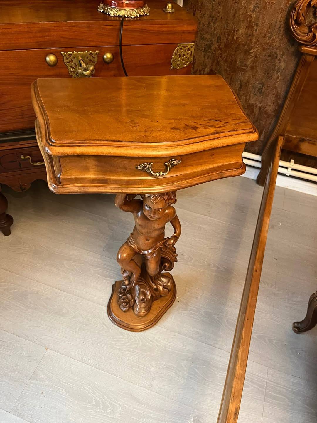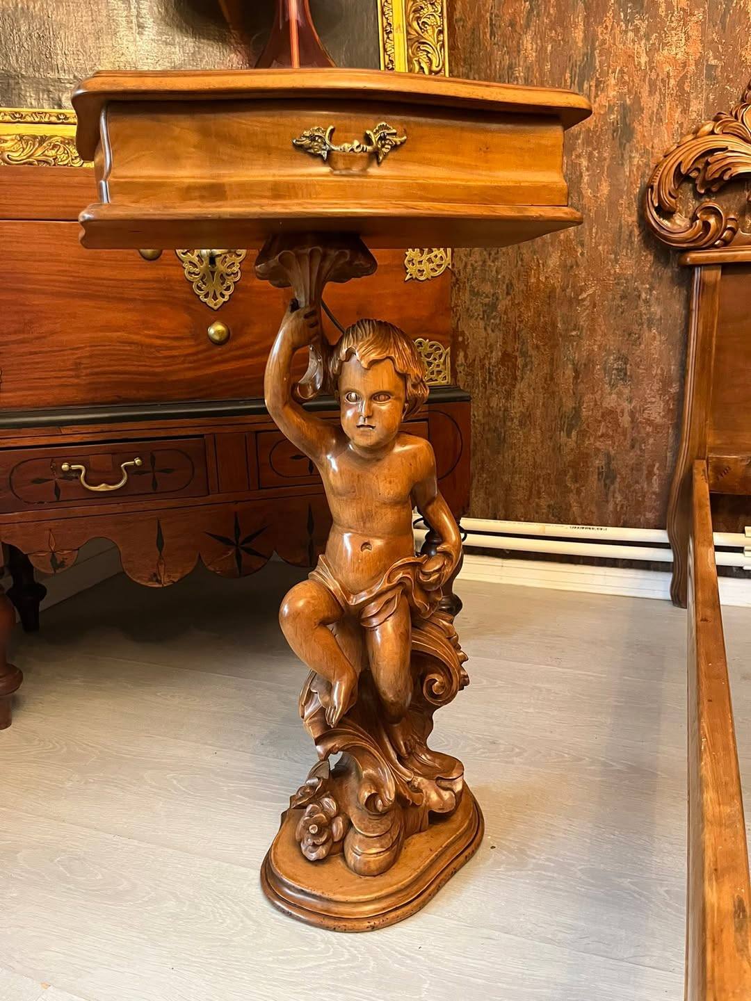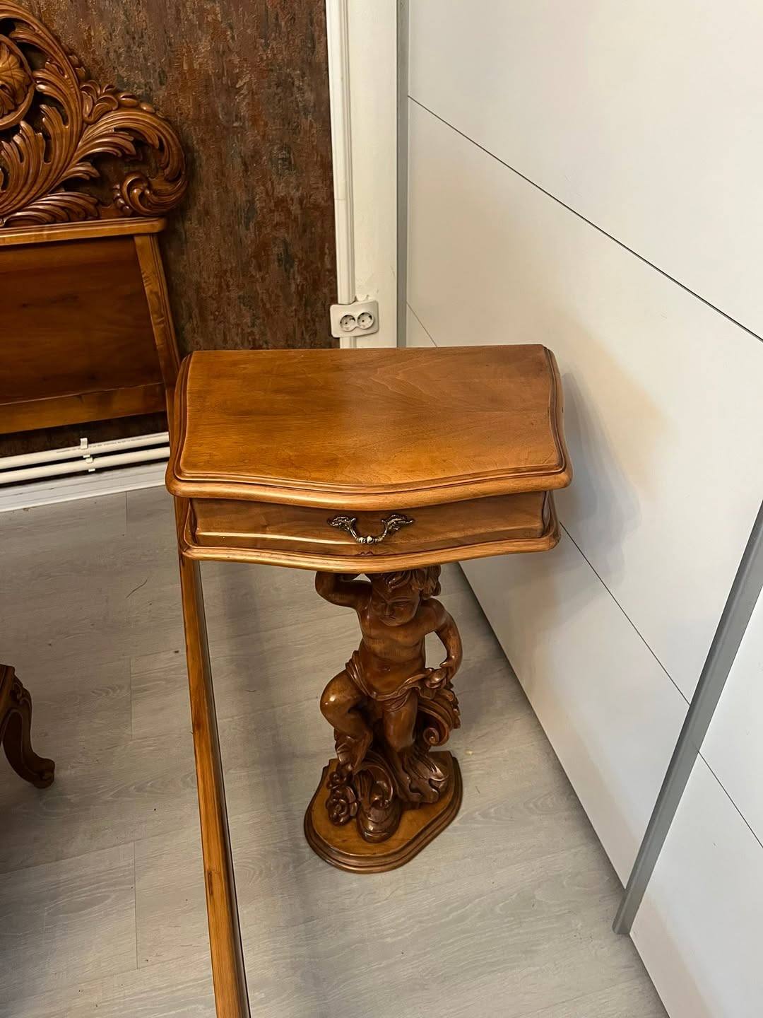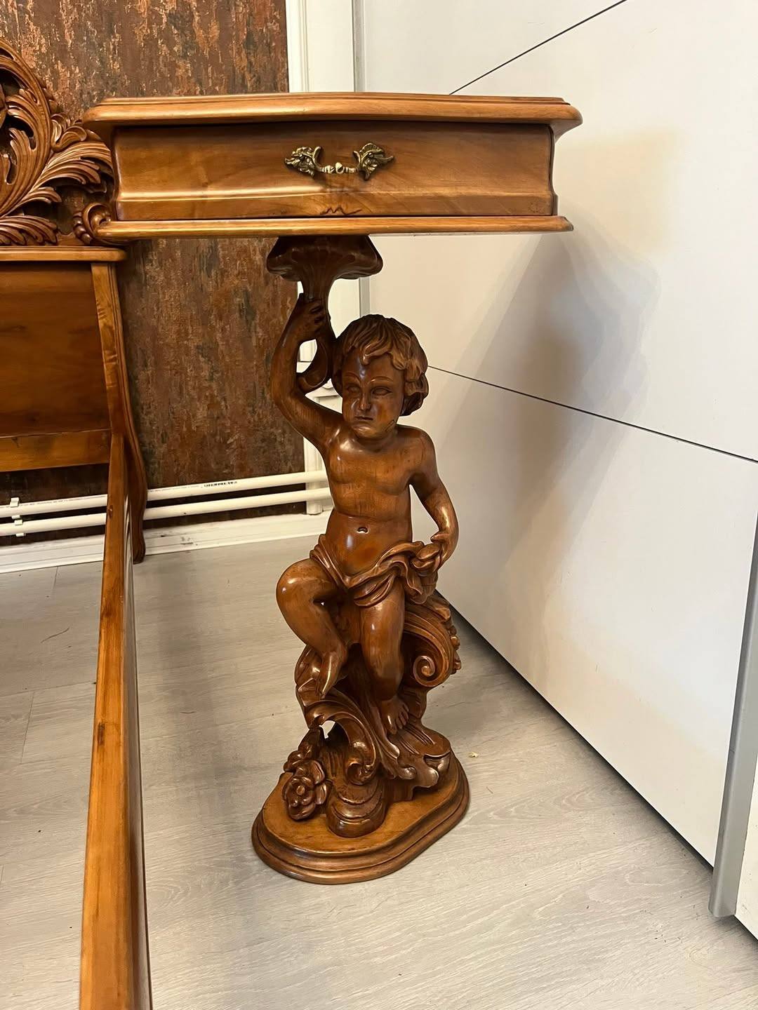 Două noptiere unice, fiecare susținută de o sculptură reprezentând un înger / putto, lucrată cu mare migală