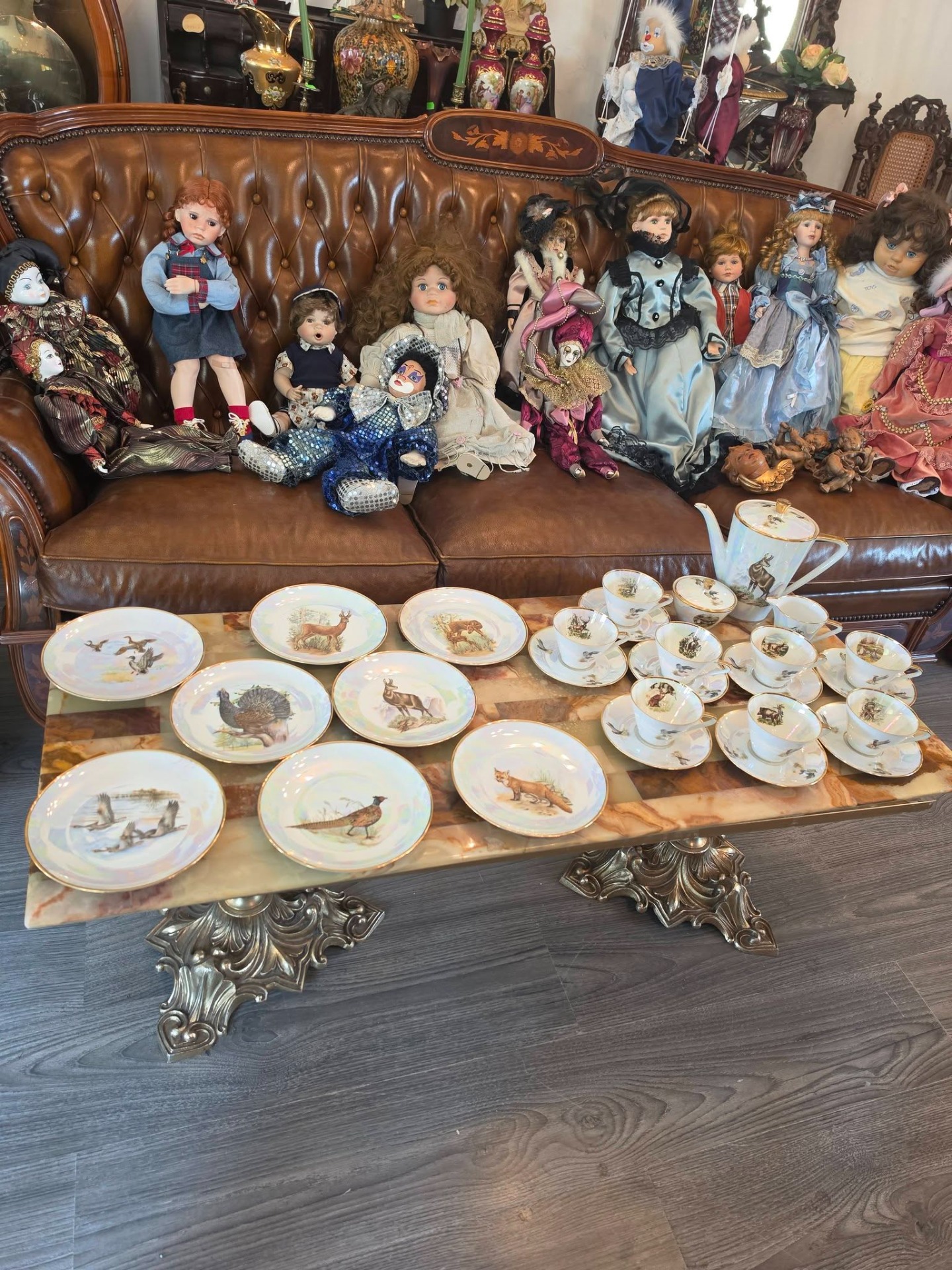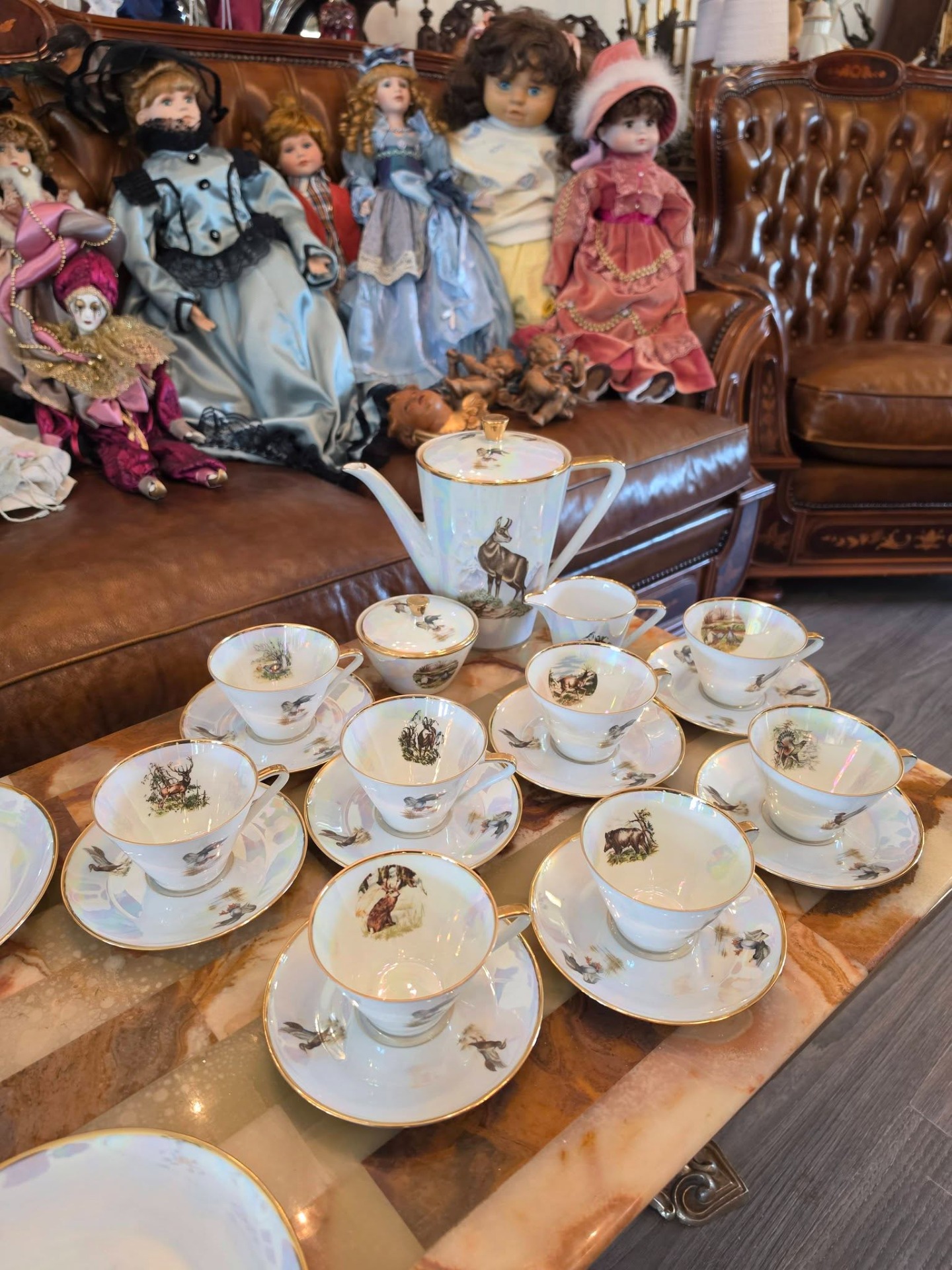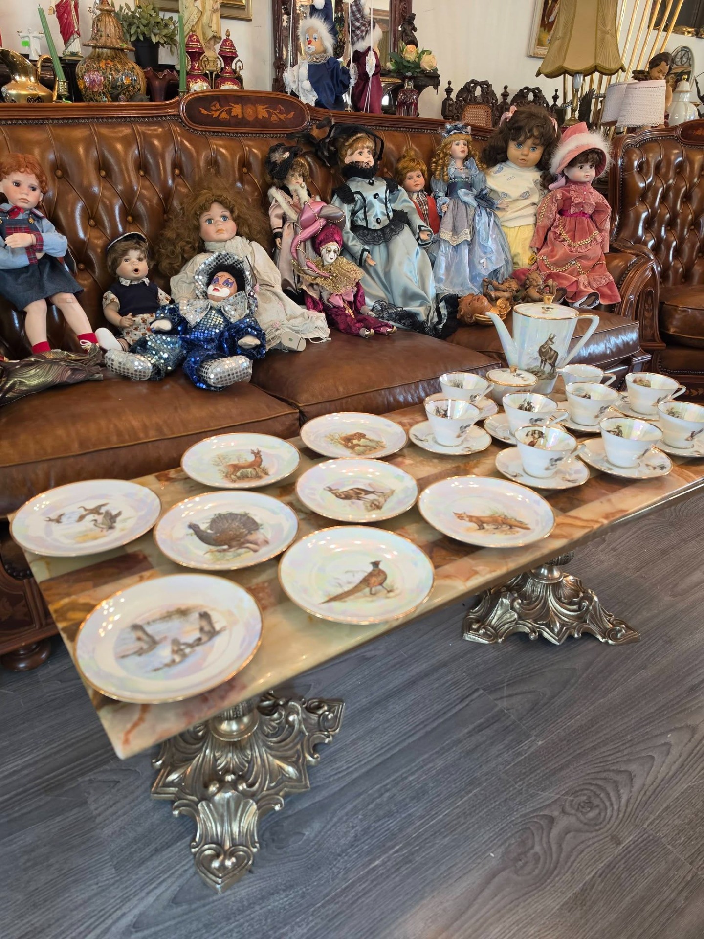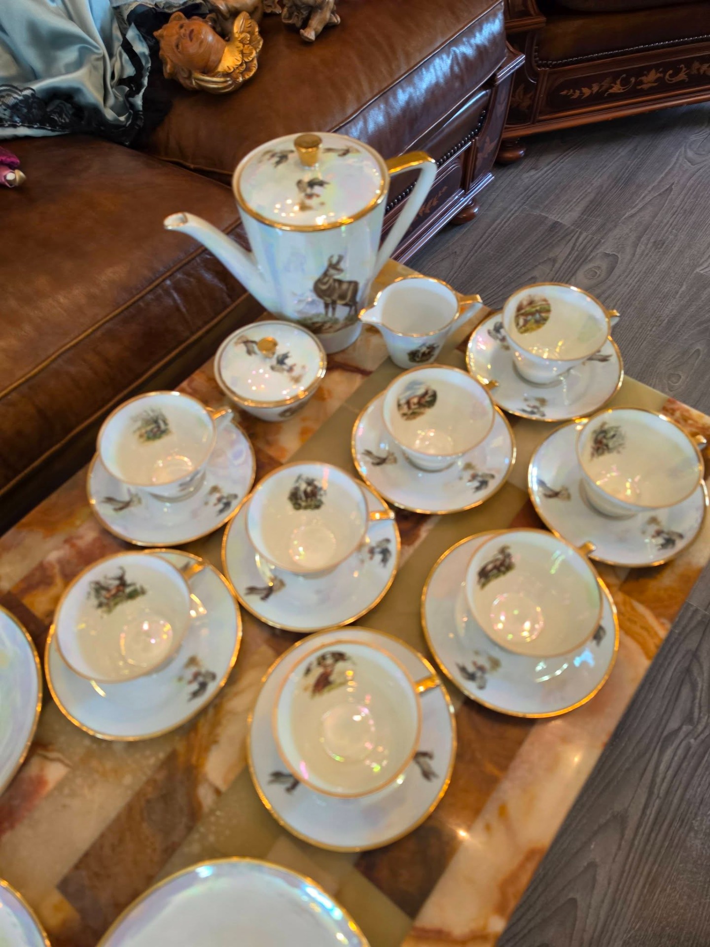 Set elegant din porțelan fin, marcat Royal Bavaria (Germania), cu decor deosebit reprezentând animale sălbatice (căprioare, fazani, rațe, vulpe etc.). Ideal pentru colecționari sau pentru decor vintage deosebit.