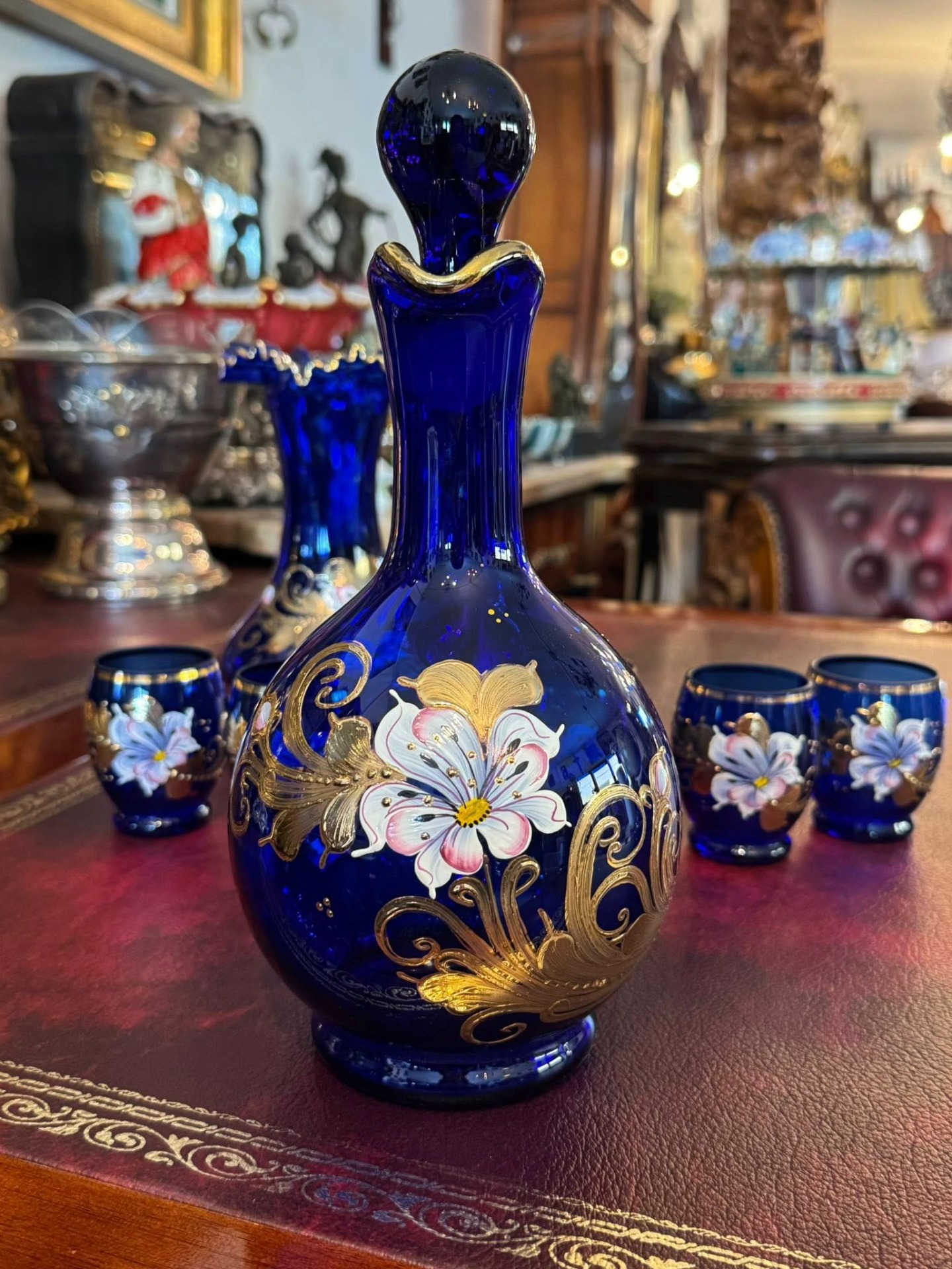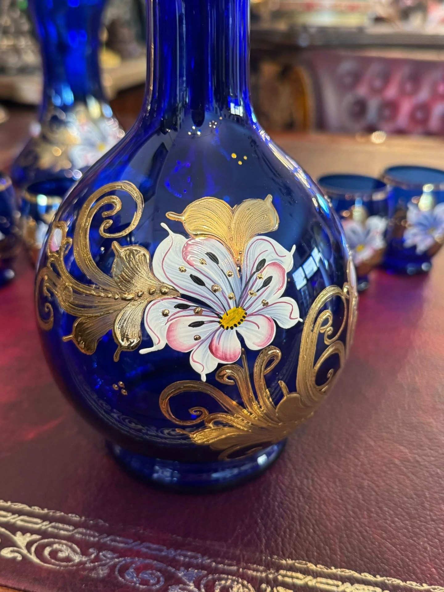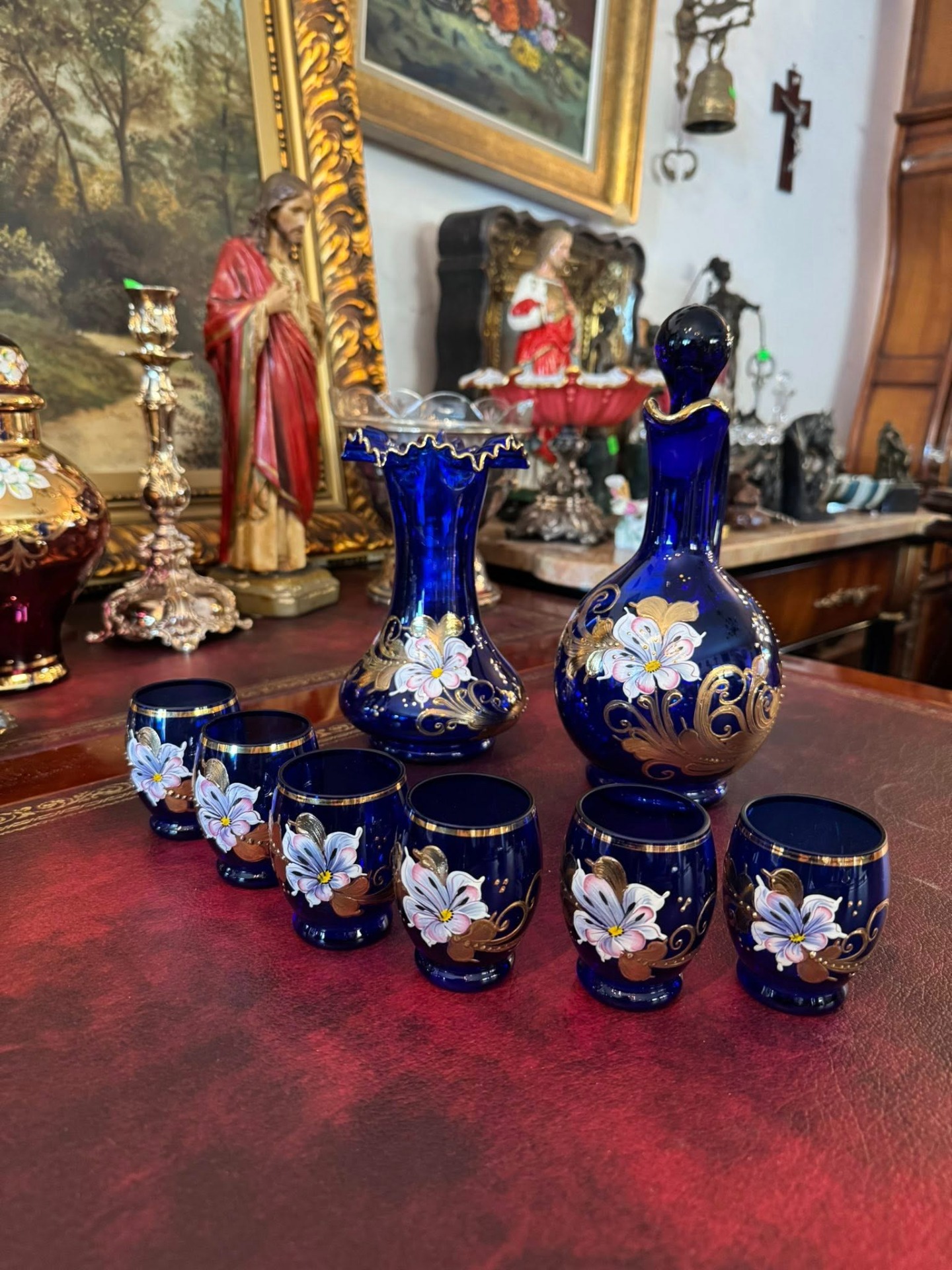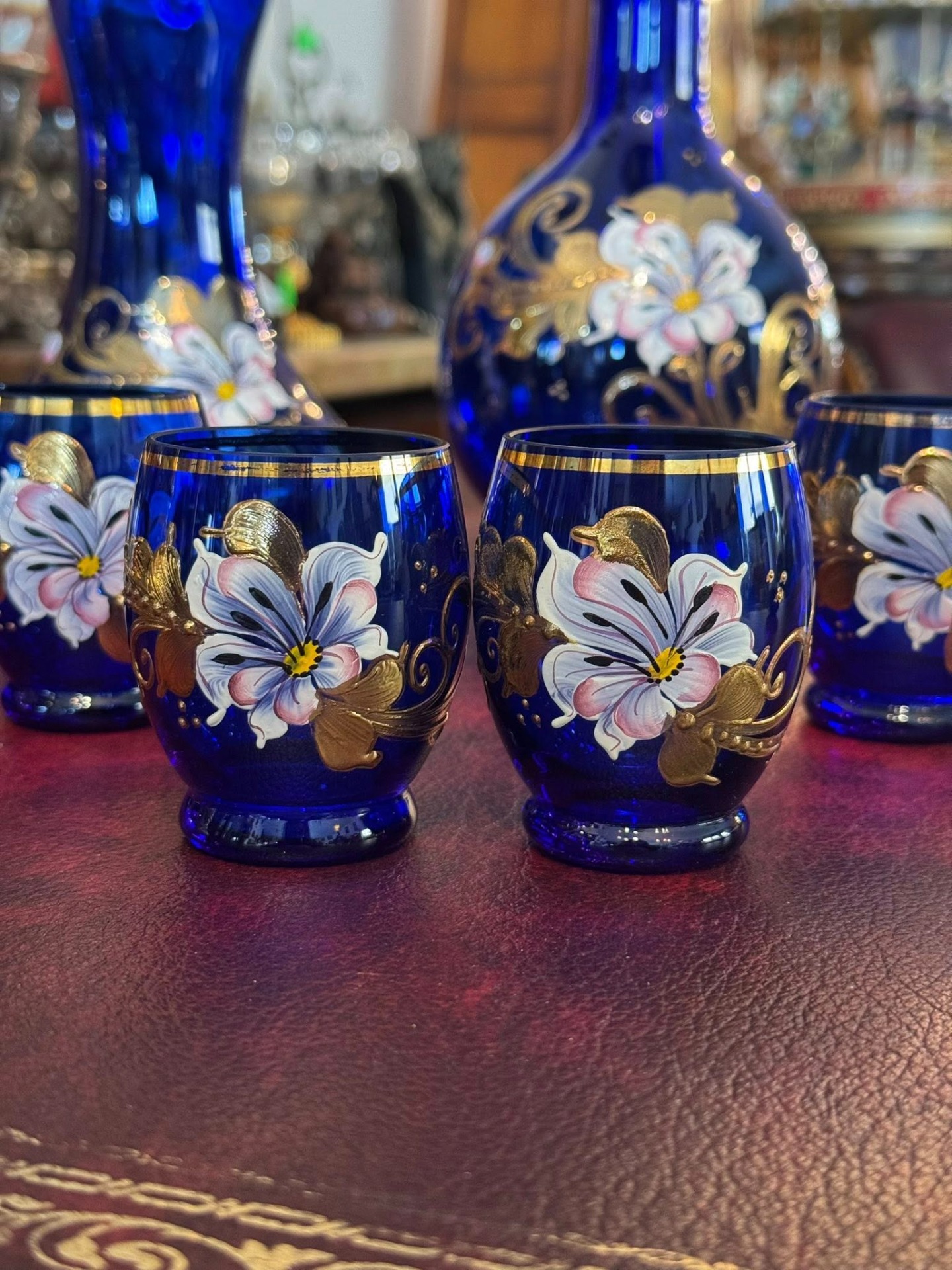 Set superb de cristal de Boemia, pictat în relief (High Enamel). -cca 1960