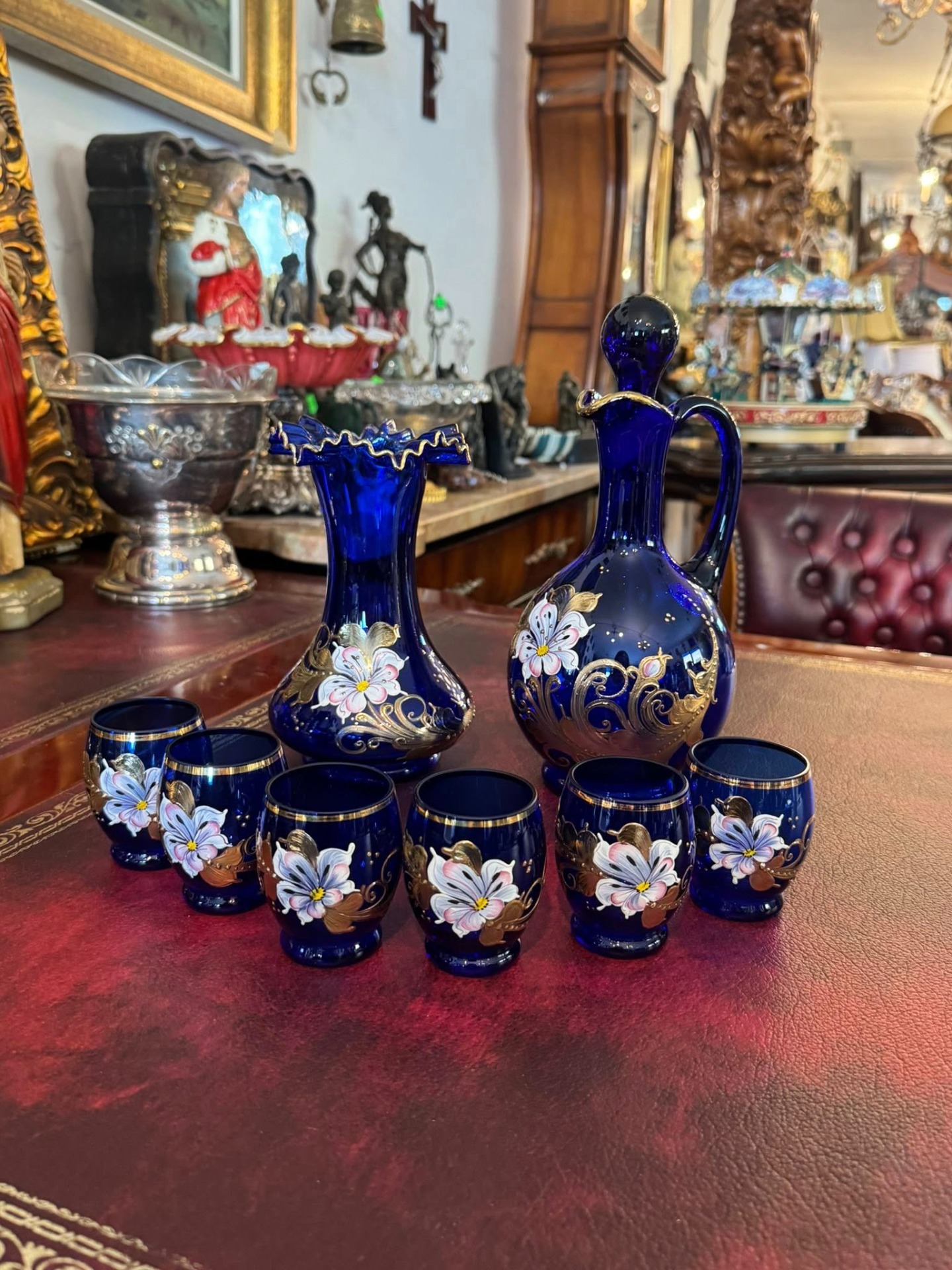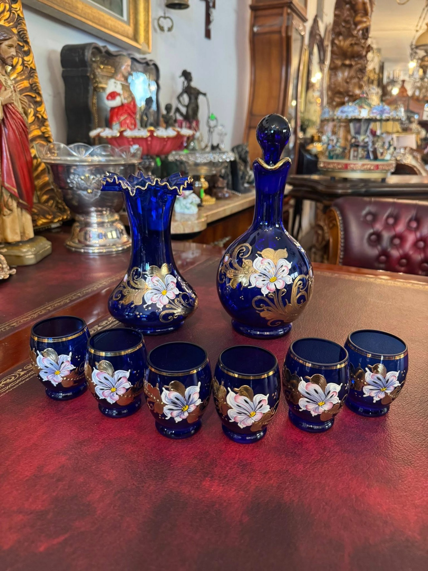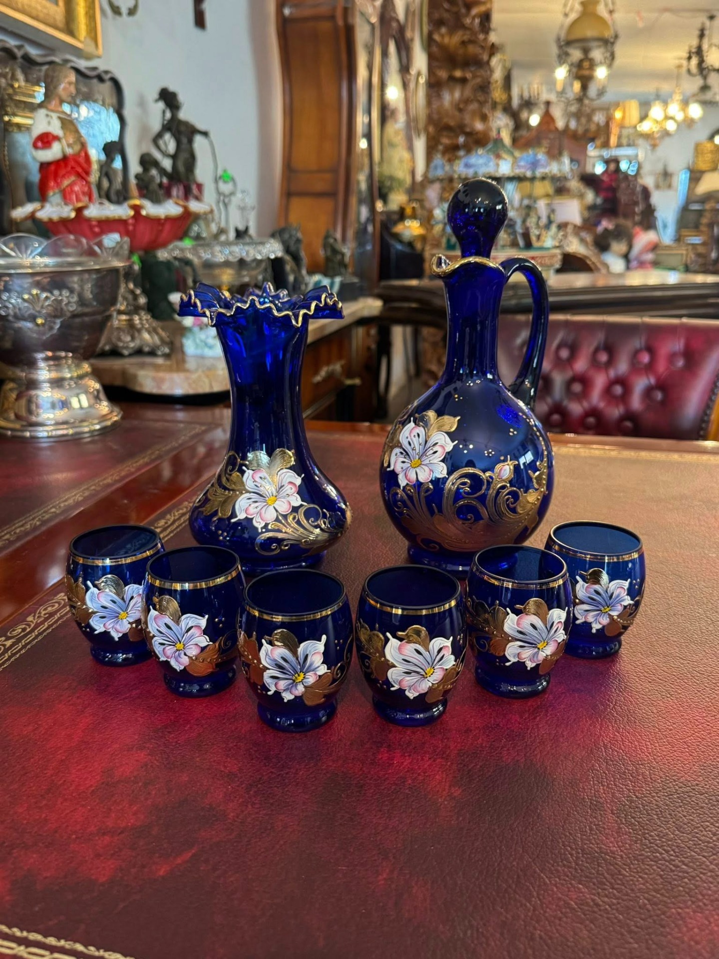 Set superb de cristal de Boemia, pictat în relief (High Enamel). -cca 1960
