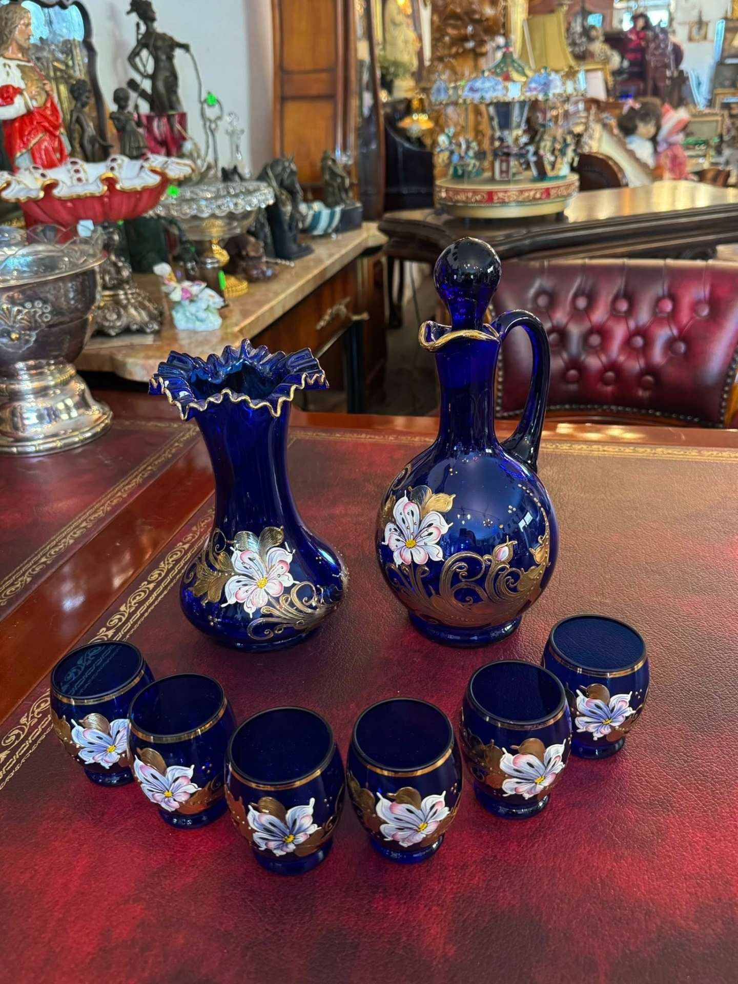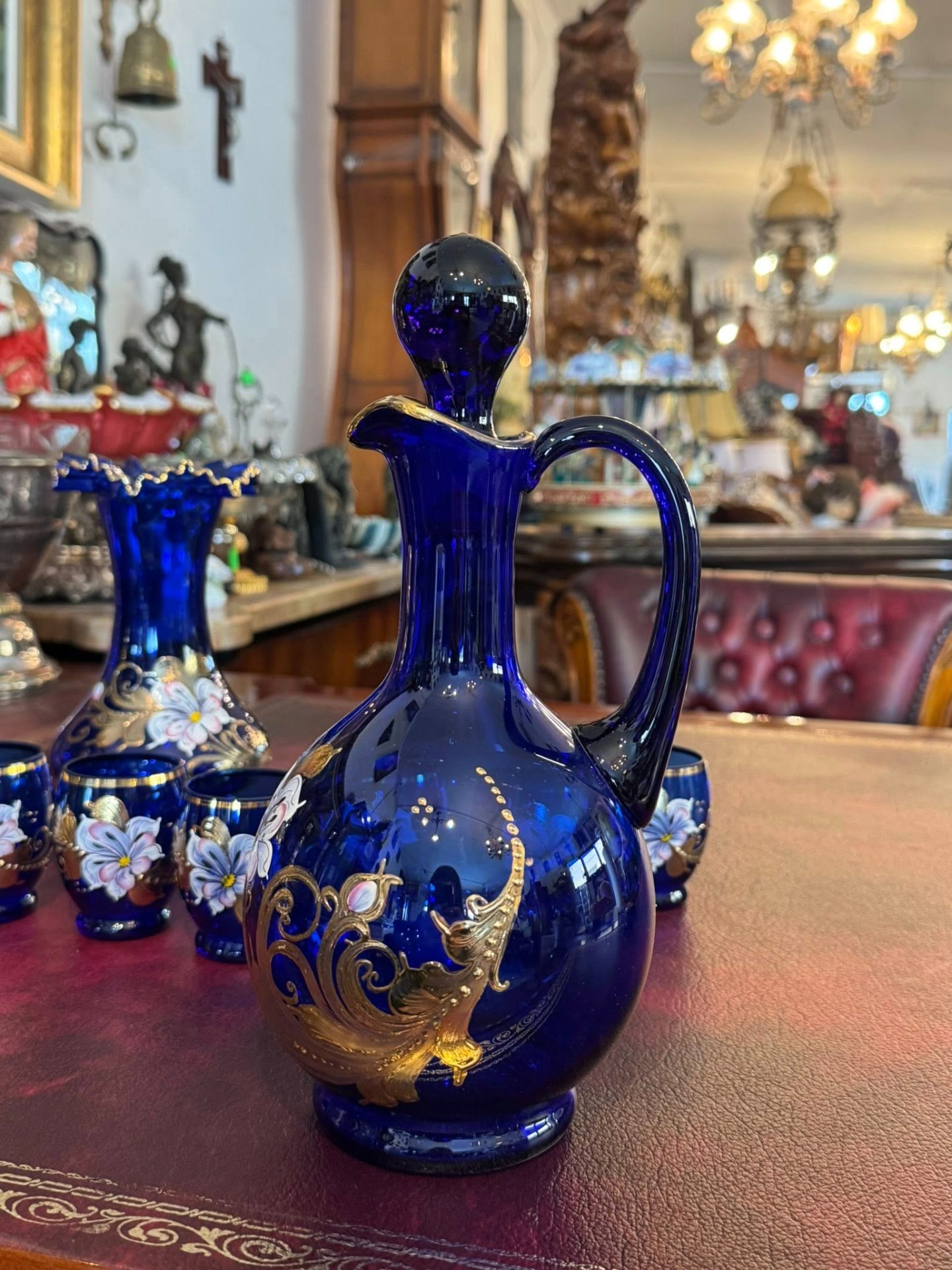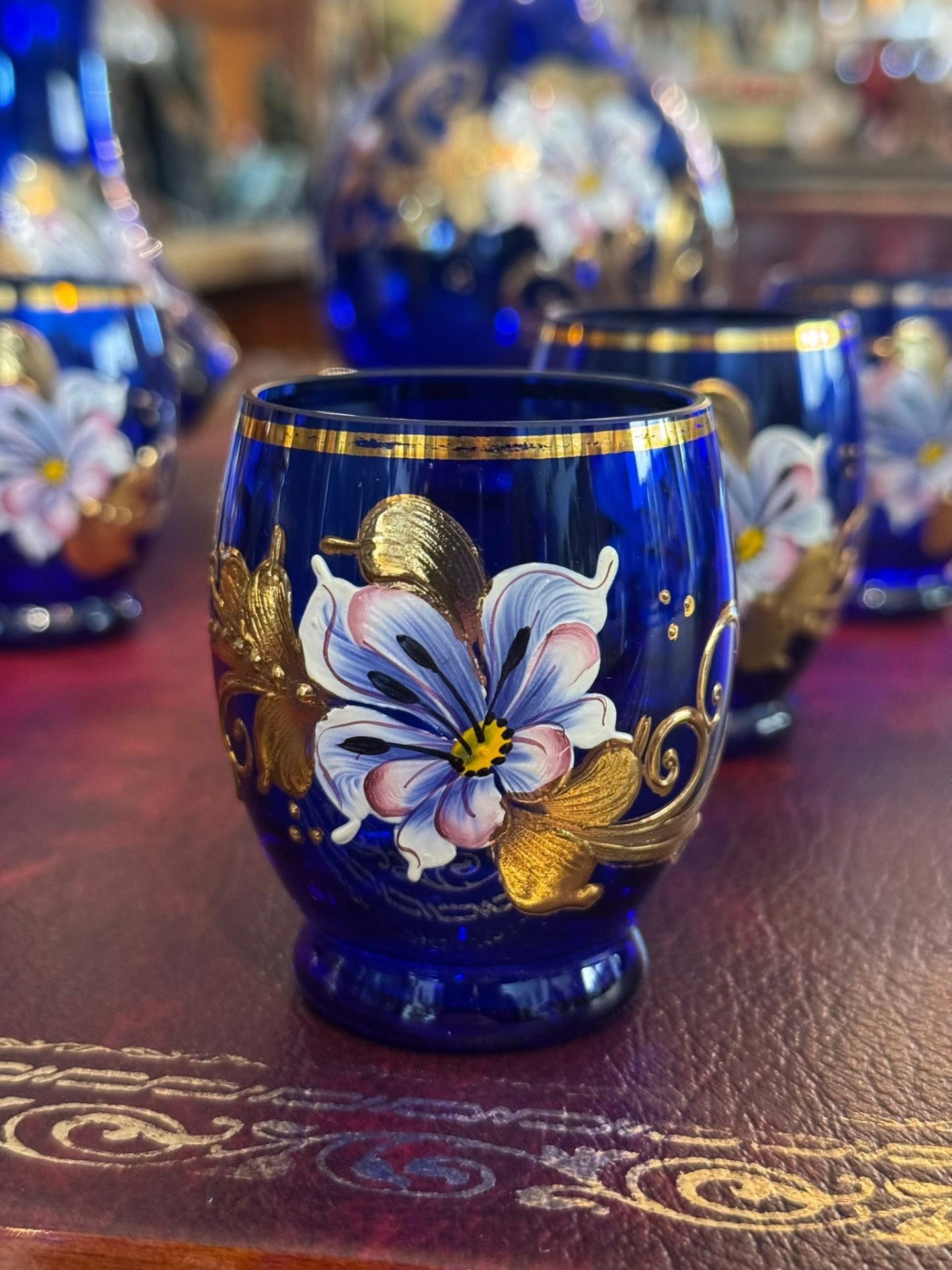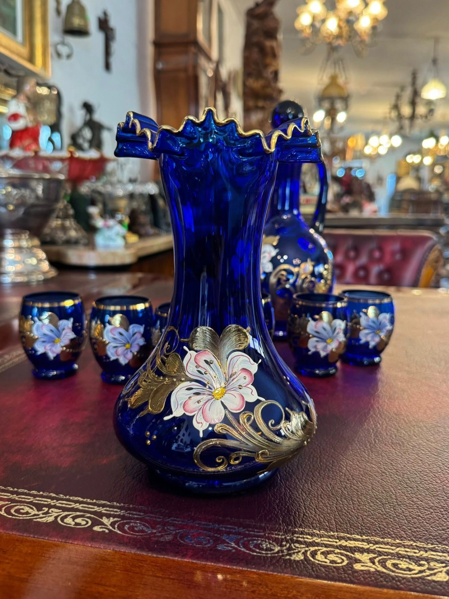 Set superb de cristal de Boemia, pictat în relief (High Enamel). -cca 1960