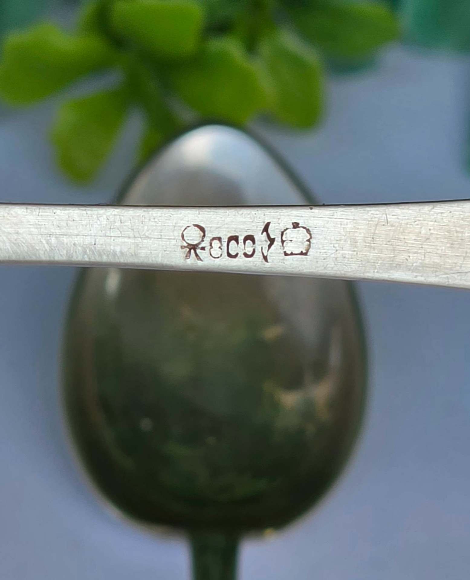 Prezintă marcaje de argint 800, marcaje germane de garanție (coroana cu semilună) și marcaj de meșter.