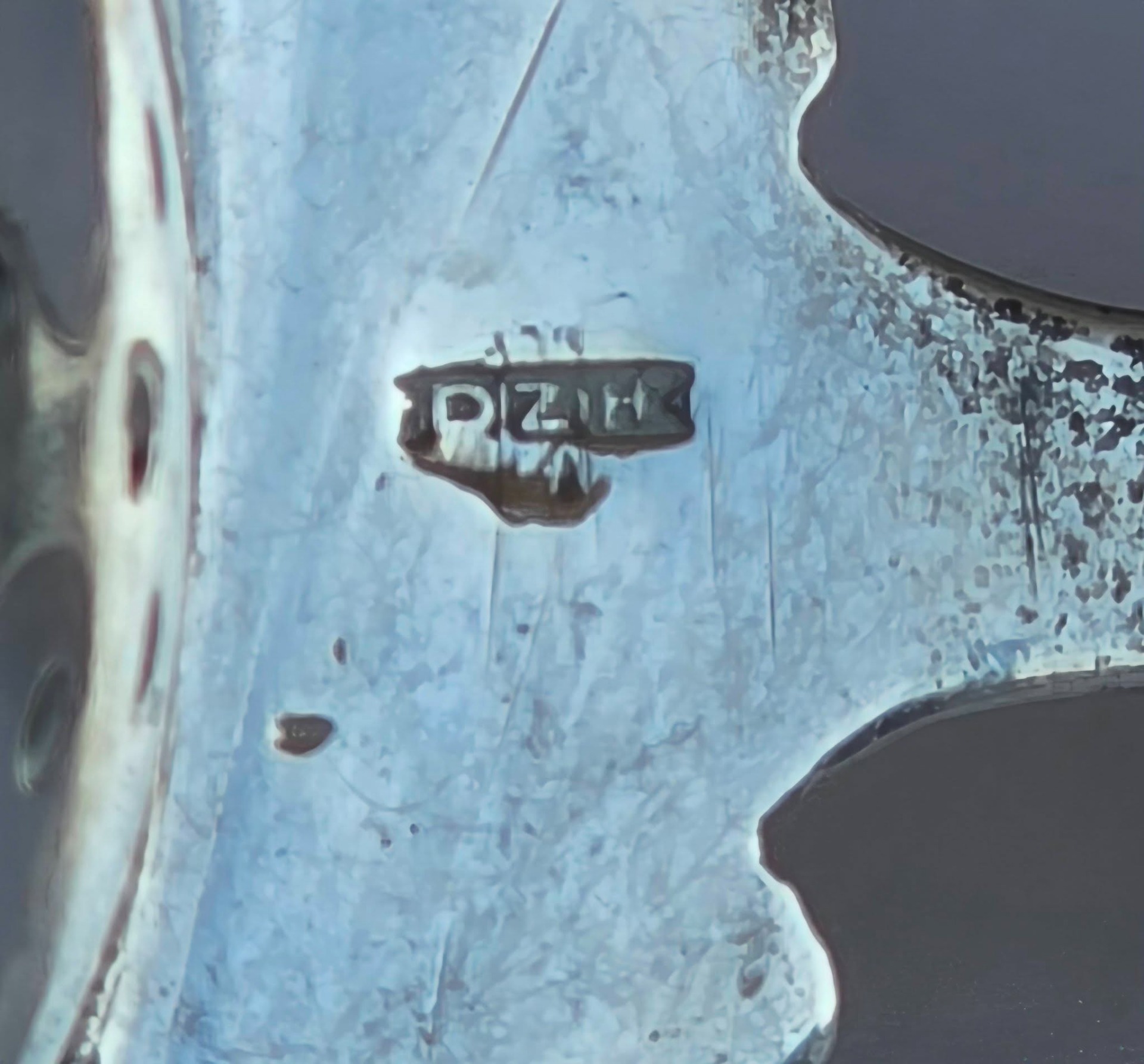 Prezintă marcajul „sabia” specific argintului olandez de puritate 833 și marcaj de meșter.