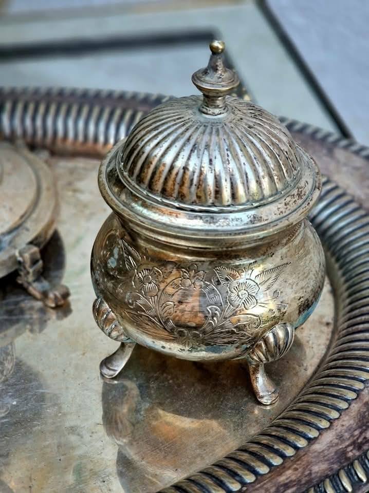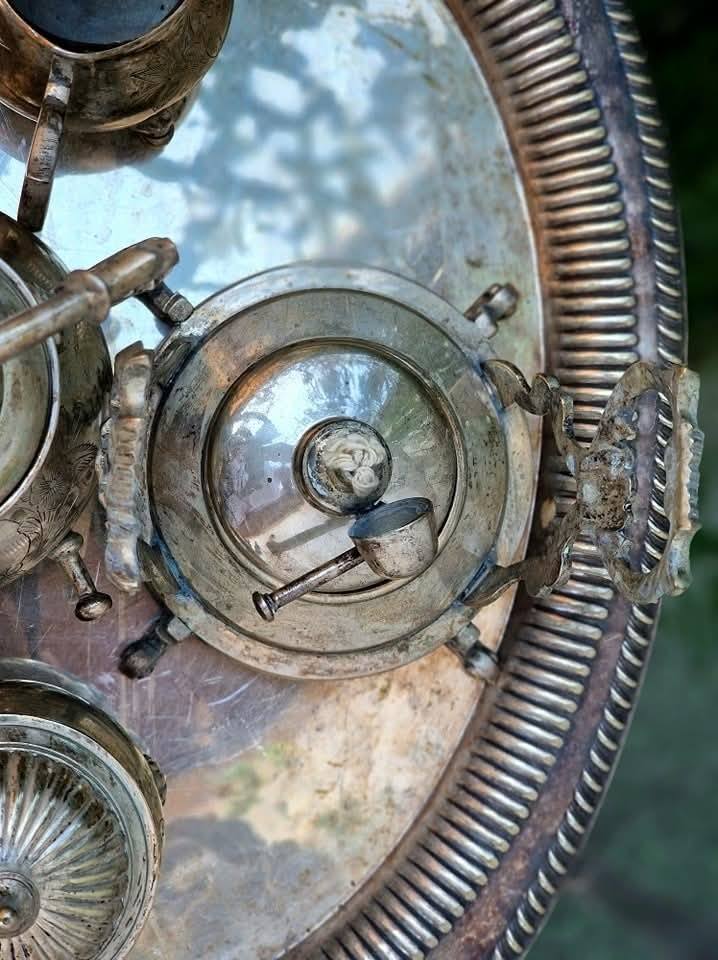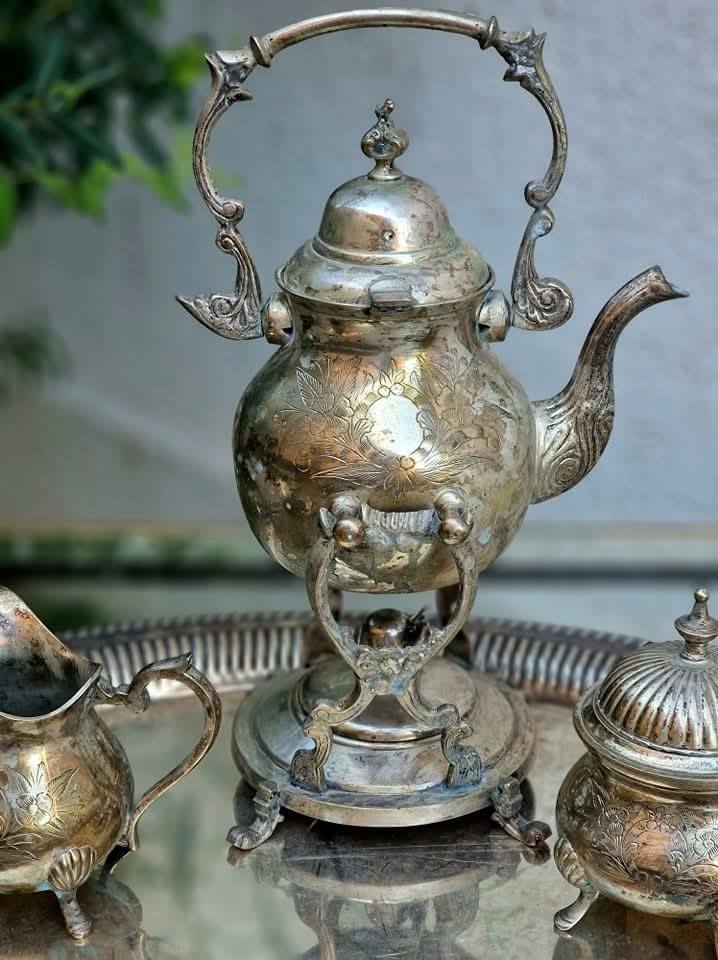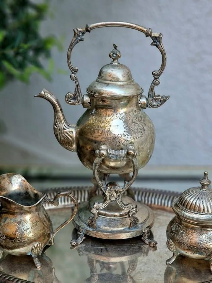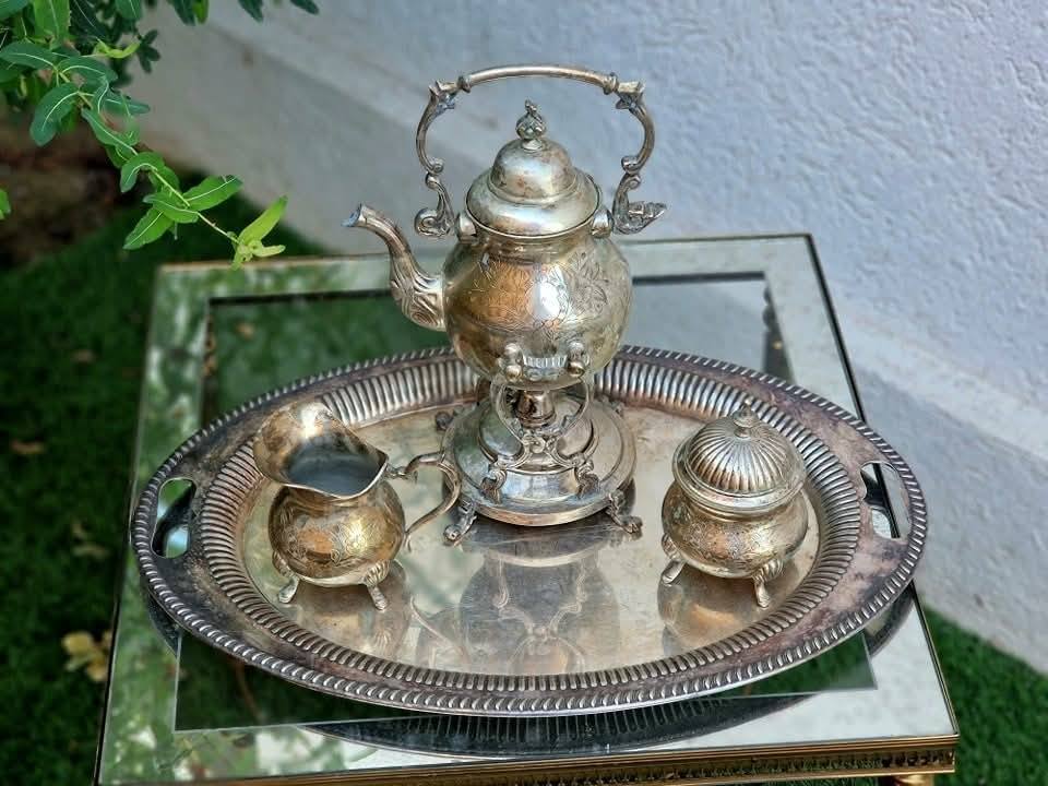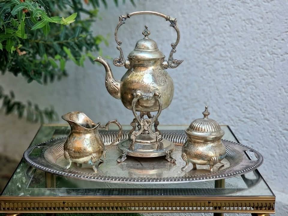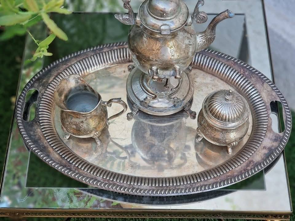 Set vechi din metal argintat,pentru servit ceai sau cafea.