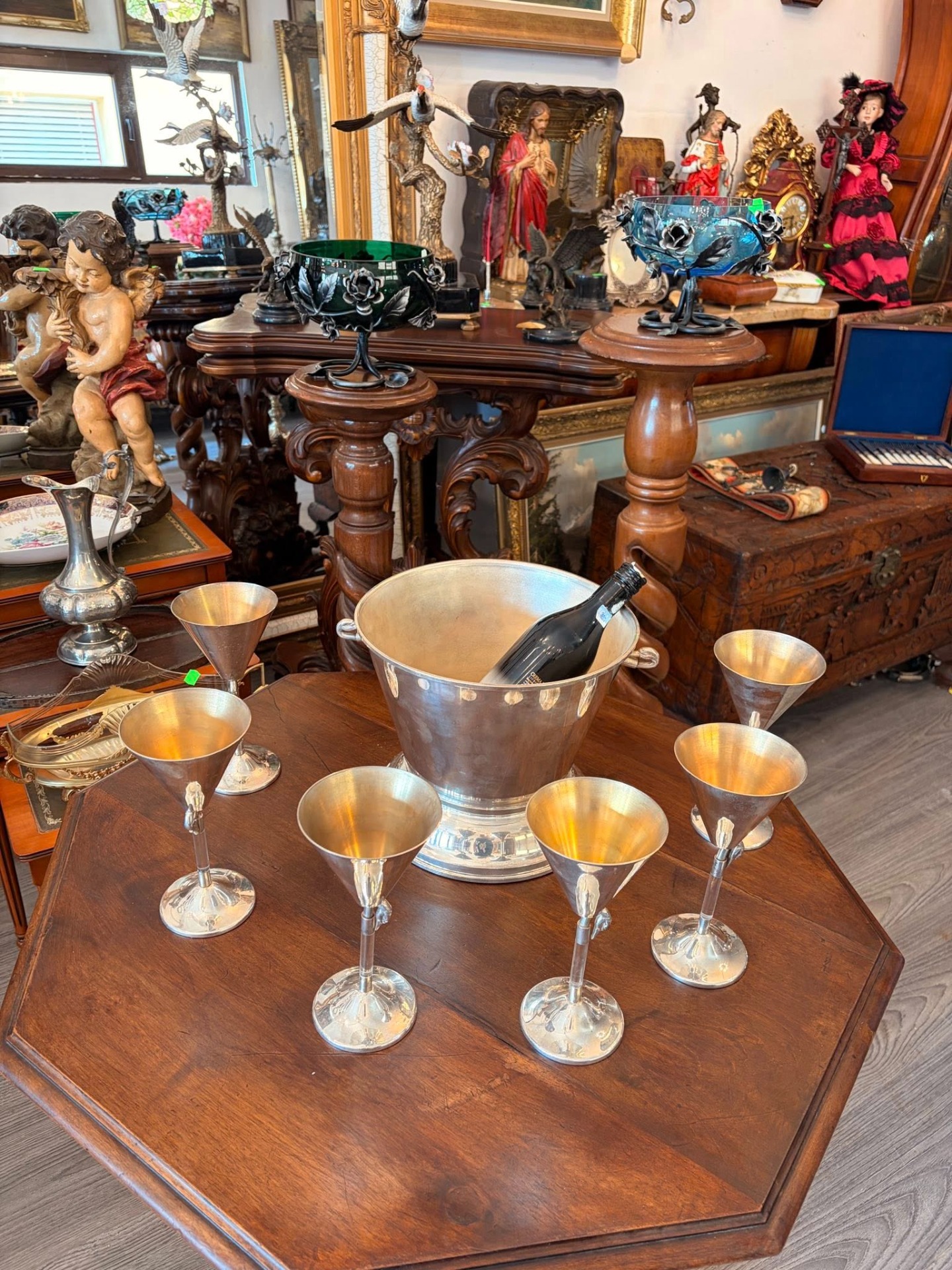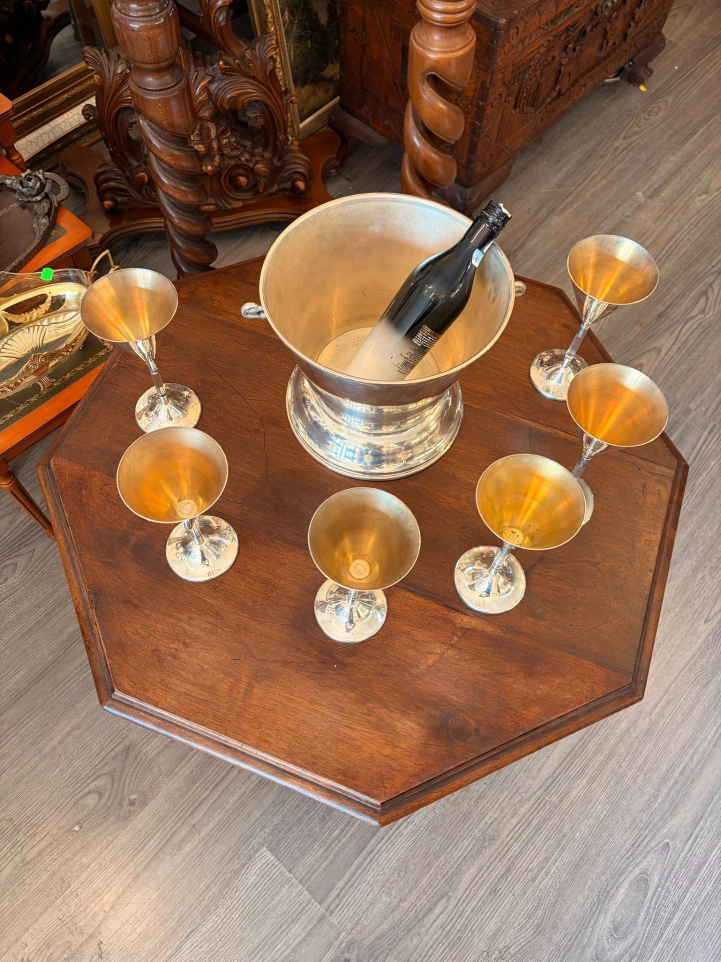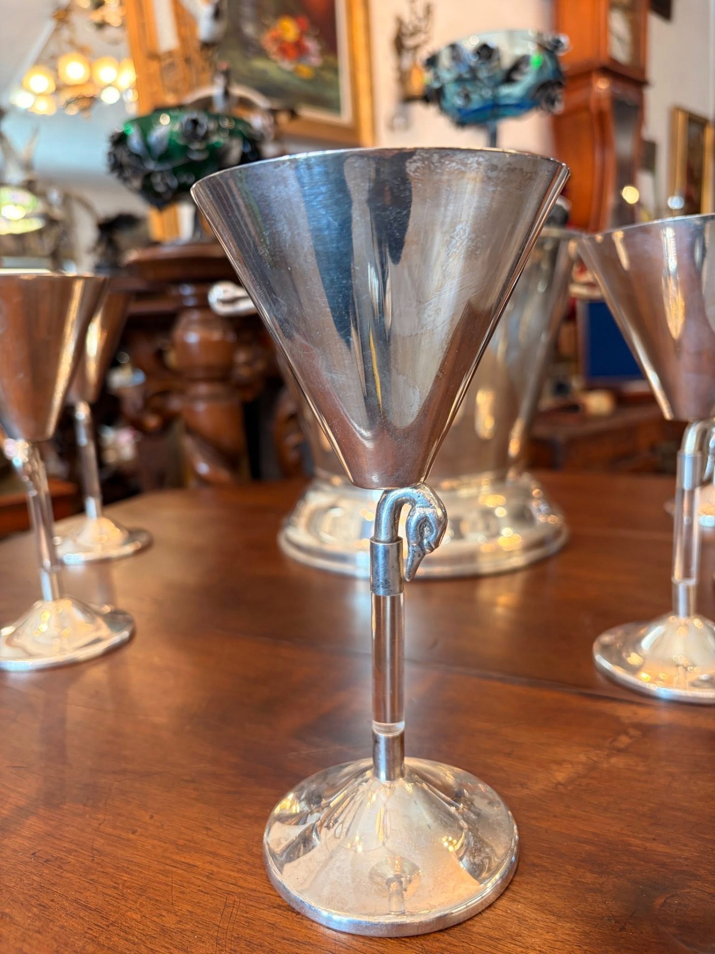 Set vintage pahare cocktail + frapieră – MAREMMANI, Italia – silver plated