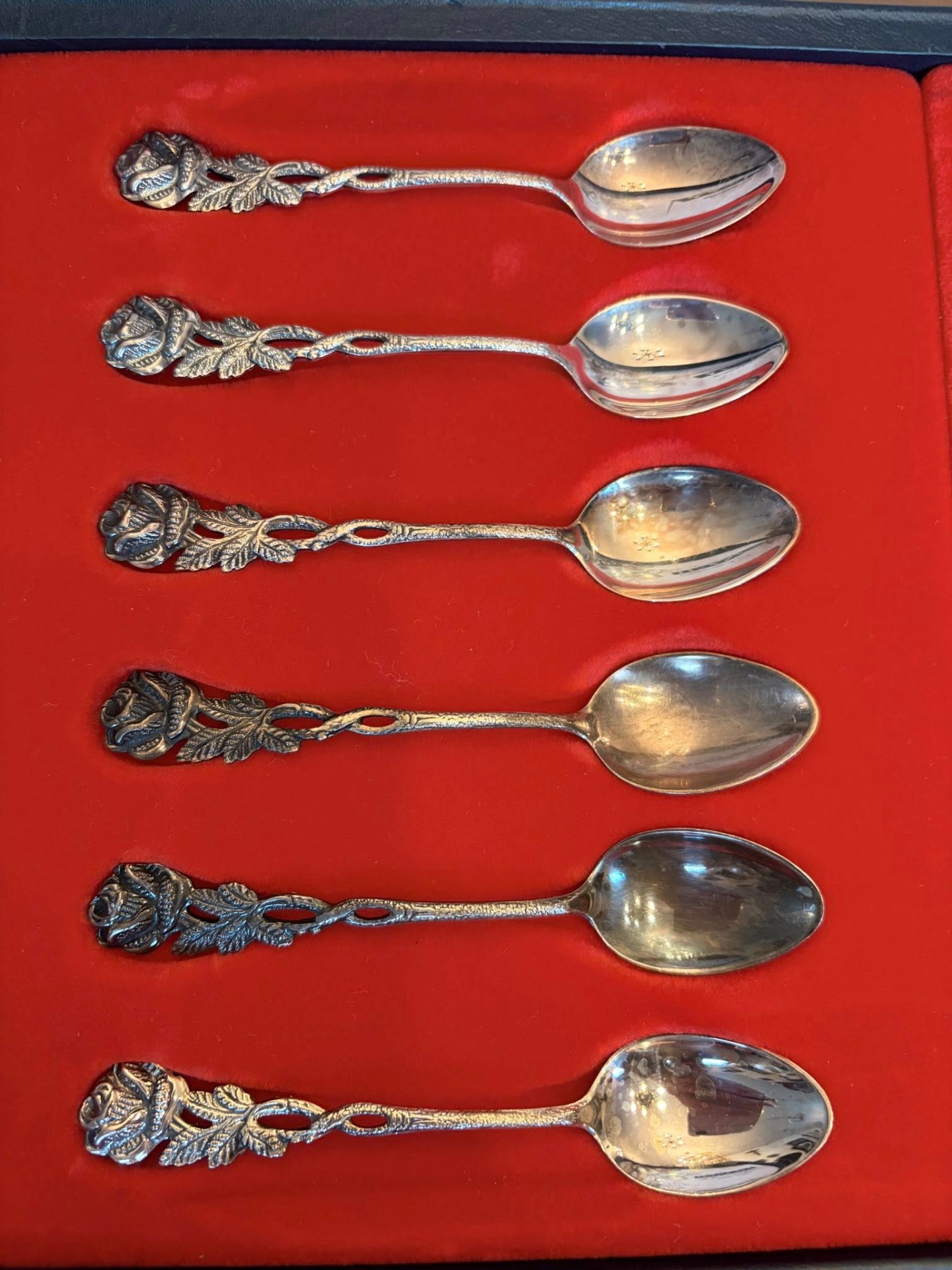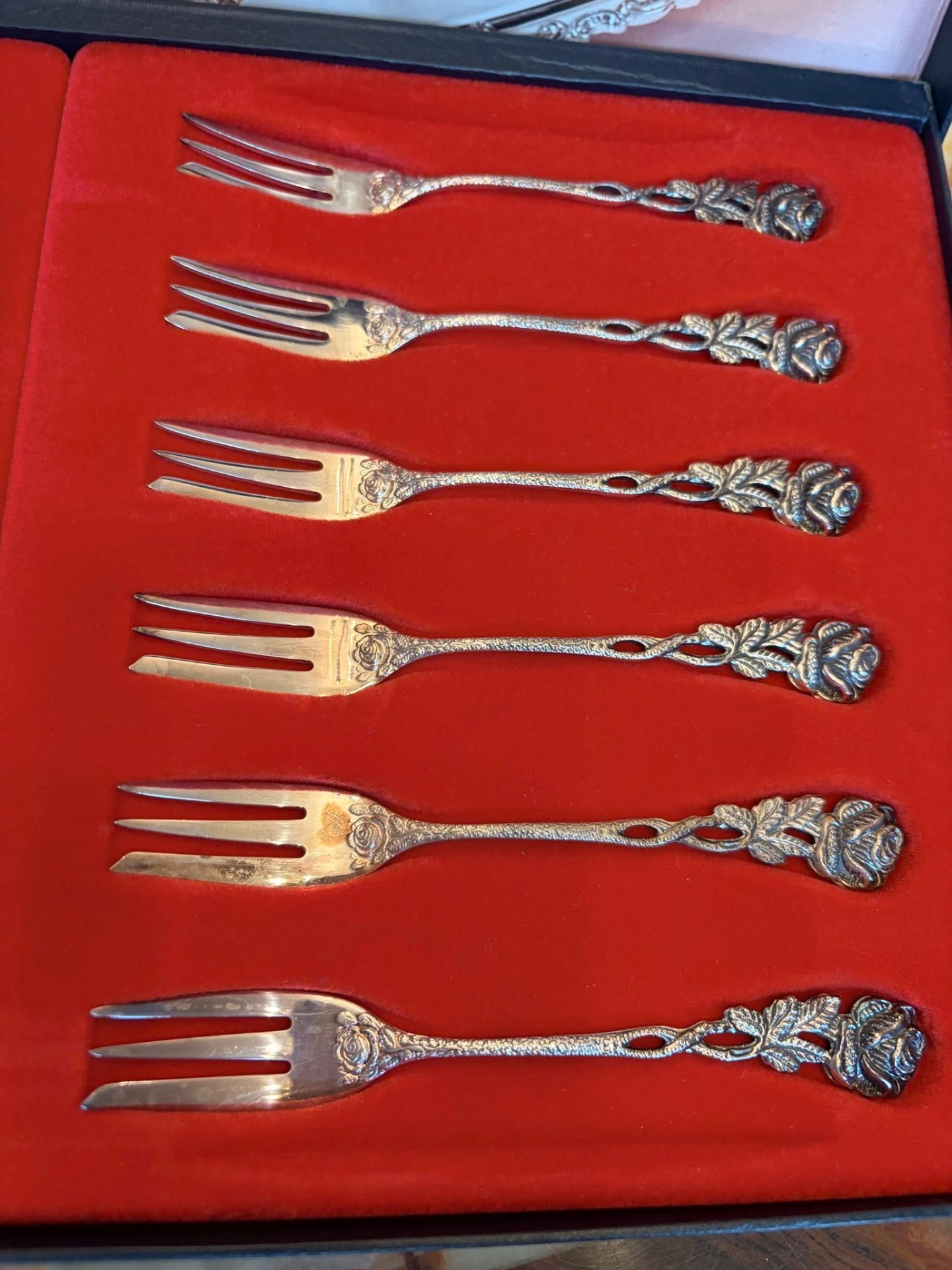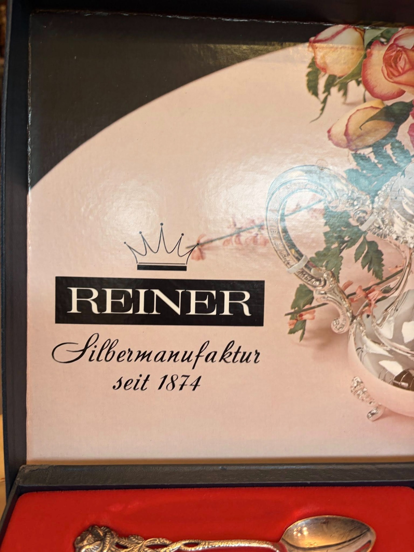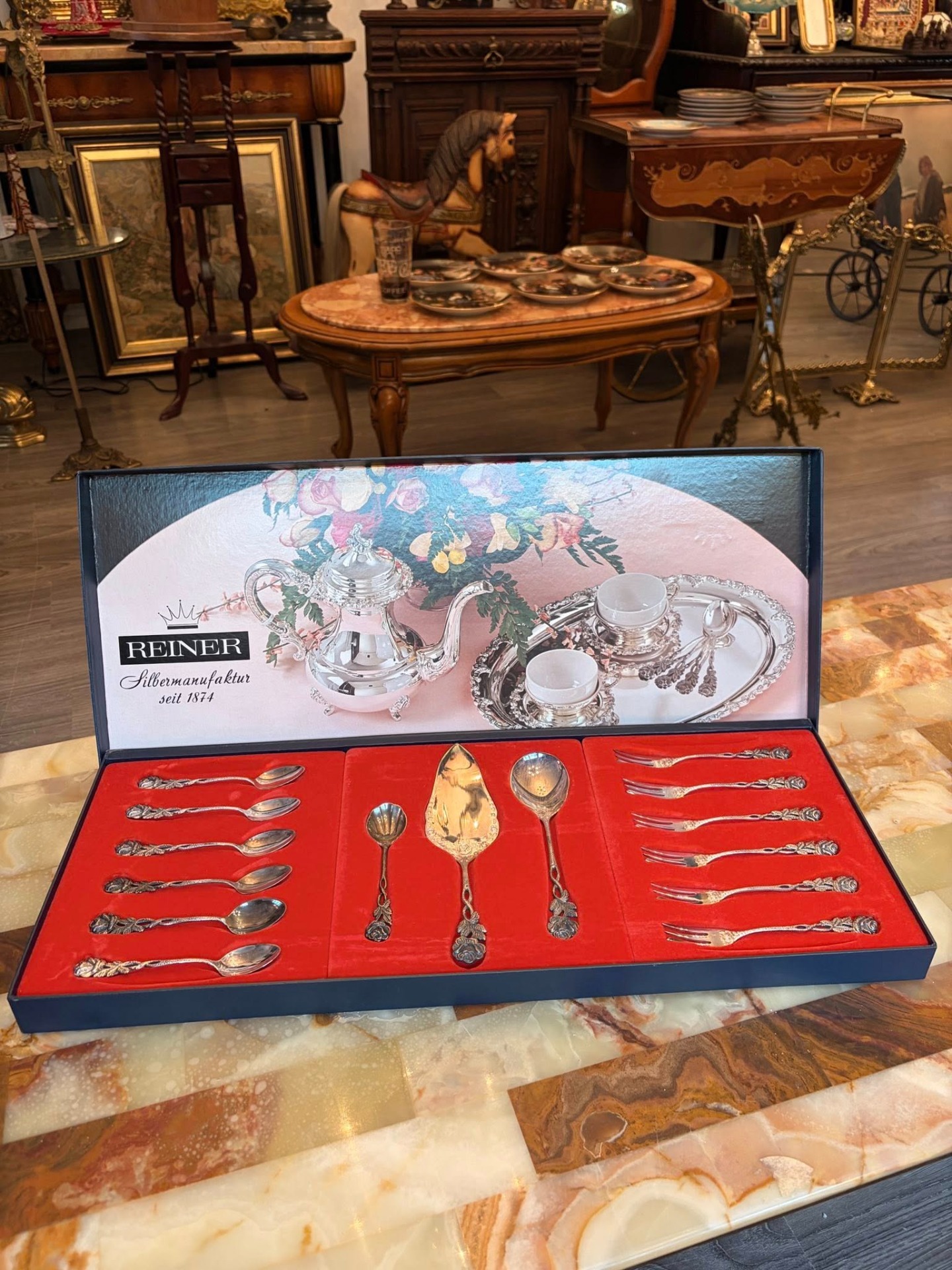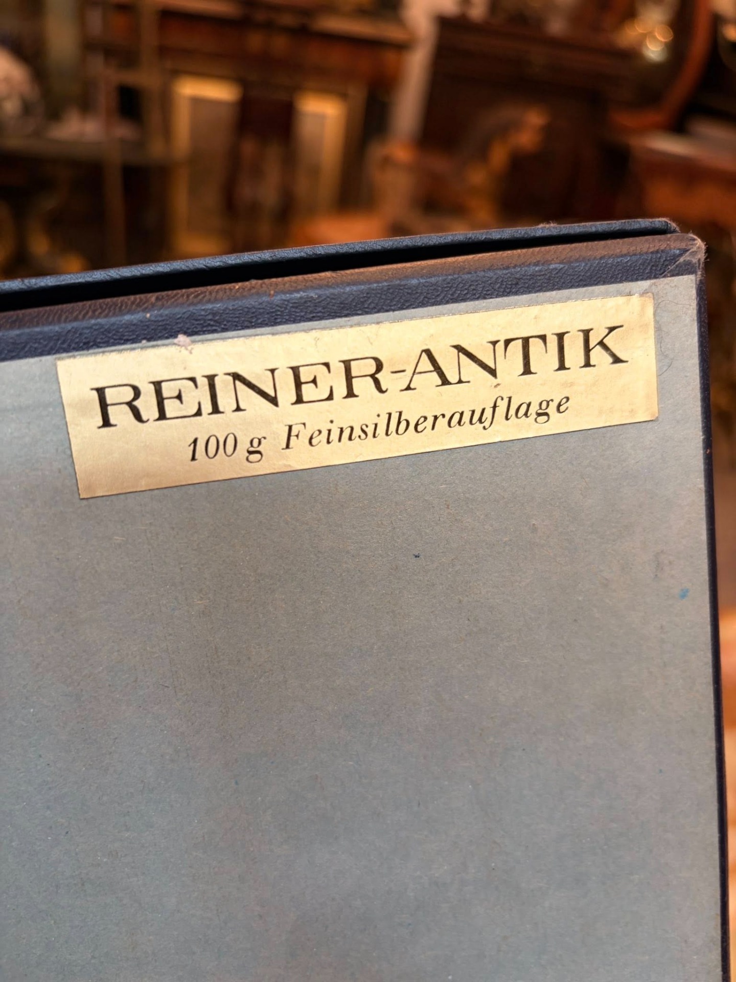 Set vintage REINER – Silbermanufaktur seit 1874 – Tacâmuri desert / ceai în cutie originală