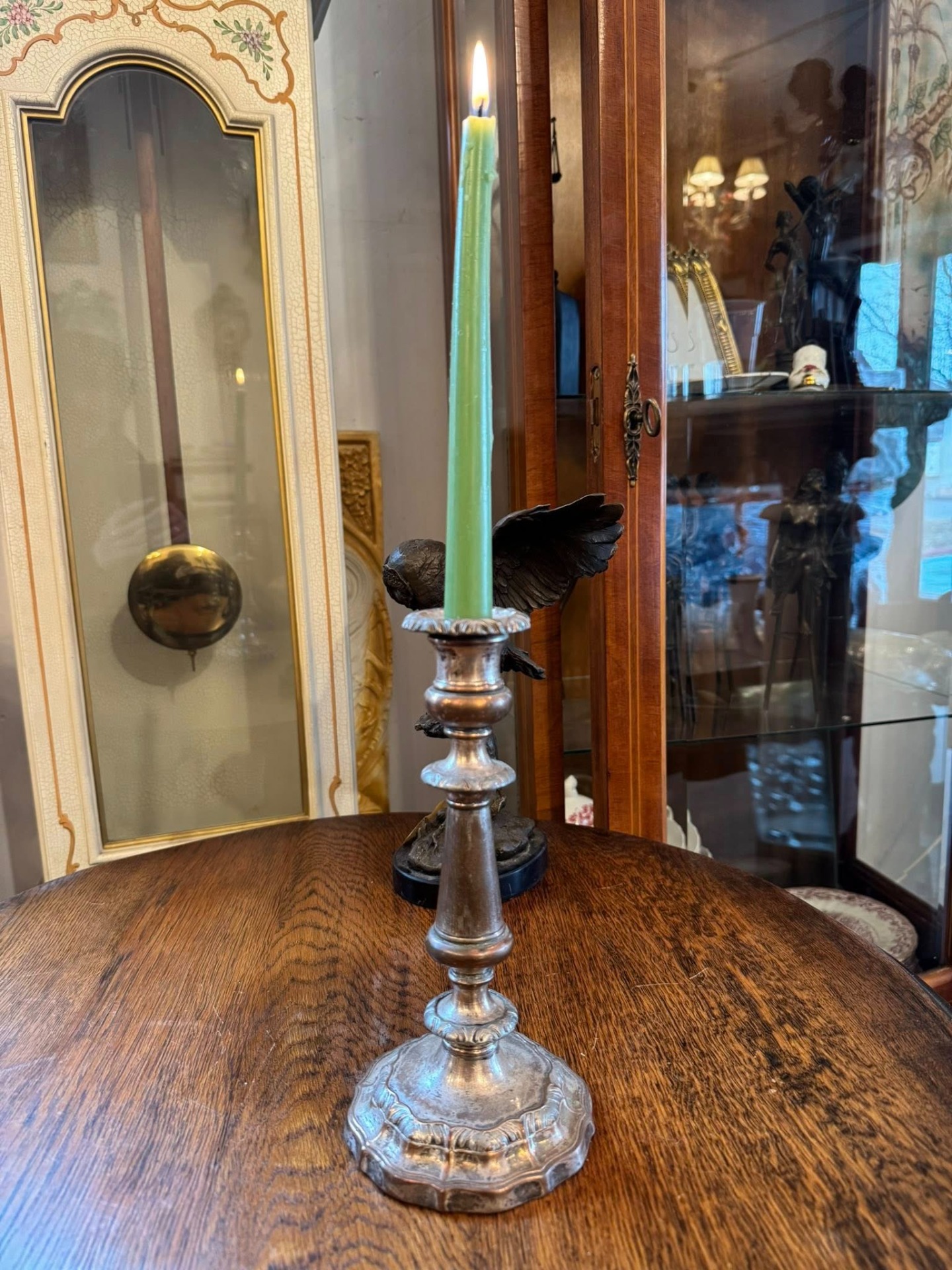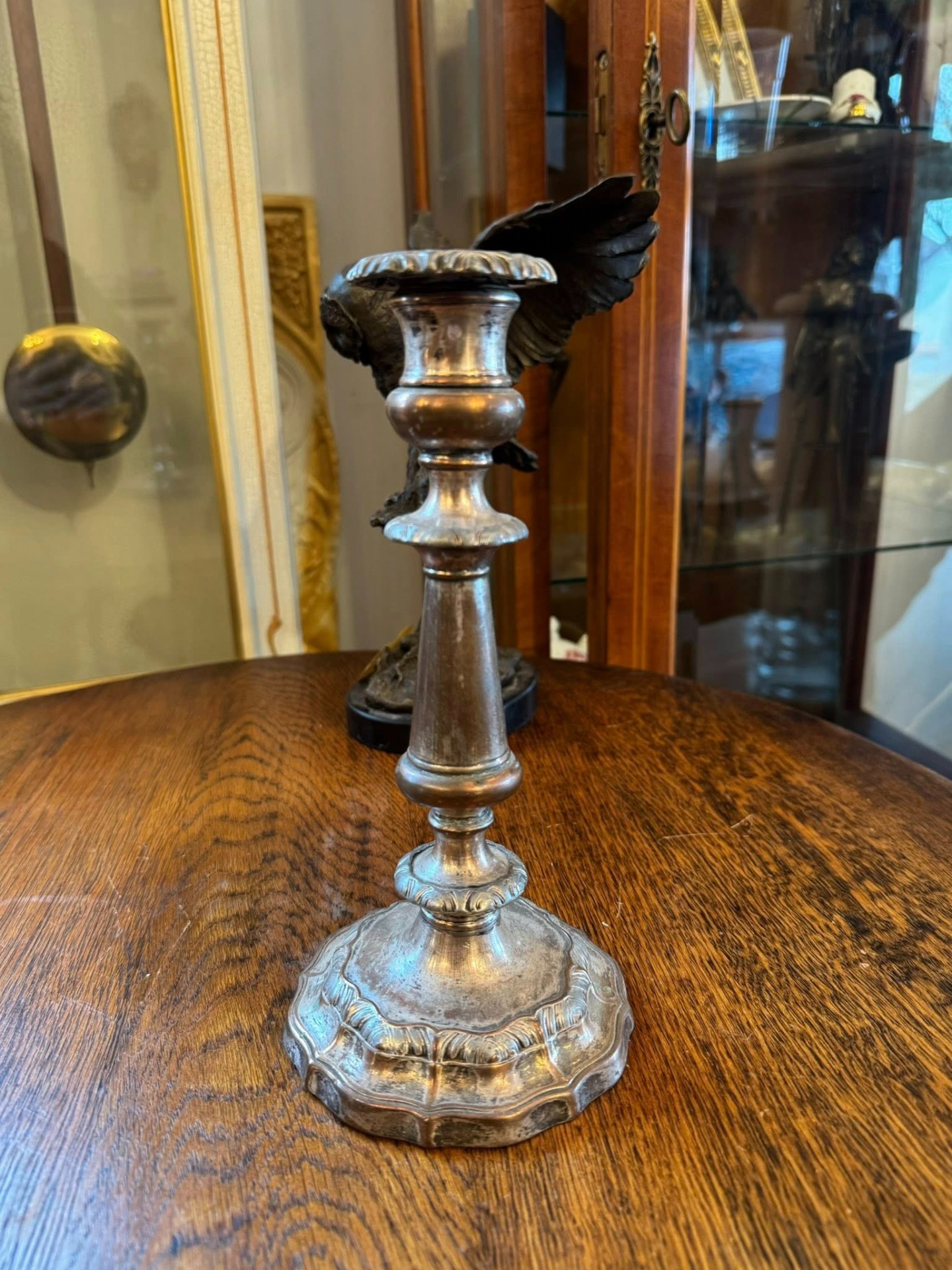 Sfeșnic din alamă argintată în stil Baroc (Germania, cca 1950)