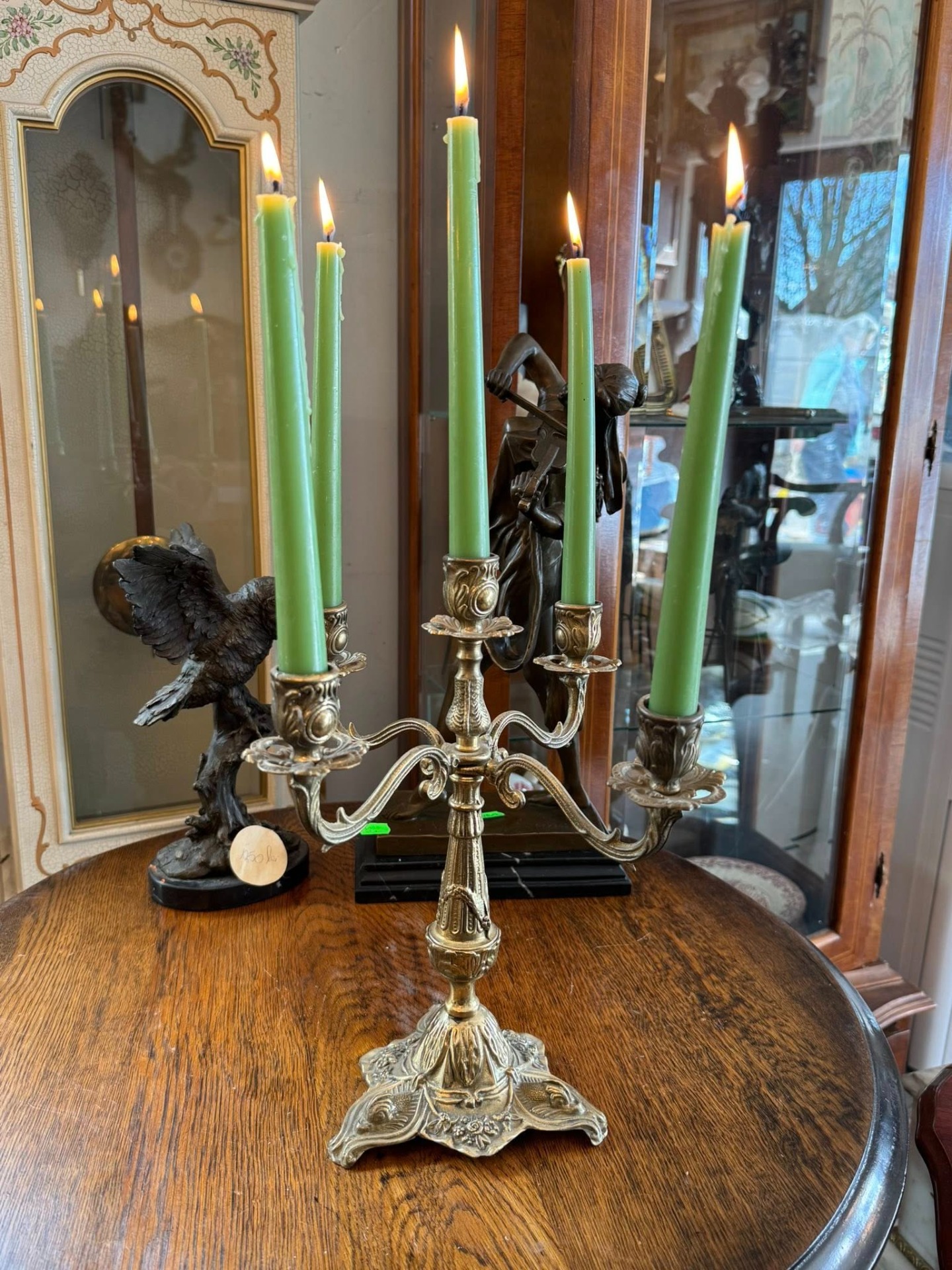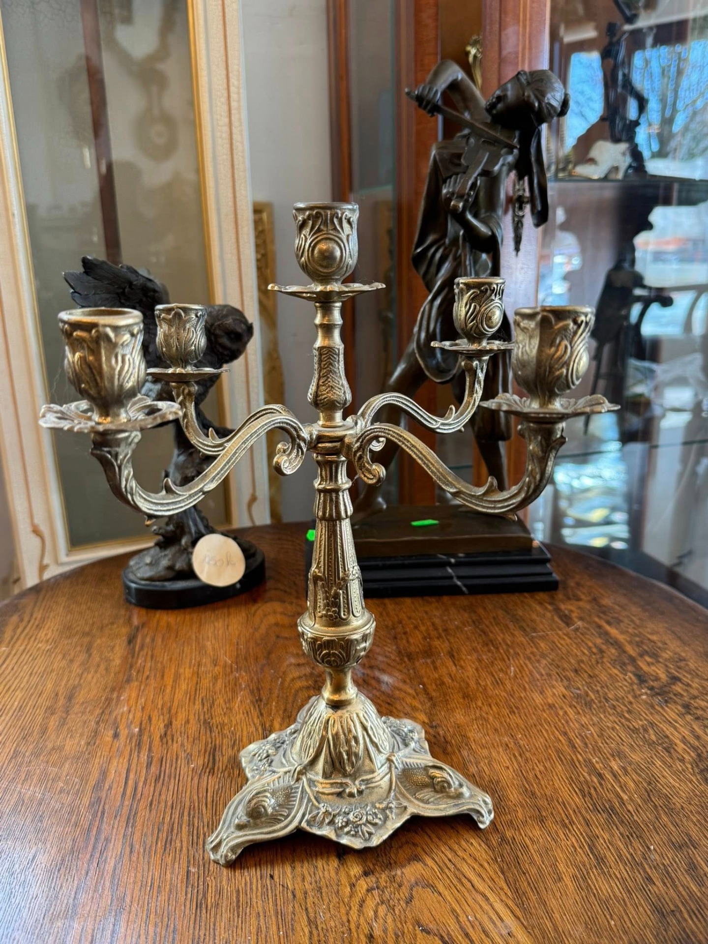 Sfeșnic elegant cu 5 brațe din bronz, cu motiv floral.Stil baroc,secolul XX.